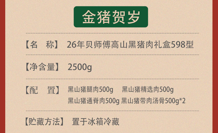 26年贝师傅高山黑猪肉礼盒598型-金猪贺岁(注:冷链生鲜类商品不退,质量问题只换)