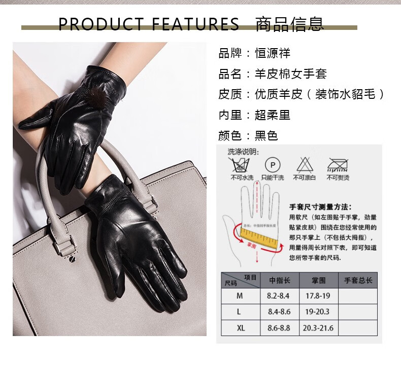 恒源祥 HYX1408 手套(羊皮女)均码 单位:付