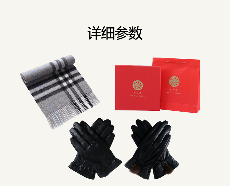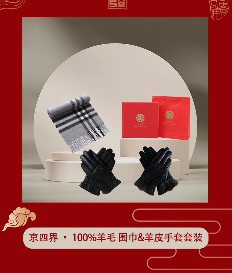 京四界·100%羊毛围巾&羊皮手套 套装JSJA10-003