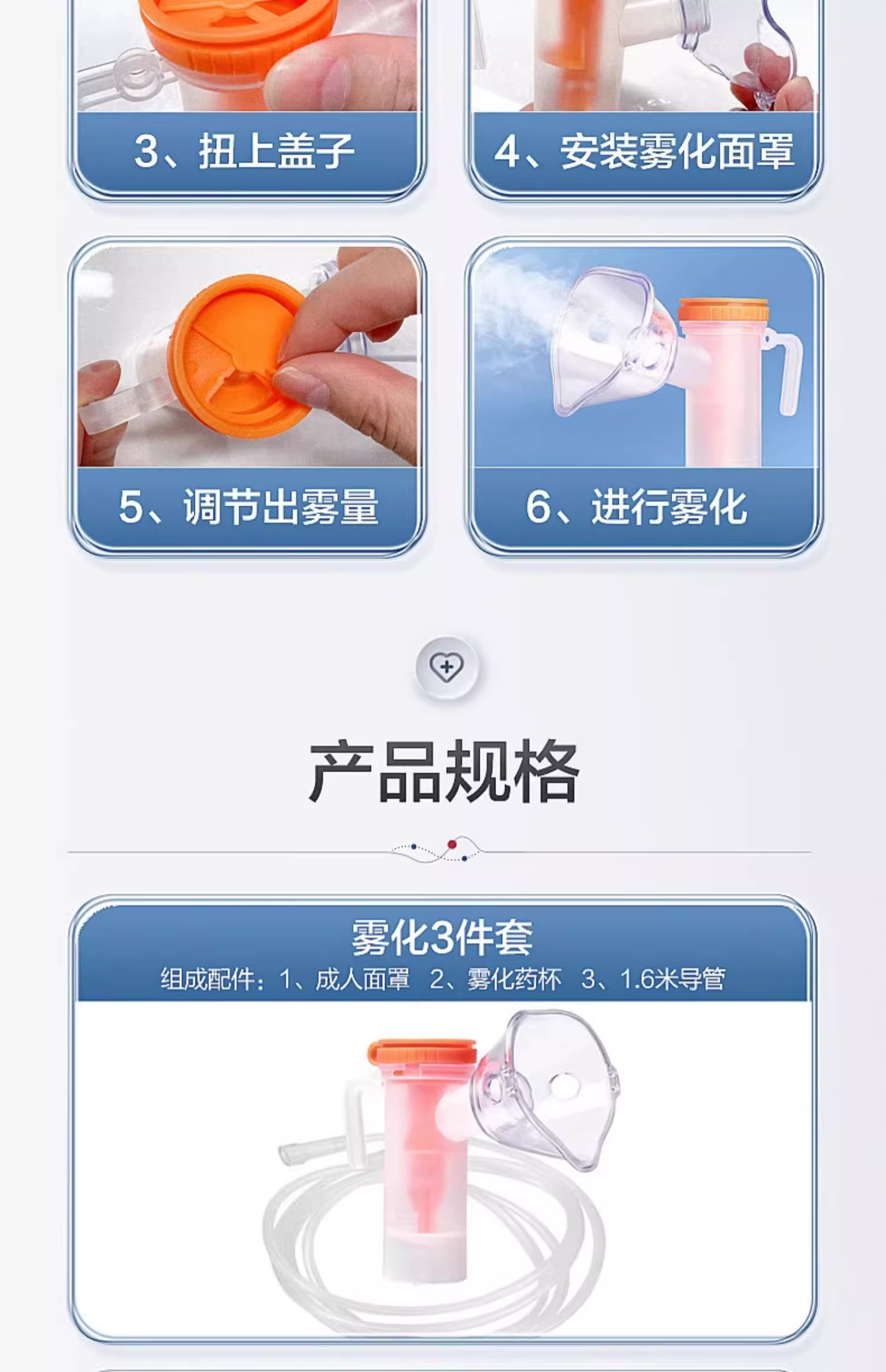 可孚雾化面罩儿童医用无菌吸入机雾化器管成人通用一次性使用配件