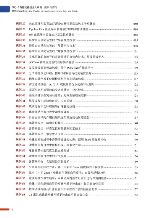 过去的三十年,中国的发展可谓沧海桑田,我们的医疗,特别是神经介入领域,虽然发展历史很短,但却弥足珍贵,目前规模也越来越大,这与我们民族的发展、对脑血管健康认识的发展、技术理念及材料的发展息息相关。 神经介入作为神经科学一个新兴而重要的组成部分,其发展伊始就如同一条涓涓细流,凭借其操作时间短、手术创伤小、术后恢复快等优势,逐渐成为脑血管疾病治疗的重要手段之一,现如今已迅猛发展为一条波澜壮阔的江河。 对于从事神经介入的临床工作者来说,通过手中的导丝和导管,治疗复杂而危险的脑血管疾病,颇有四两拨千斤的意味。想要成为一名优秀的神经介入医生,不仅要有斗榫合缝的技艺,还要有洞幽烛微的精神。特别是在遇到一些特别难以诊治的病例时,具体的操作技巧往往来自于不断地探索,以及与同道专家的紧密合作。 郭庚、吕明、马宁三位教授领衔翻译的《100个有趣的神经介入病例:提示与技巧》是一部不可多得的神经介入工具书。该书作者从具体病例出发,将自己治疗过程中的手术方案、决策思考、交流探讨、替代方案等记录下来并分享给读者,配合珍贵的术中影像,使读者阅读时犹如身临其境,尤其在每个病例的结尾附以“提示与技巧”,更是起到了画龙点睛的作用。因此,本书具有较高的参考价值,值得反复研读。 希望广大神经介入同道可以从本书获益,进而更好地造福患者。