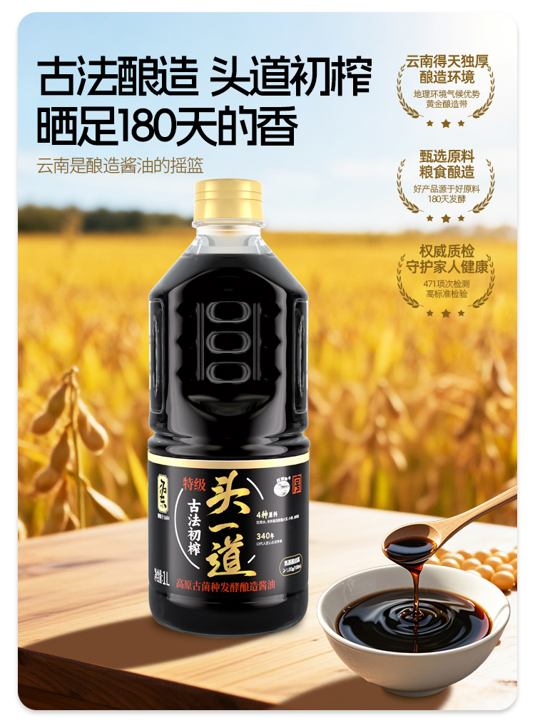 拓东初榨头一道酱油零添加传统酿造生抽纯粮酿造特级酱油调味品