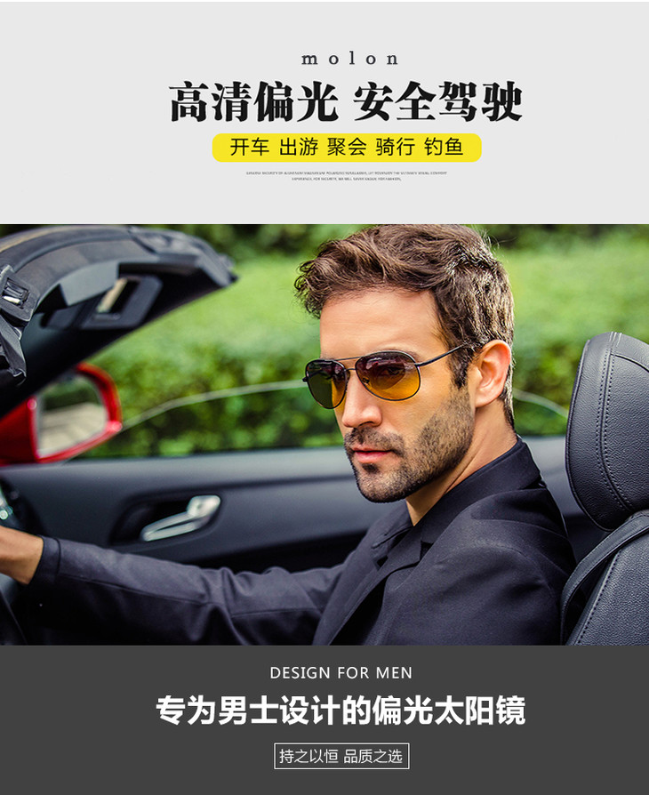 陌龙 开车日夜两用开启偏光驾驶镜男女高清偏光镜时尚蛤蟆镜反光高清
