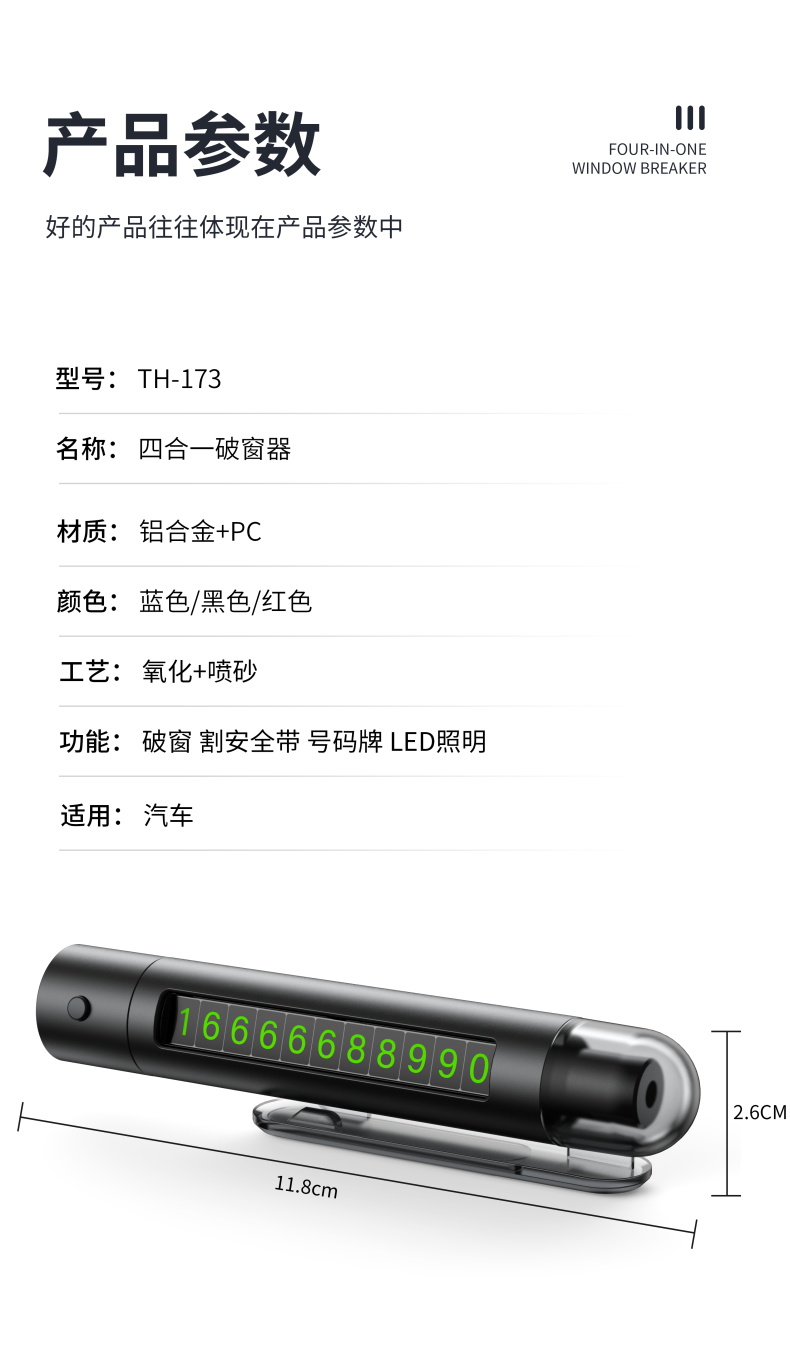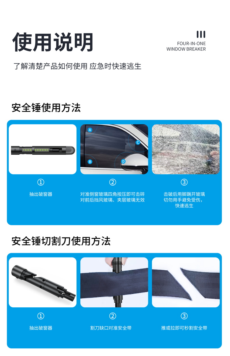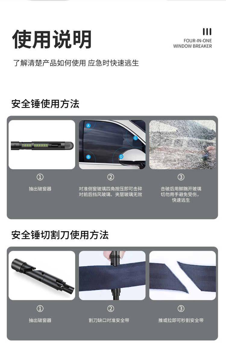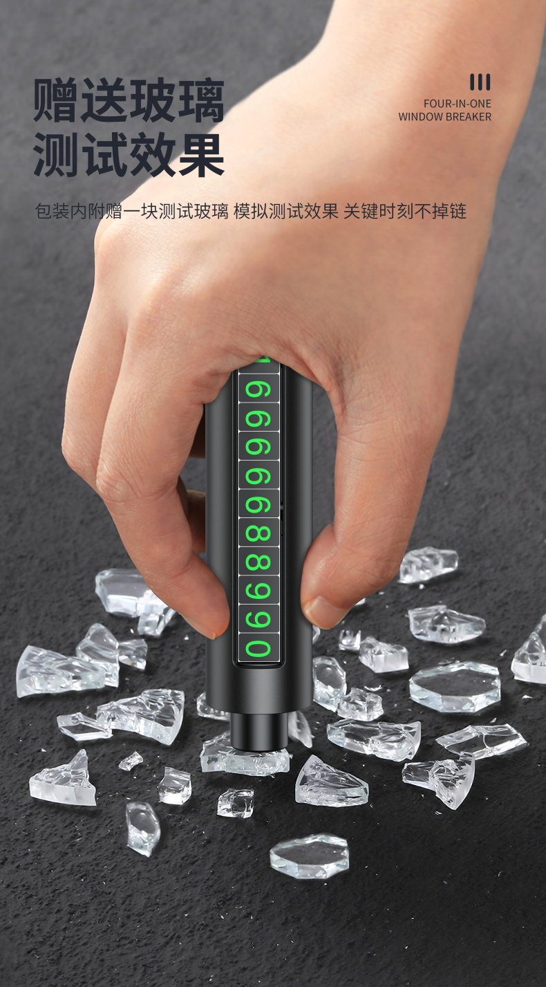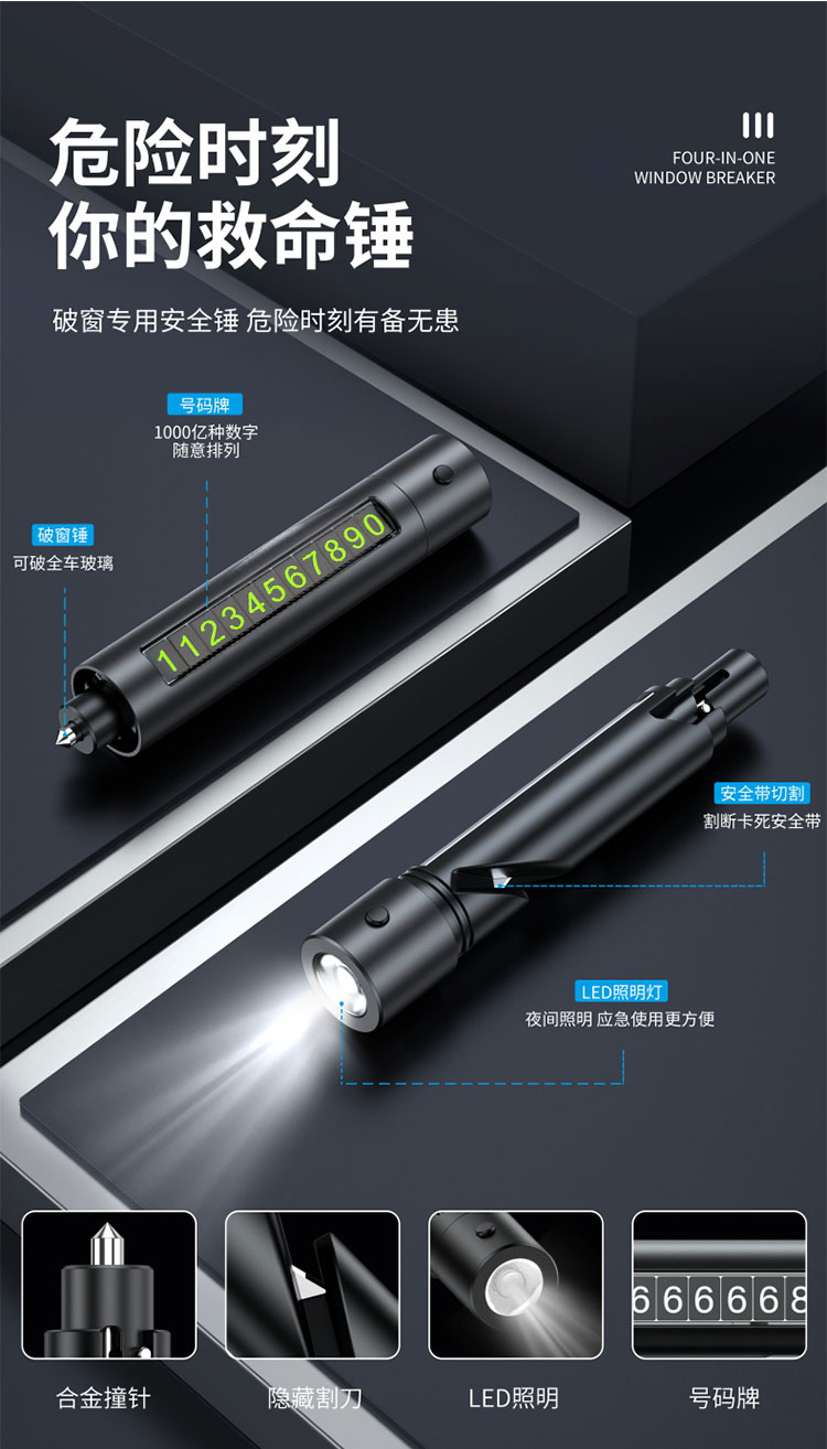 【一秒破窗】汽车安全救生锤车载破窗多功能玻璃逃生器停车号码牌安全锤
