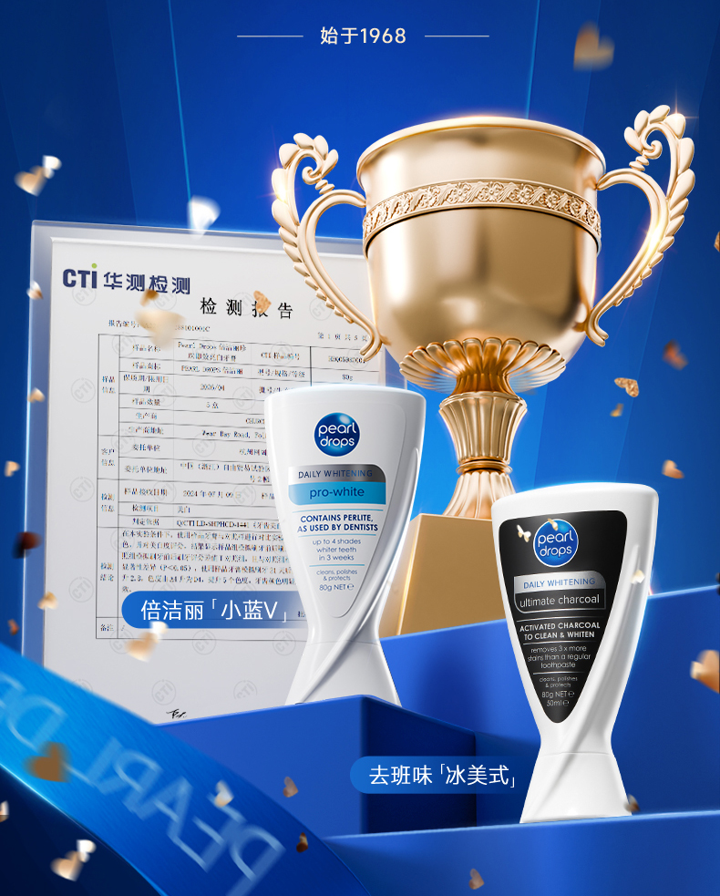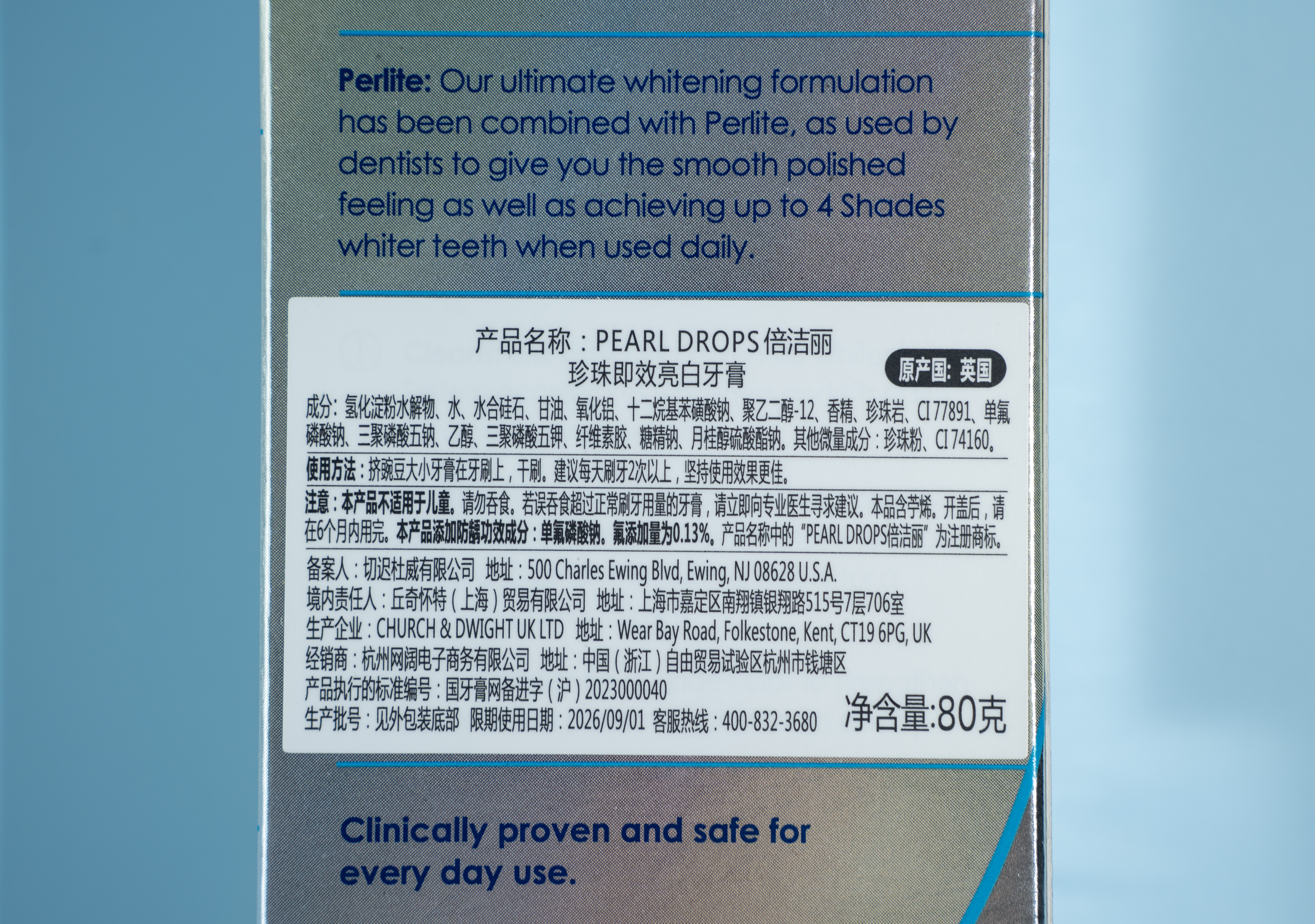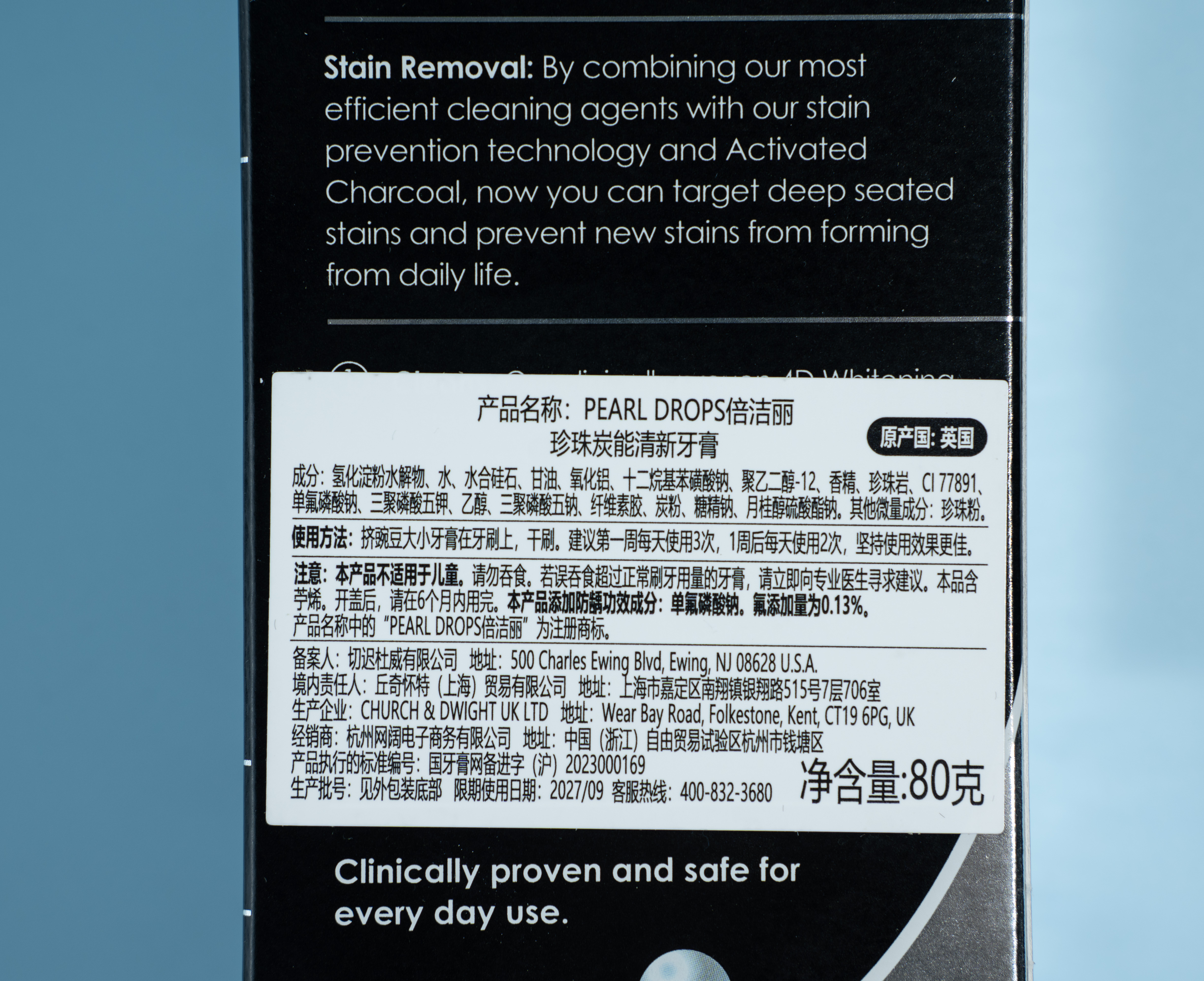 【净除咖/茶/烟渍】英国pearldrops倍洁丽珍珠即效亮白/炭能清新牙膏 80g/支