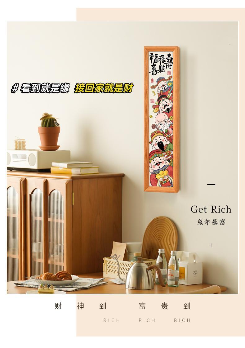 新年福禄寿喜财小摆件财神爷装饰画挂画玄关入户门摆画家居办公室