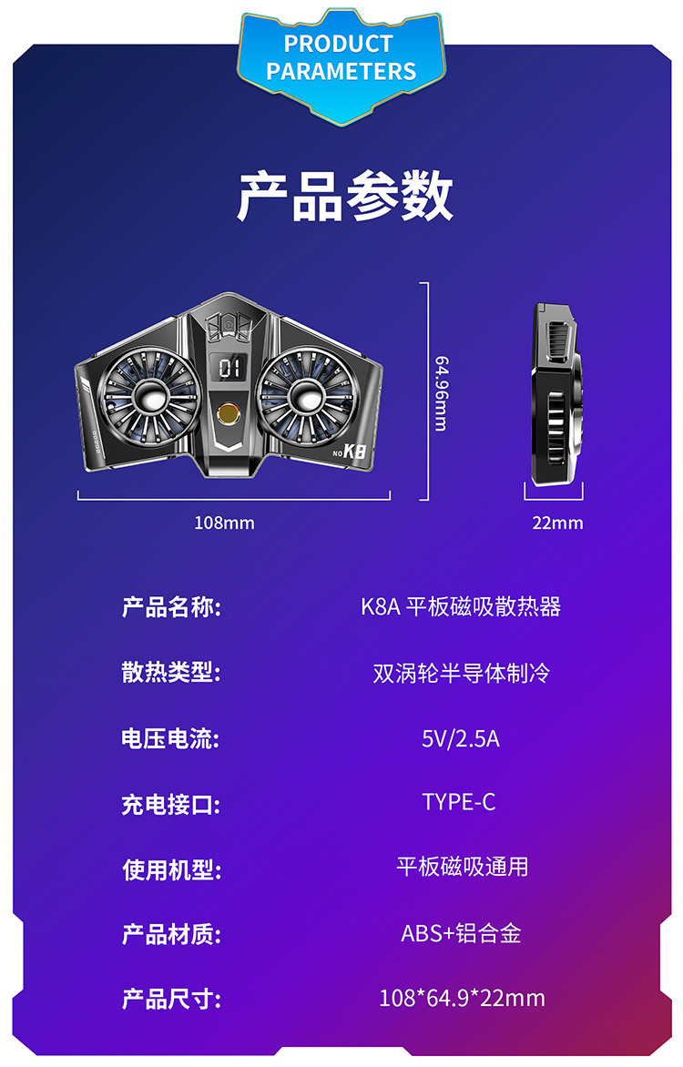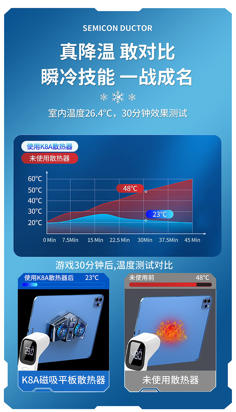 新款磁吸手机散热器超大面积平板ipad可用半导体超强制冷平板散热器/个