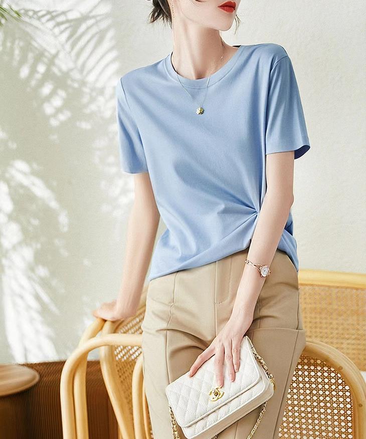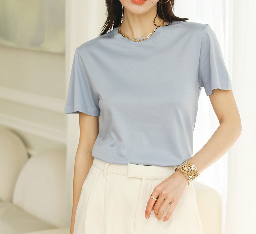 【99元三件,自行设置满减,单拍一件不发】爱凯莉·桑蚕丝丝光棉T恤, 既有真丝的凉感,亦有纯棉般的细腻亲肤