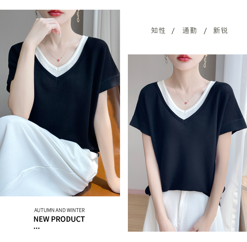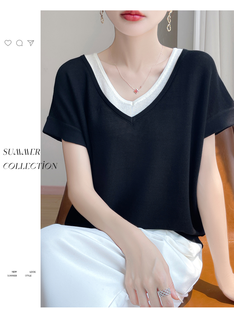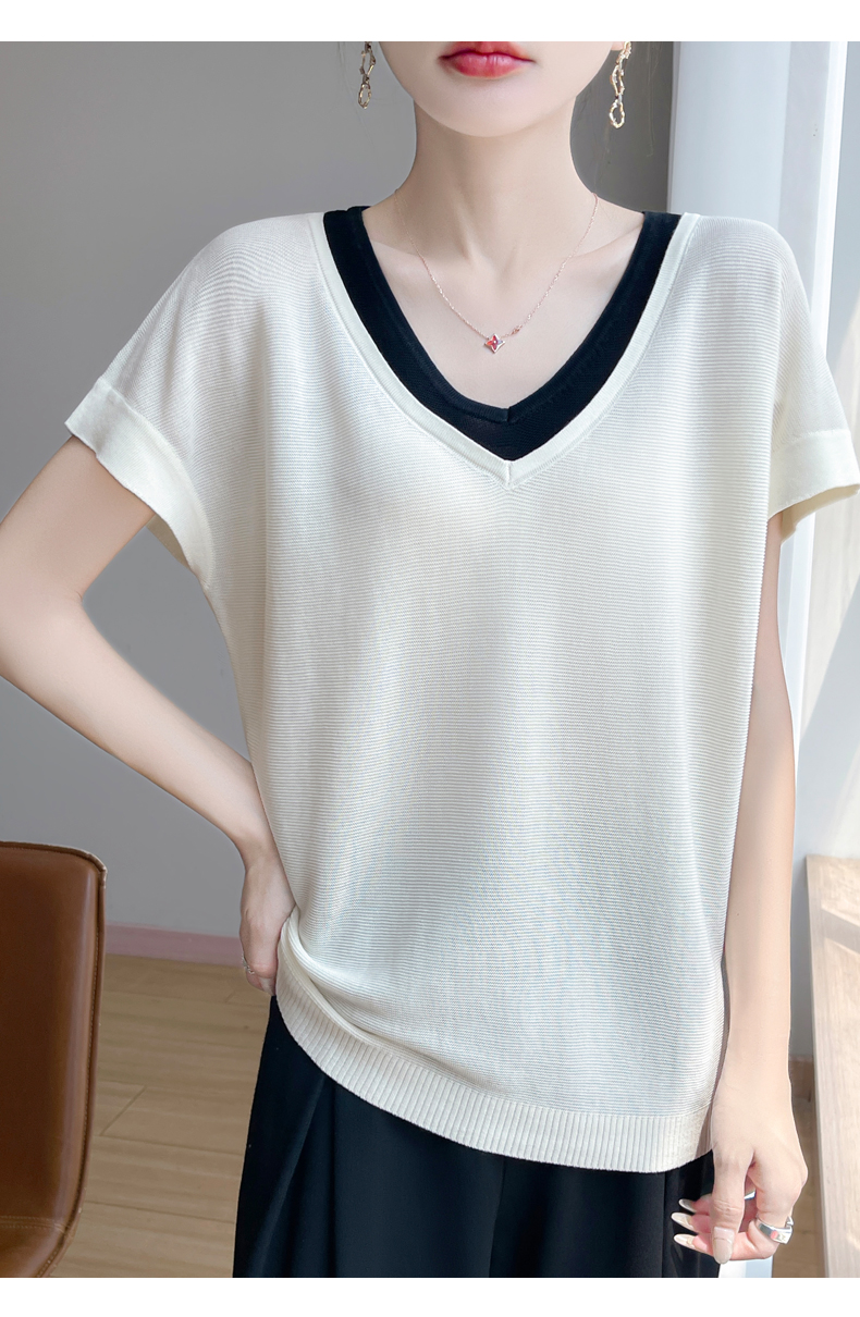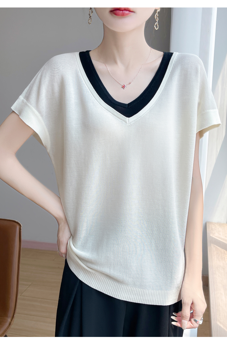 天丝双V领假两件短袖XK035