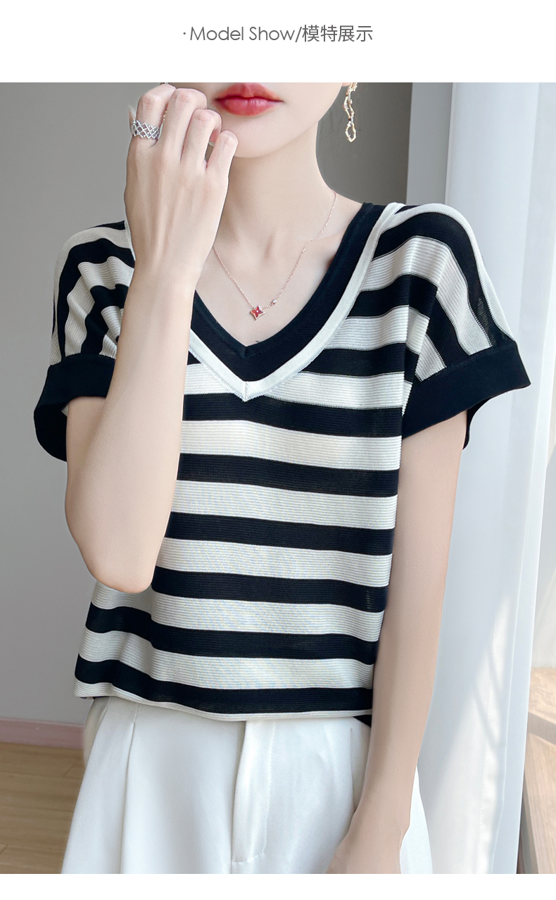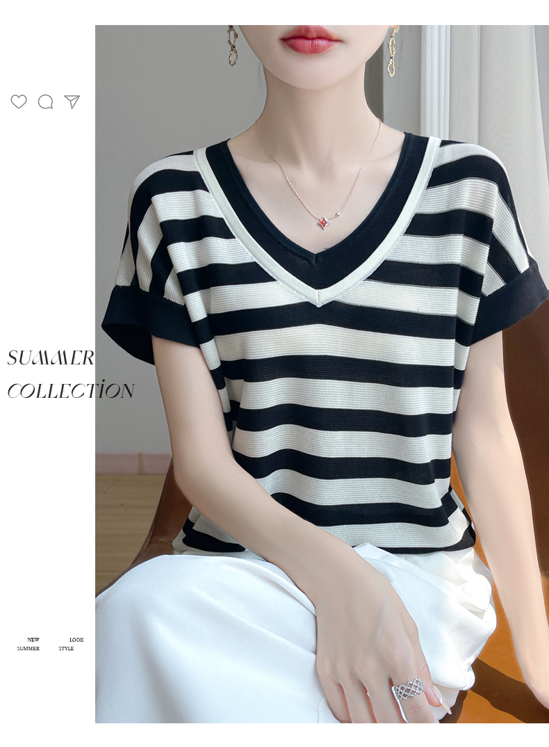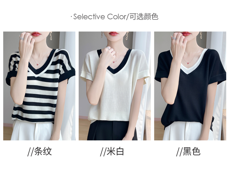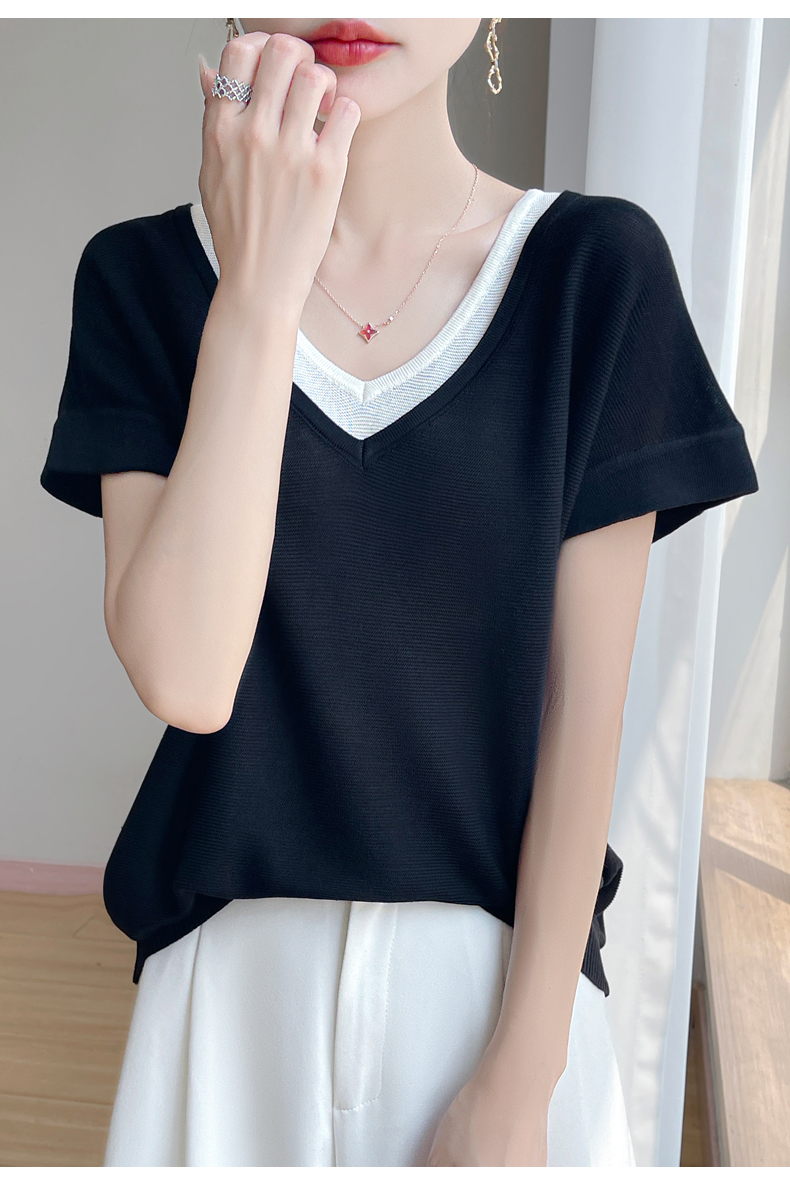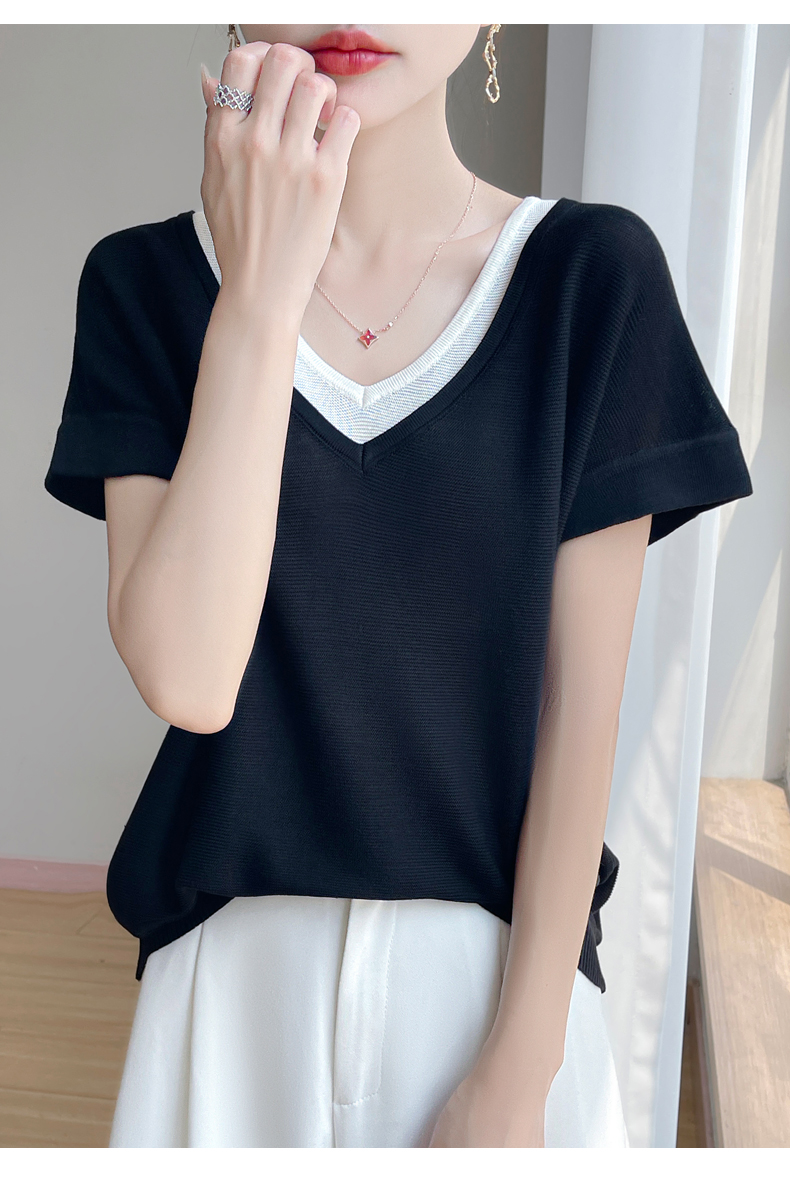 天丝双V领假两件短袖XK035