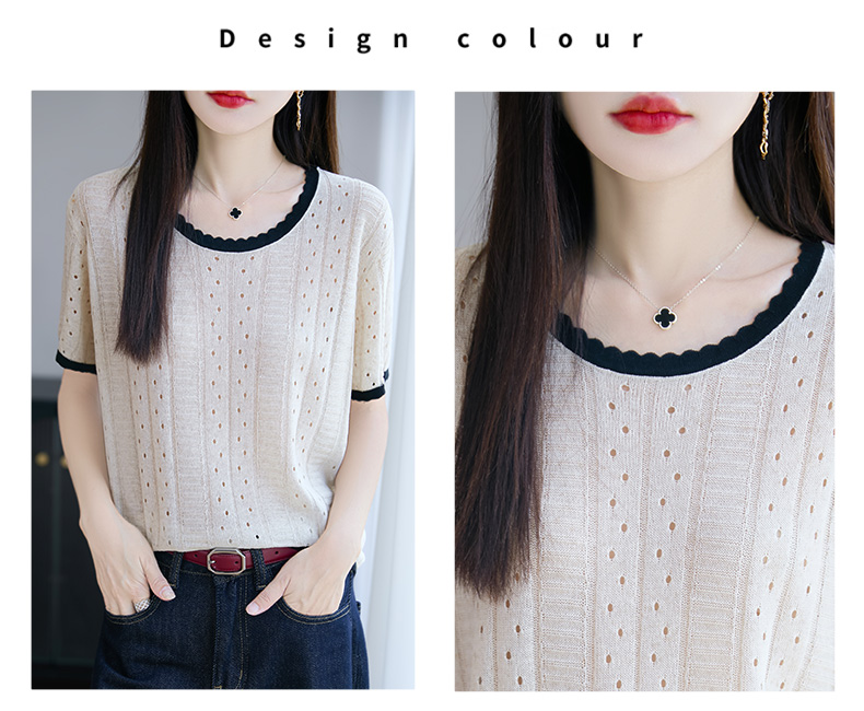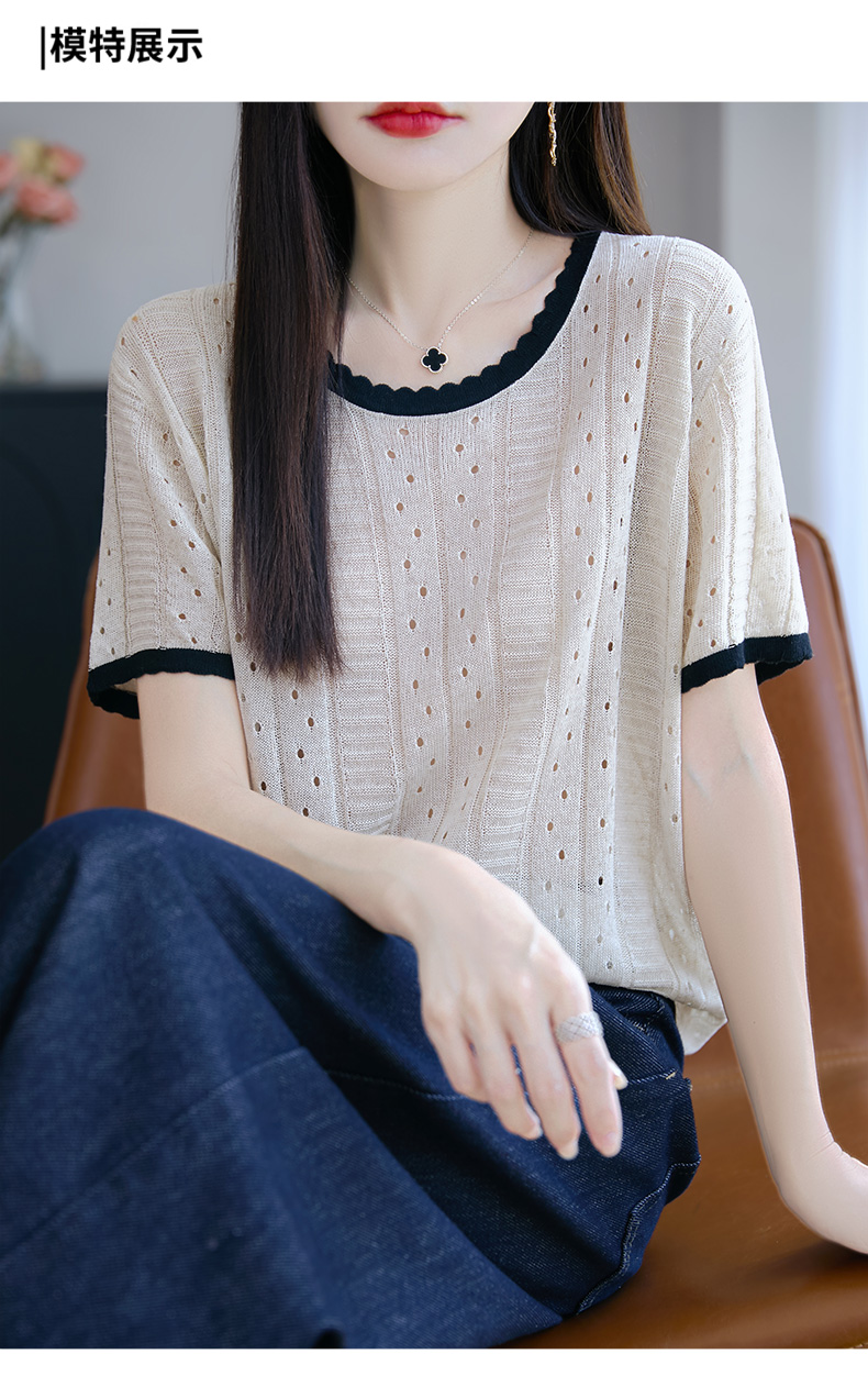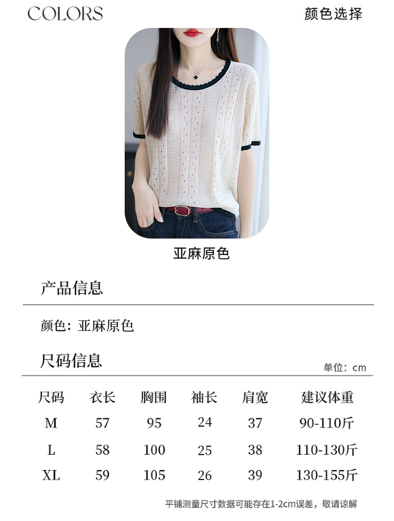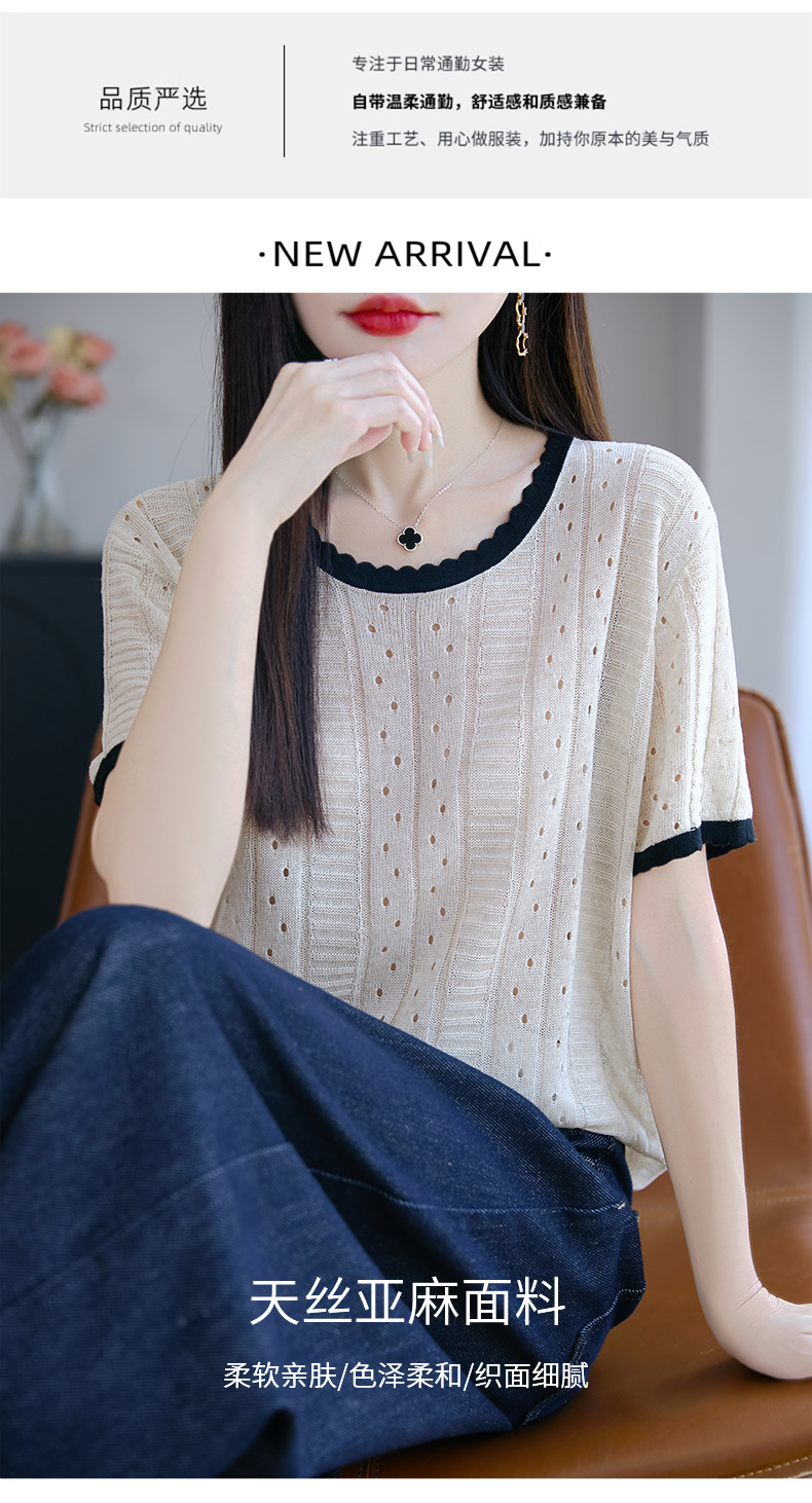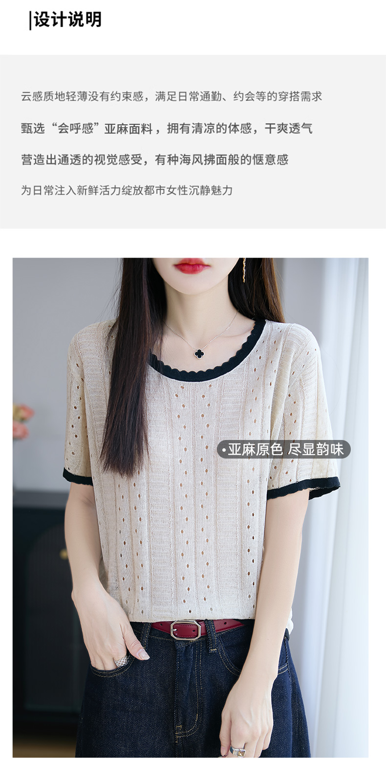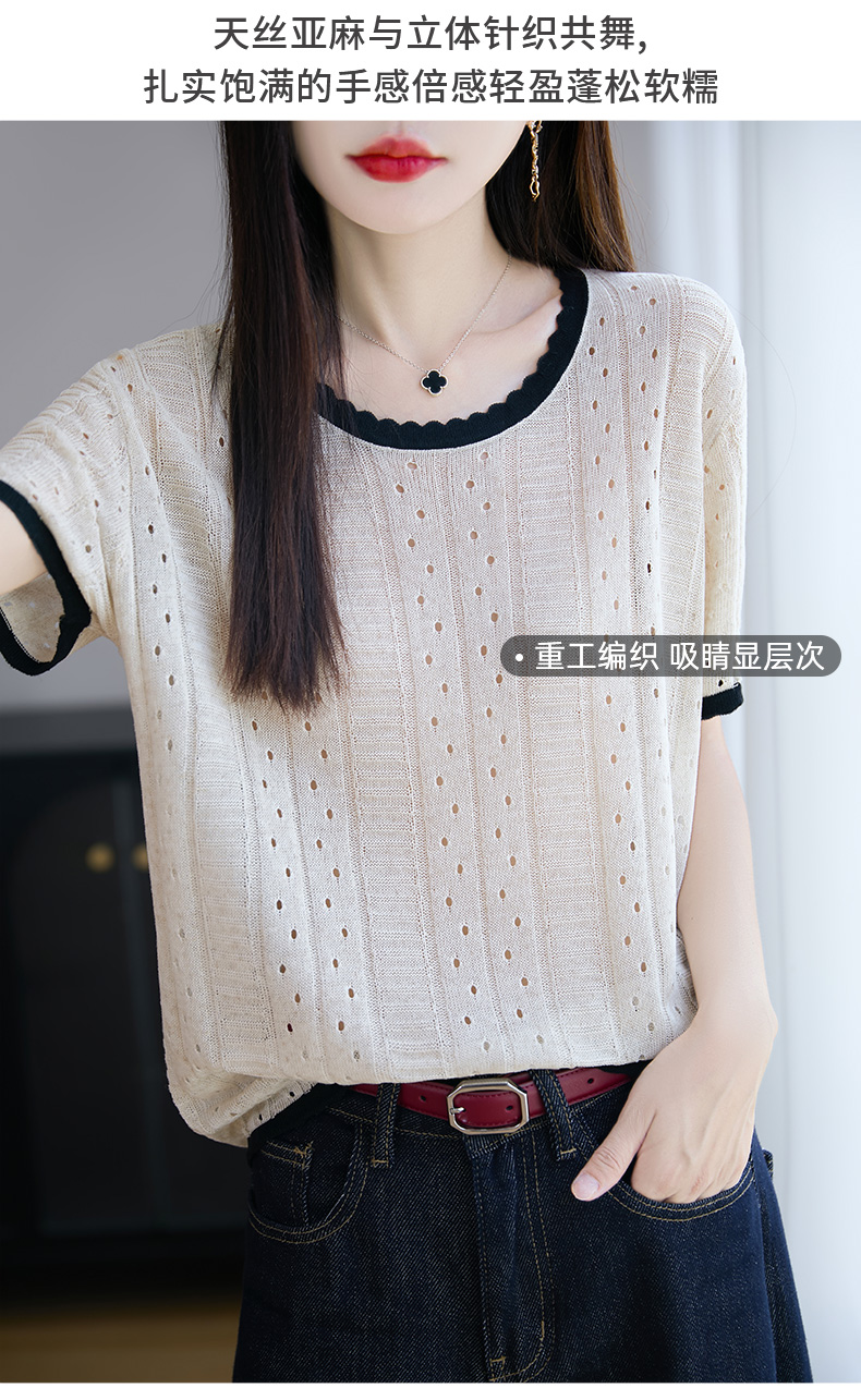天丝亚麻镂空花边短袖XKN029面料:晴纶53.2% 莱赛尔34.1% 亚麻12.7%