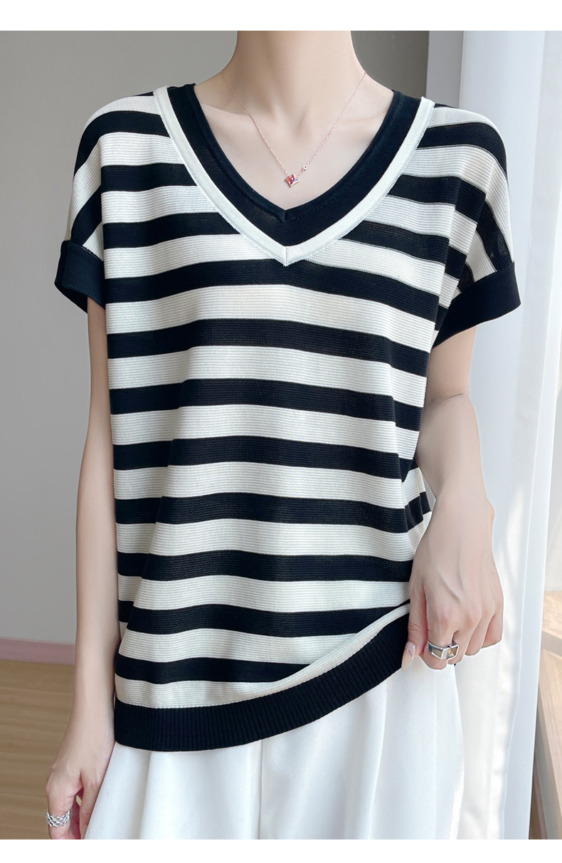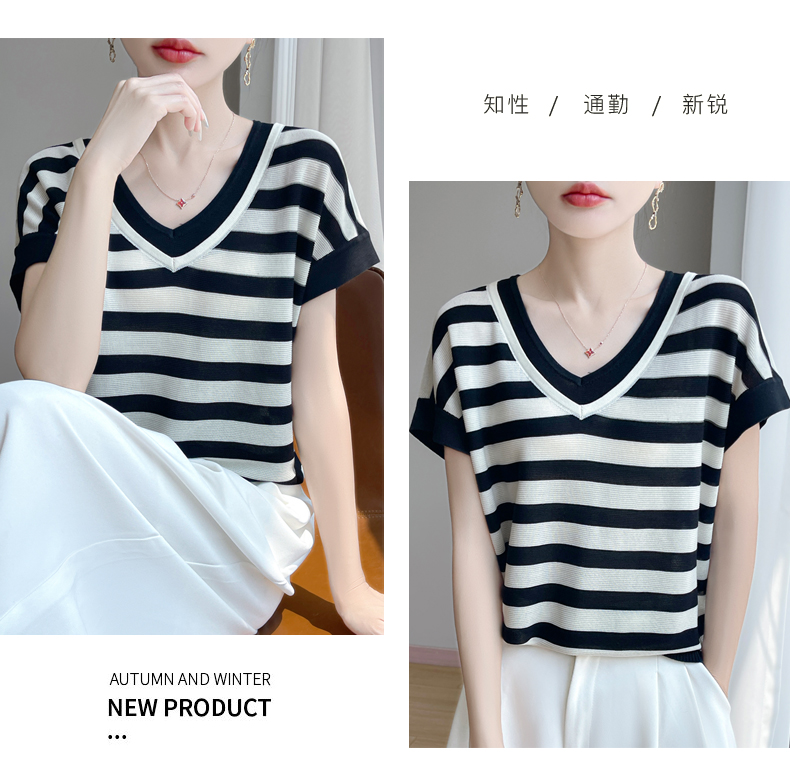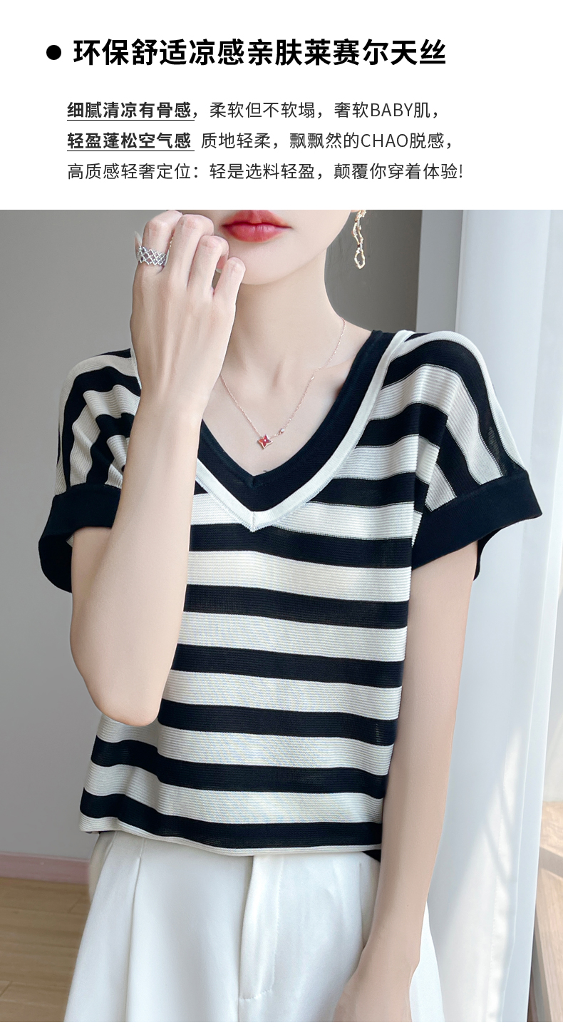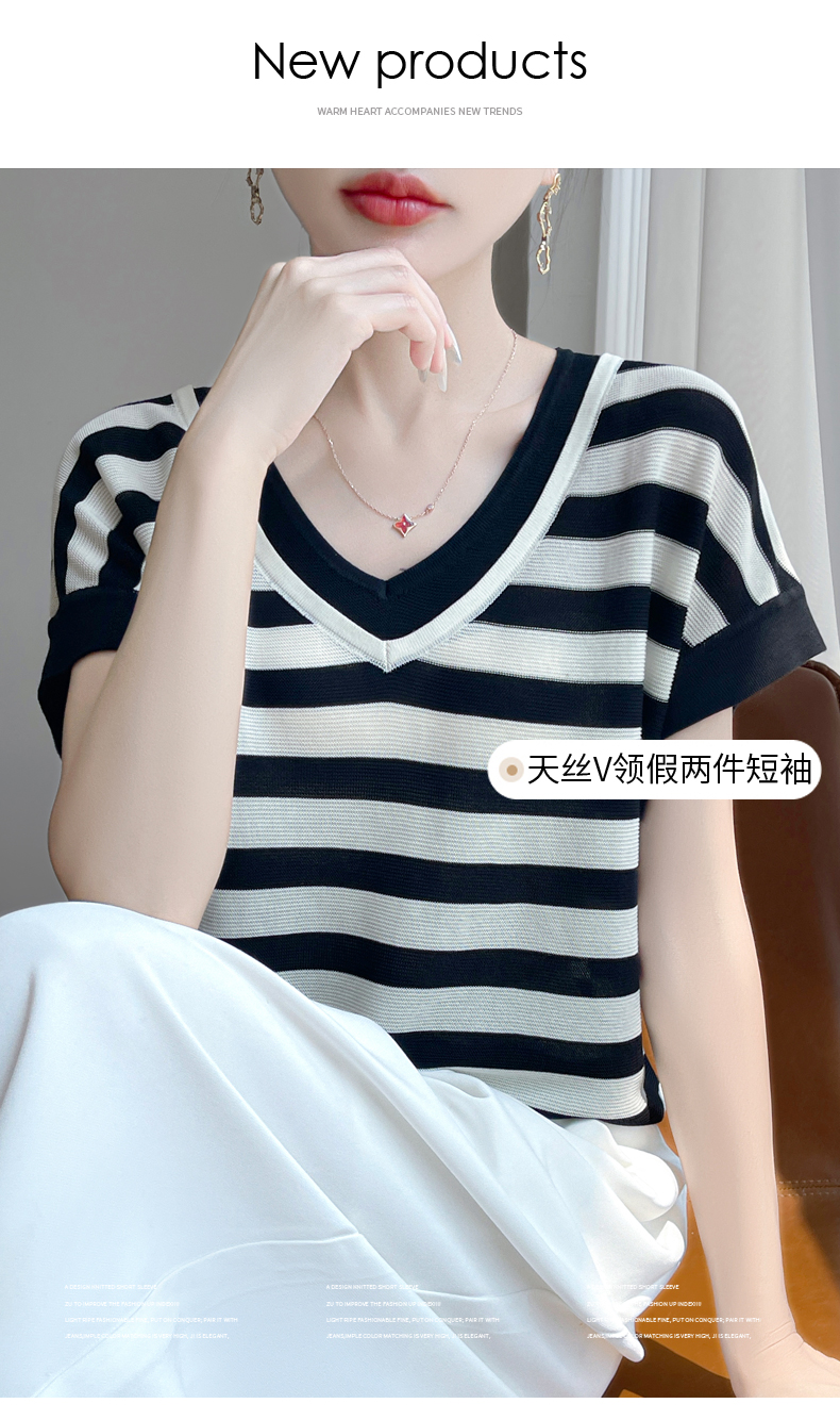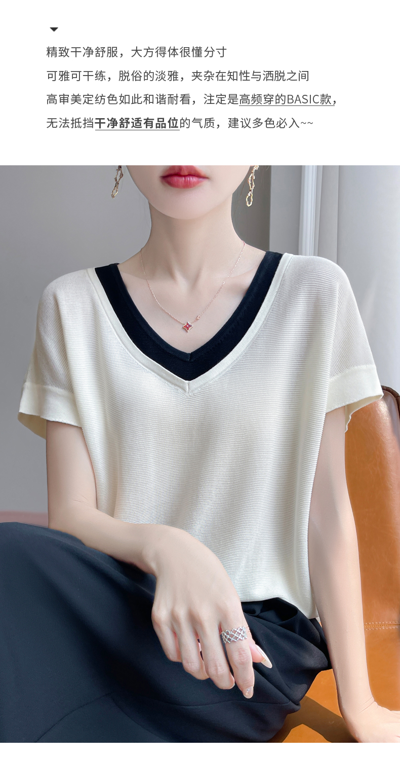 天丝双V领假两件短袖XK035面料:100%莱赛尔