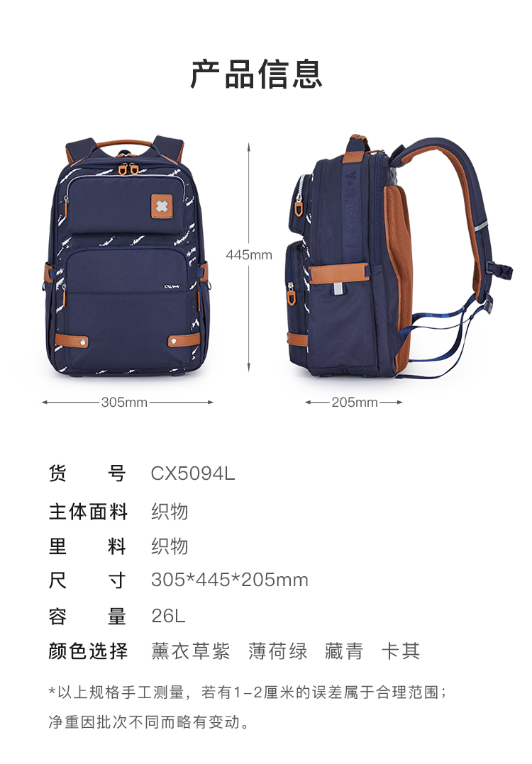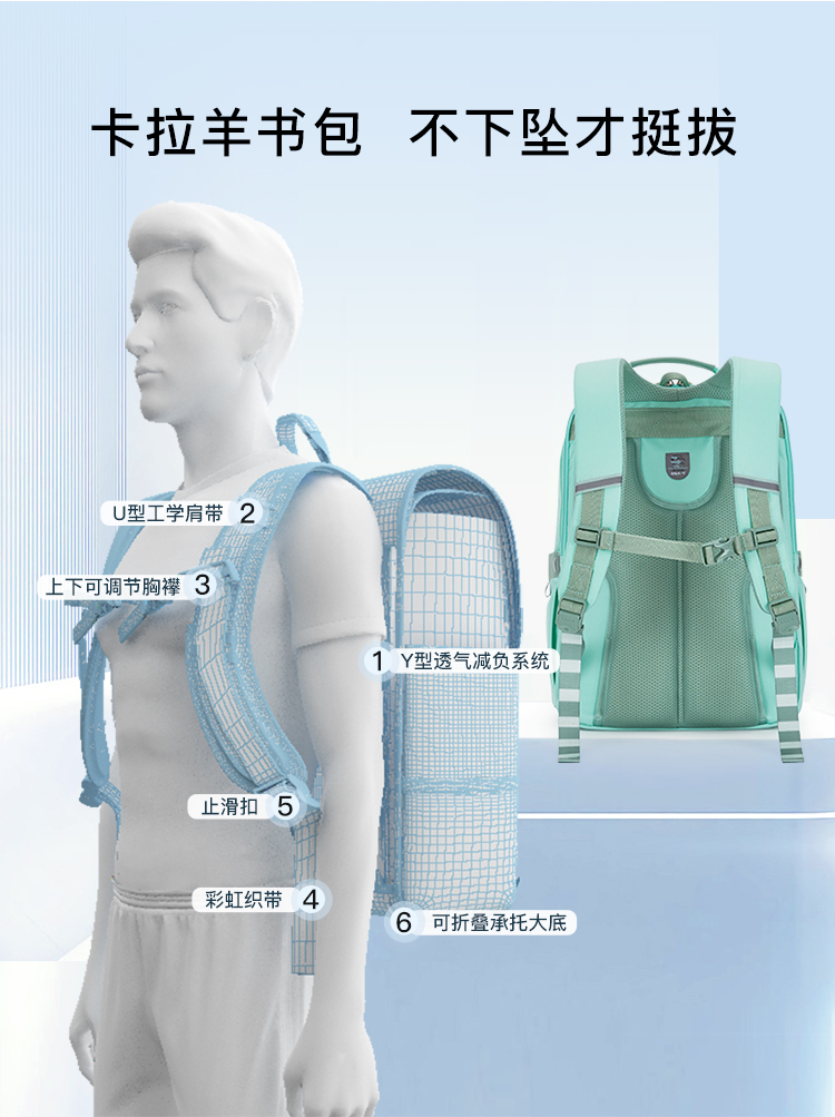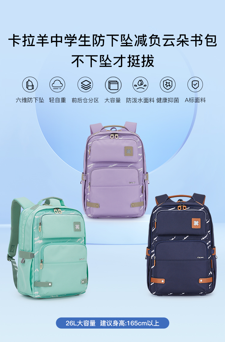 【云朵书包2.0PLUS版】卡拉羊中学生六维防下坠26L云朵书包 海浪 CX5094L