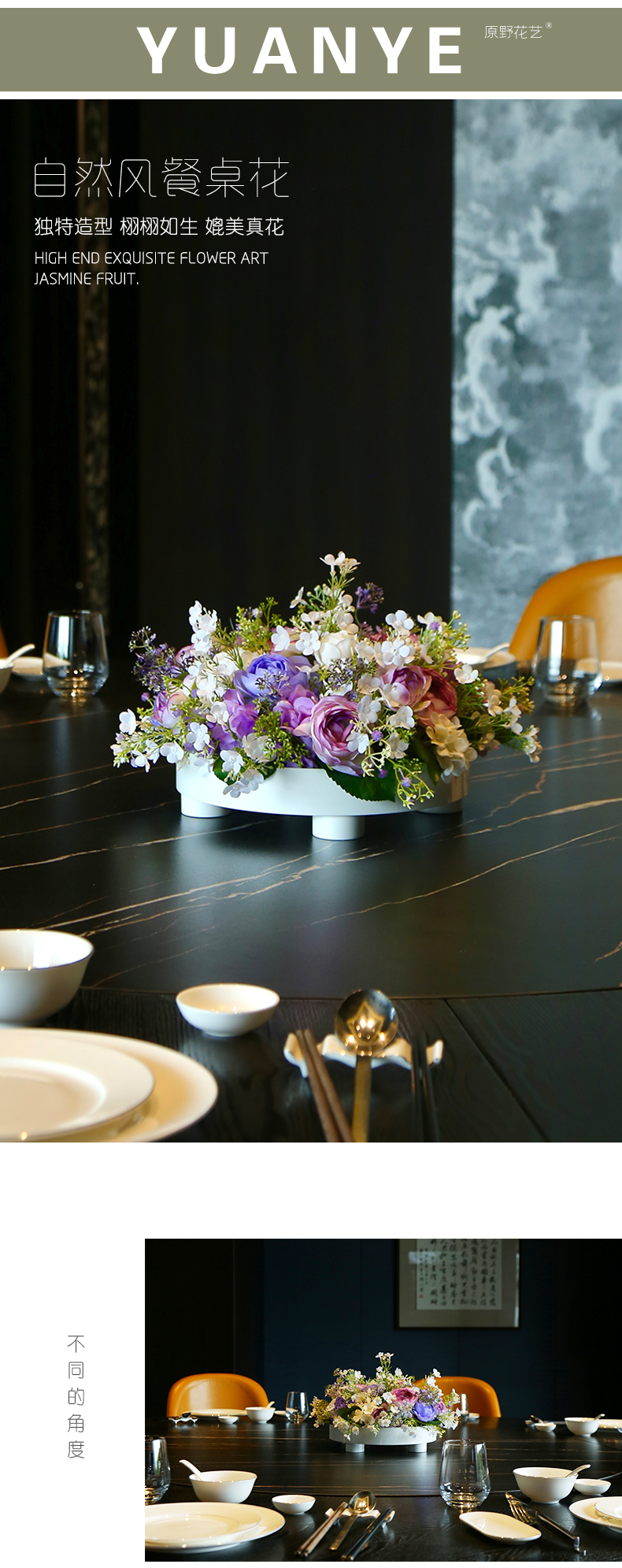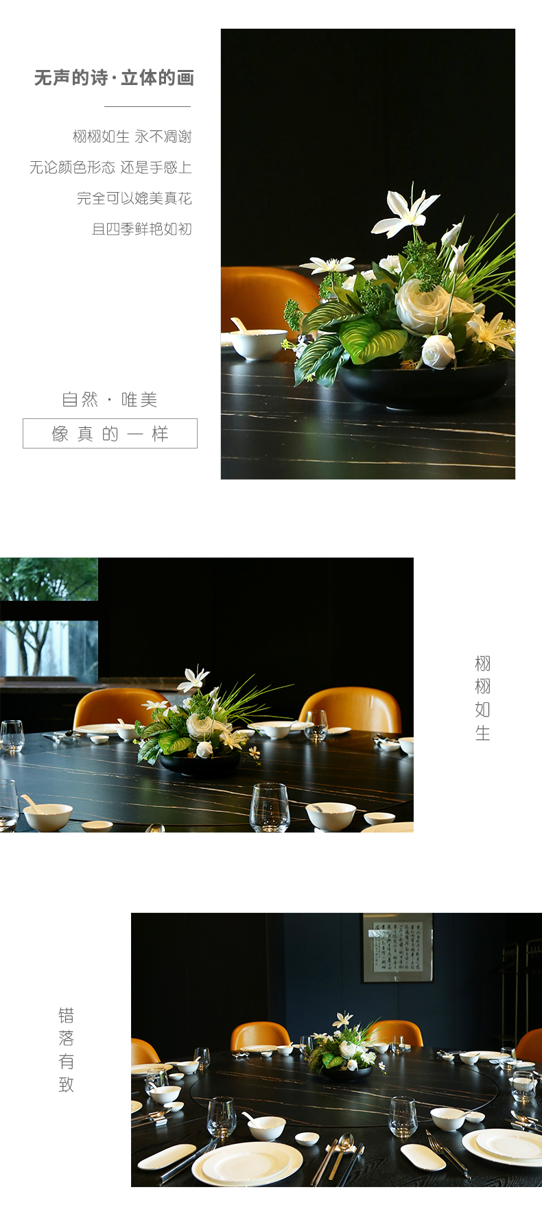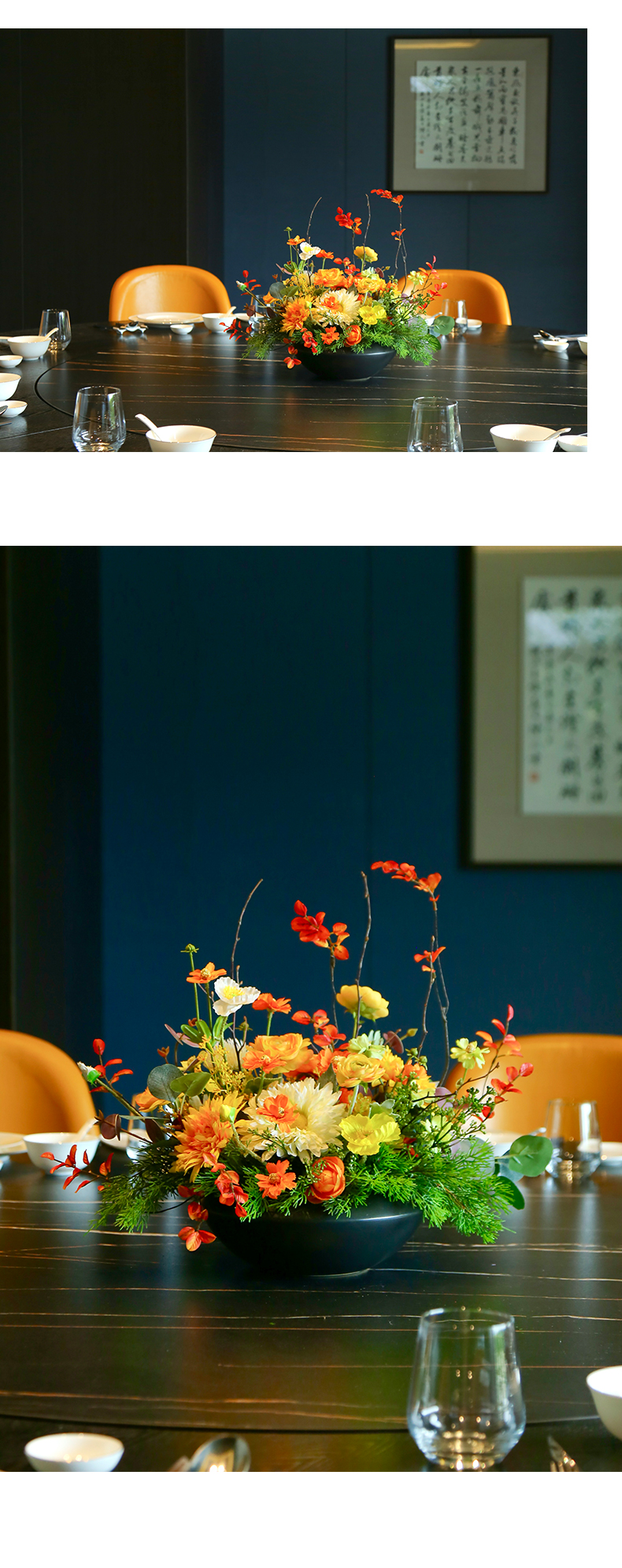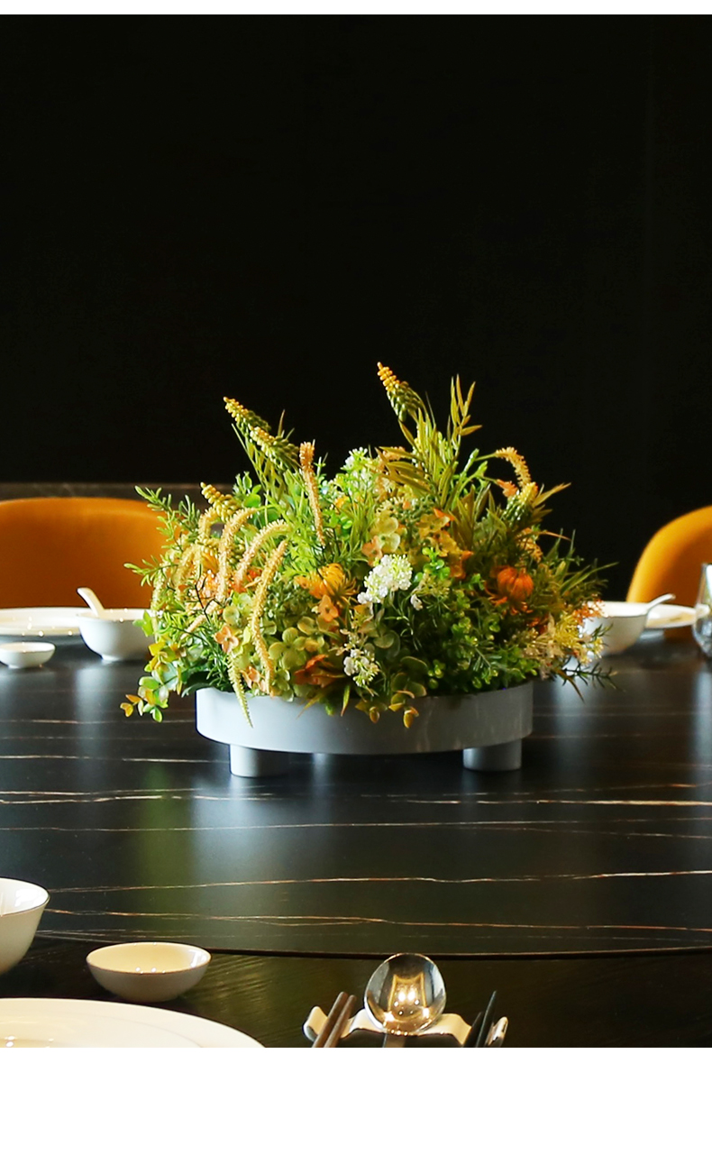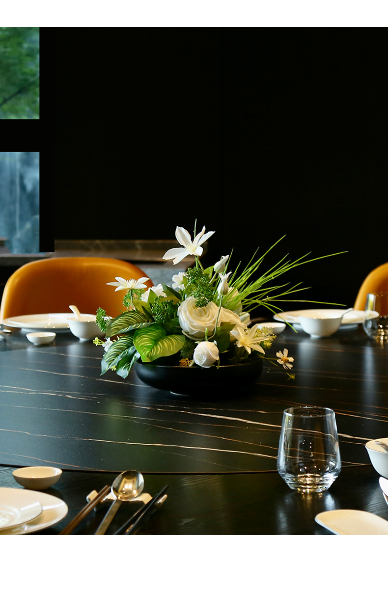 高端圆桌转盘仿真花餐桌花摆花轻奢高档酒店茶室中间摆件大装饰花