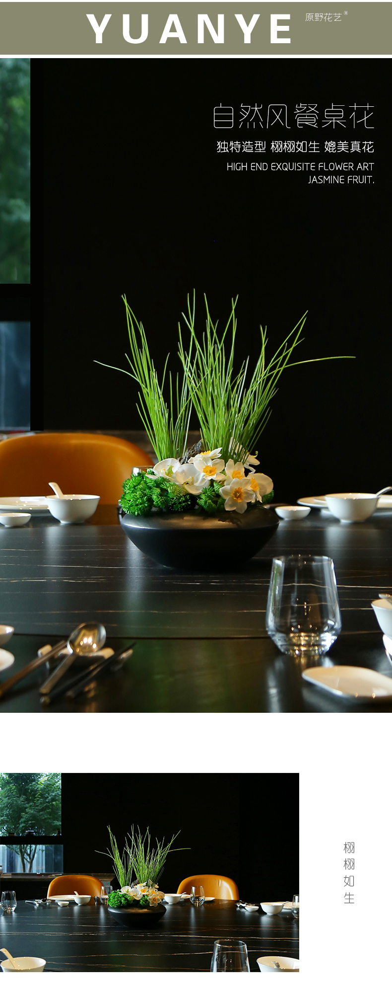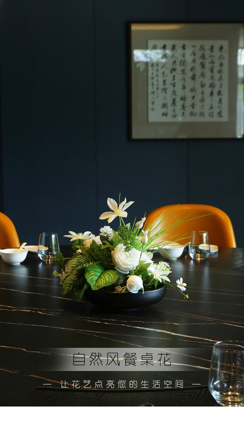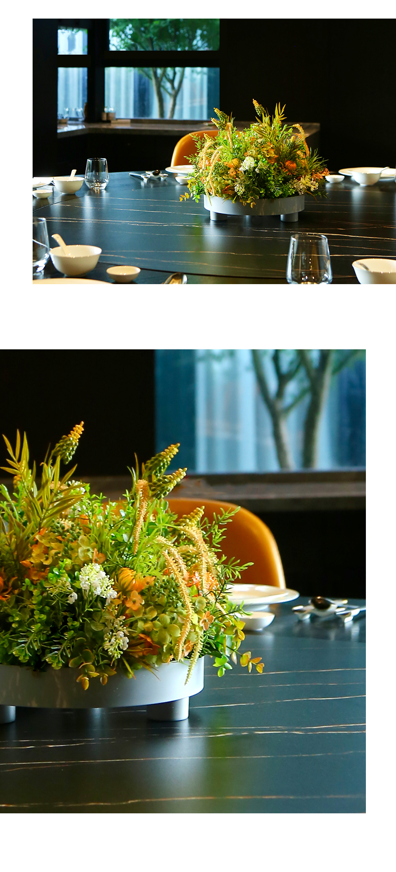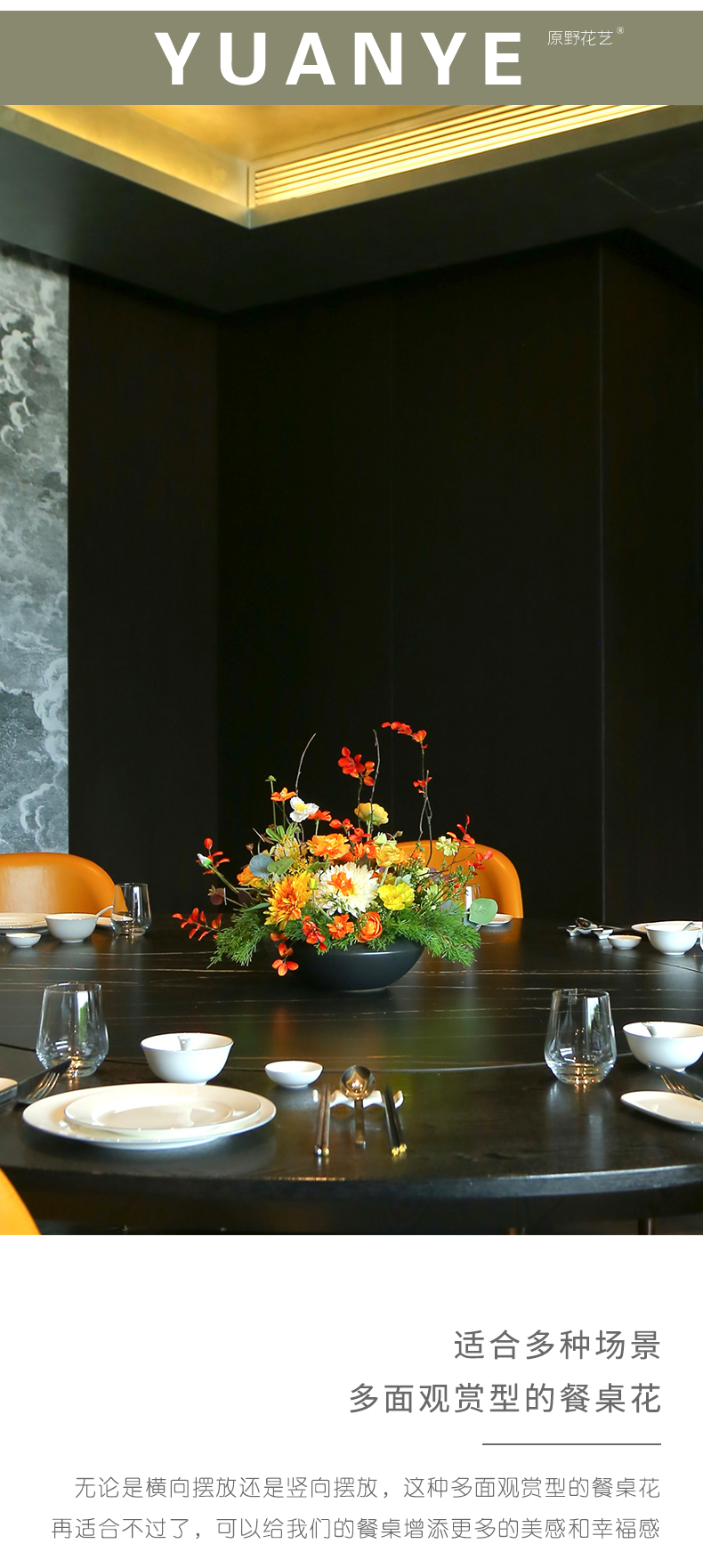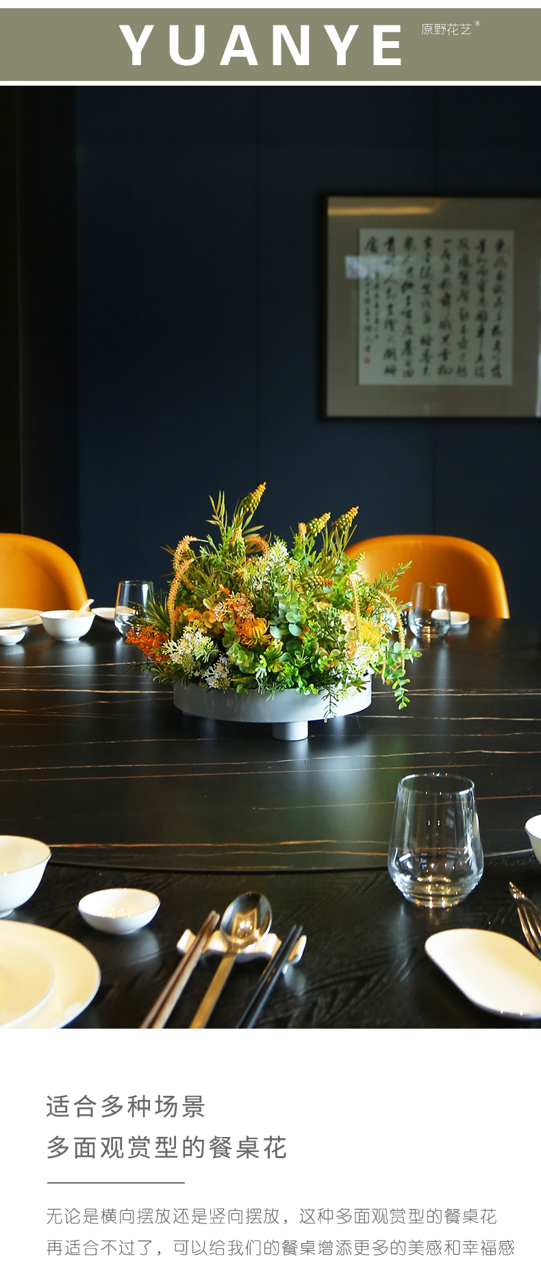 高端圆桌转盘仿真花餐桌花摆花轻奢高档酒店茶室中间摆件大装饰花