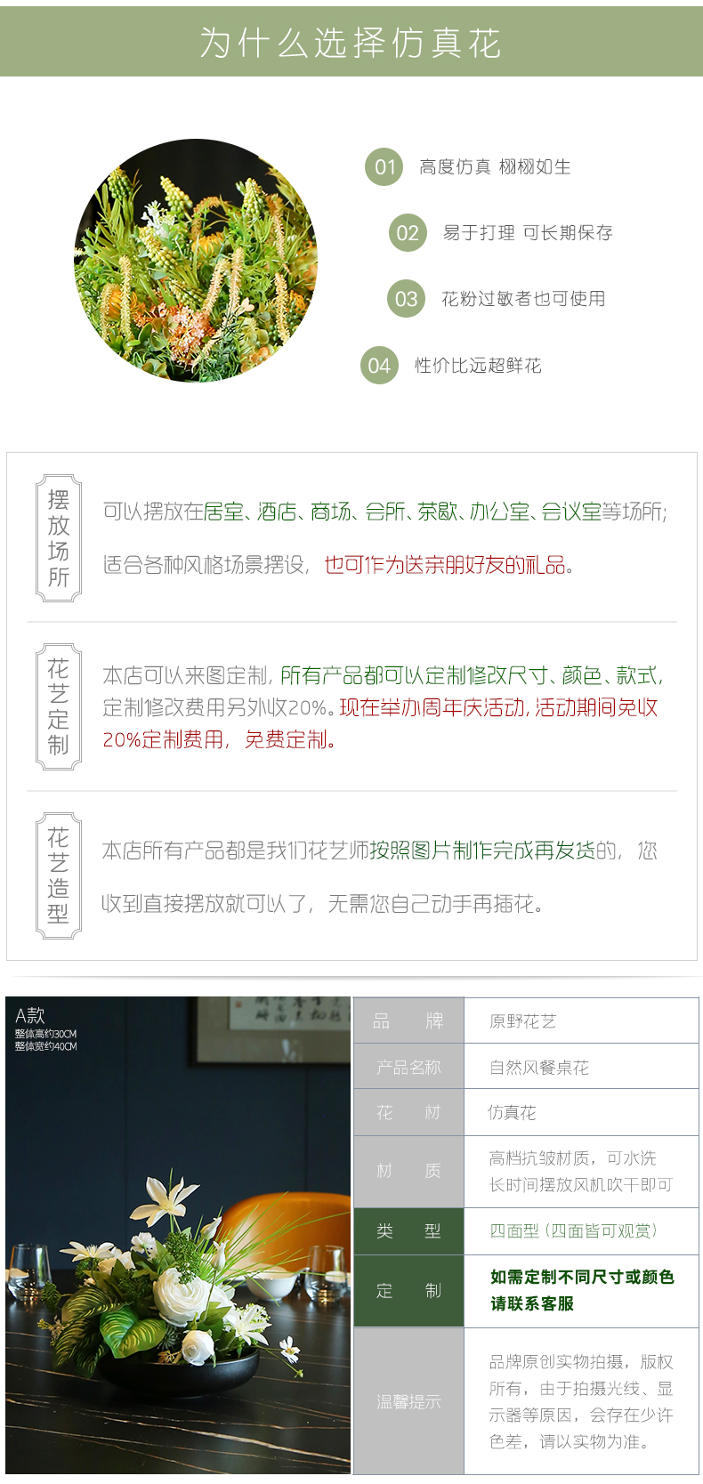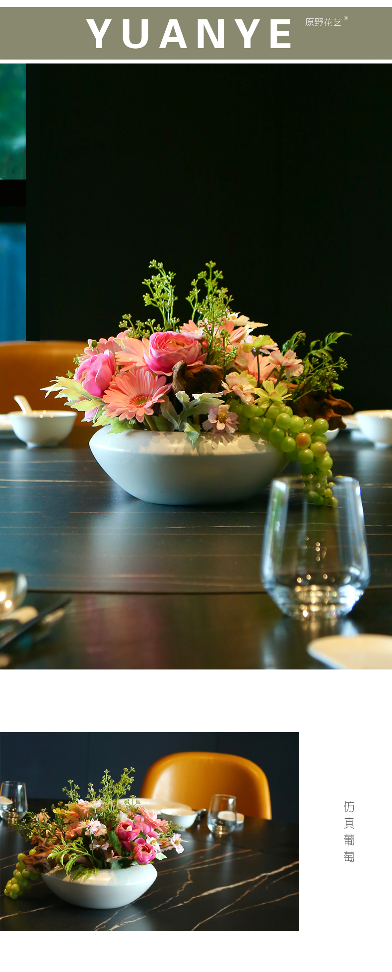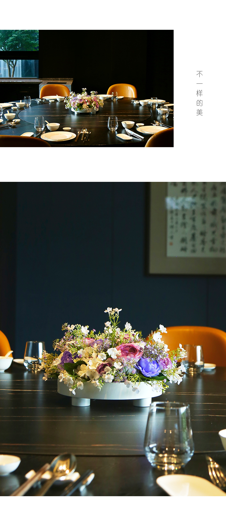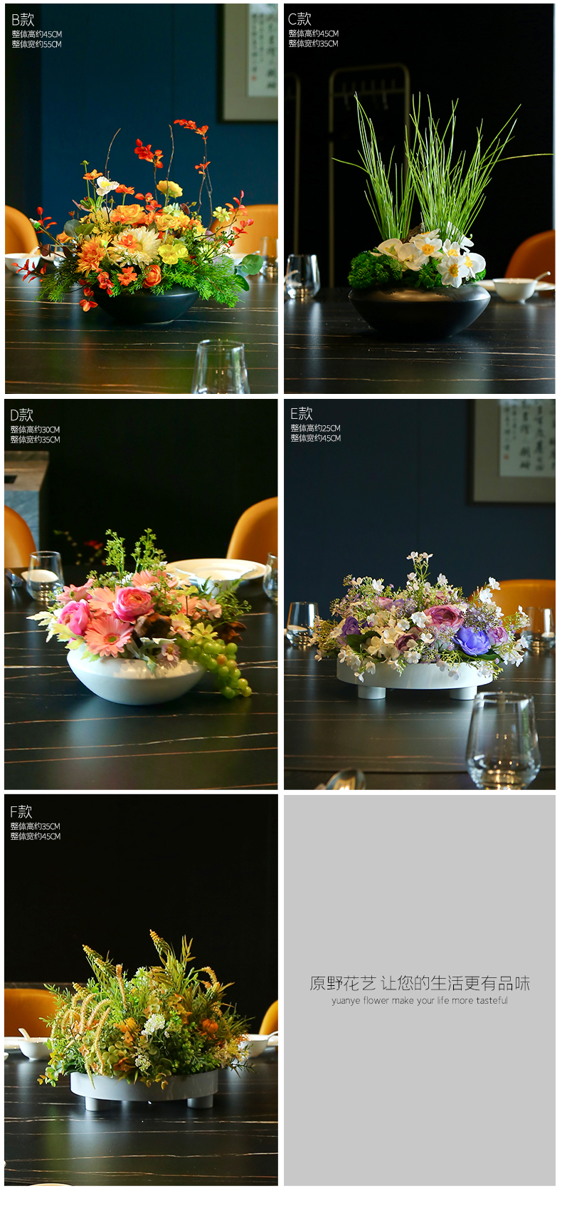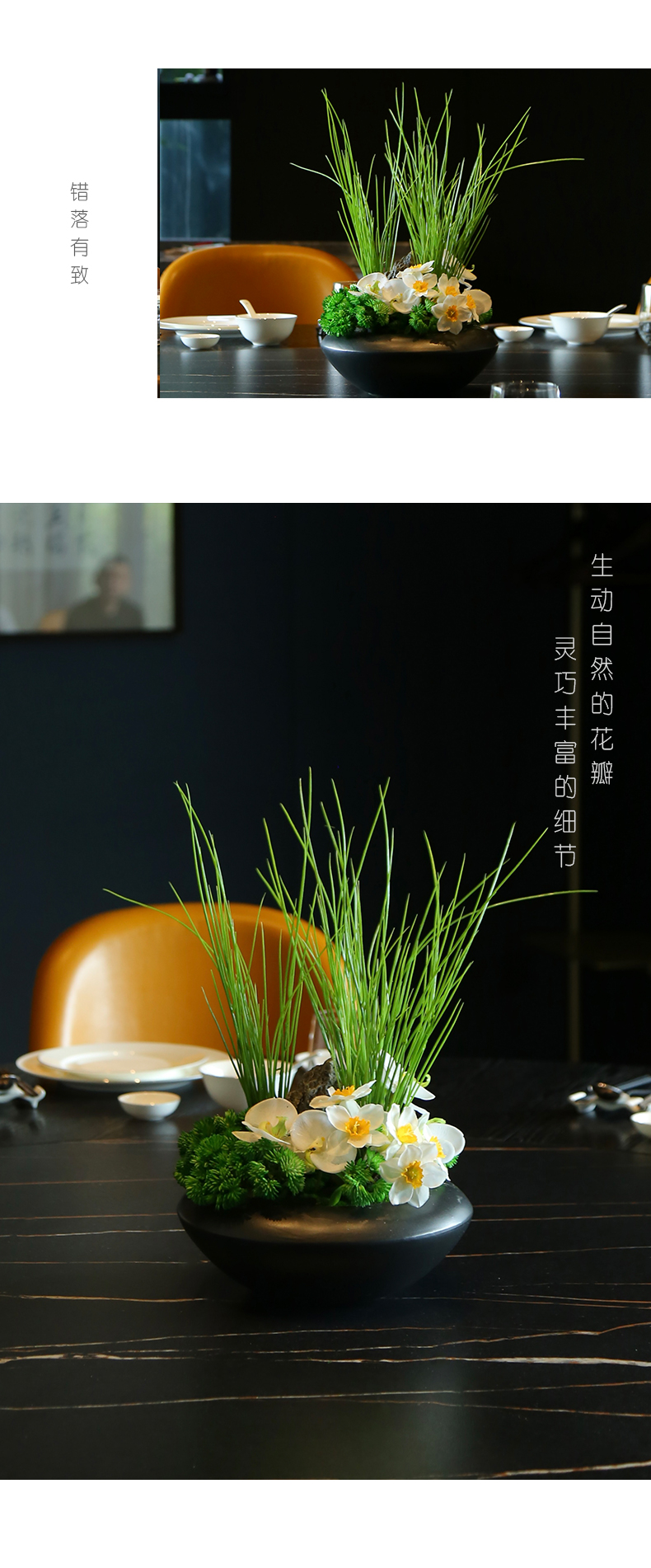 高端圆桌转盘仿真花餐桌花摆花轻奢高档酒店茶室中间摆件大装饰花