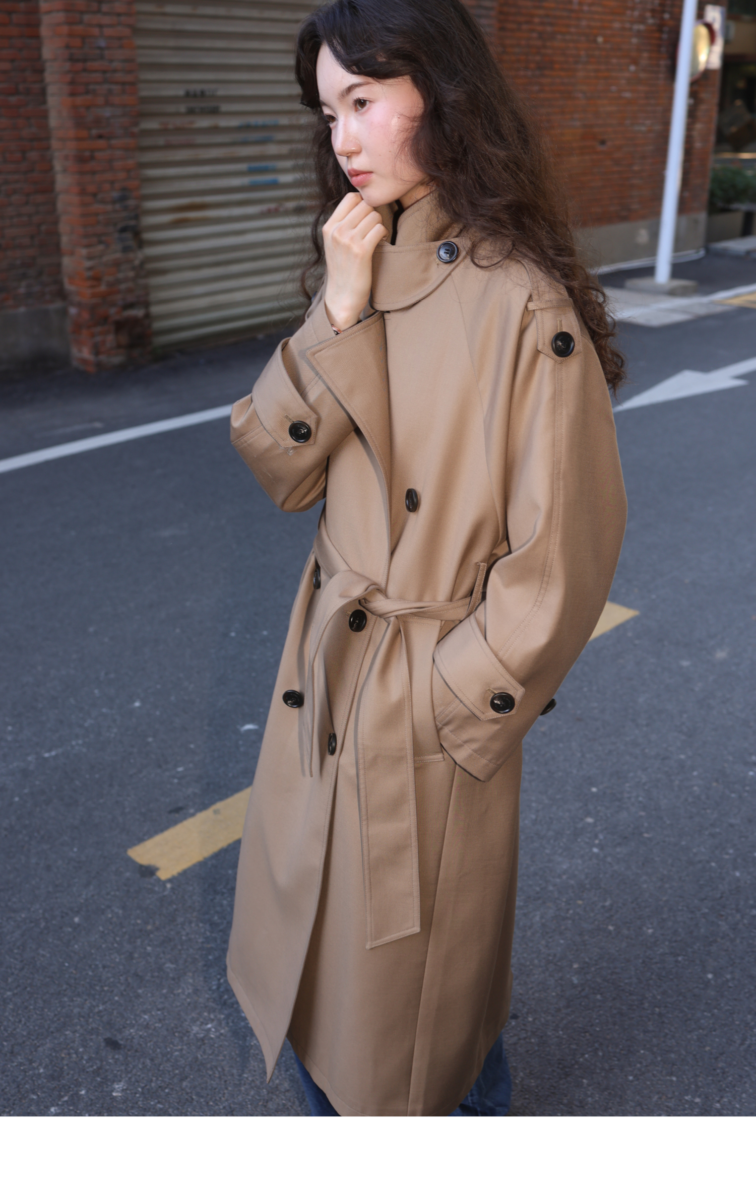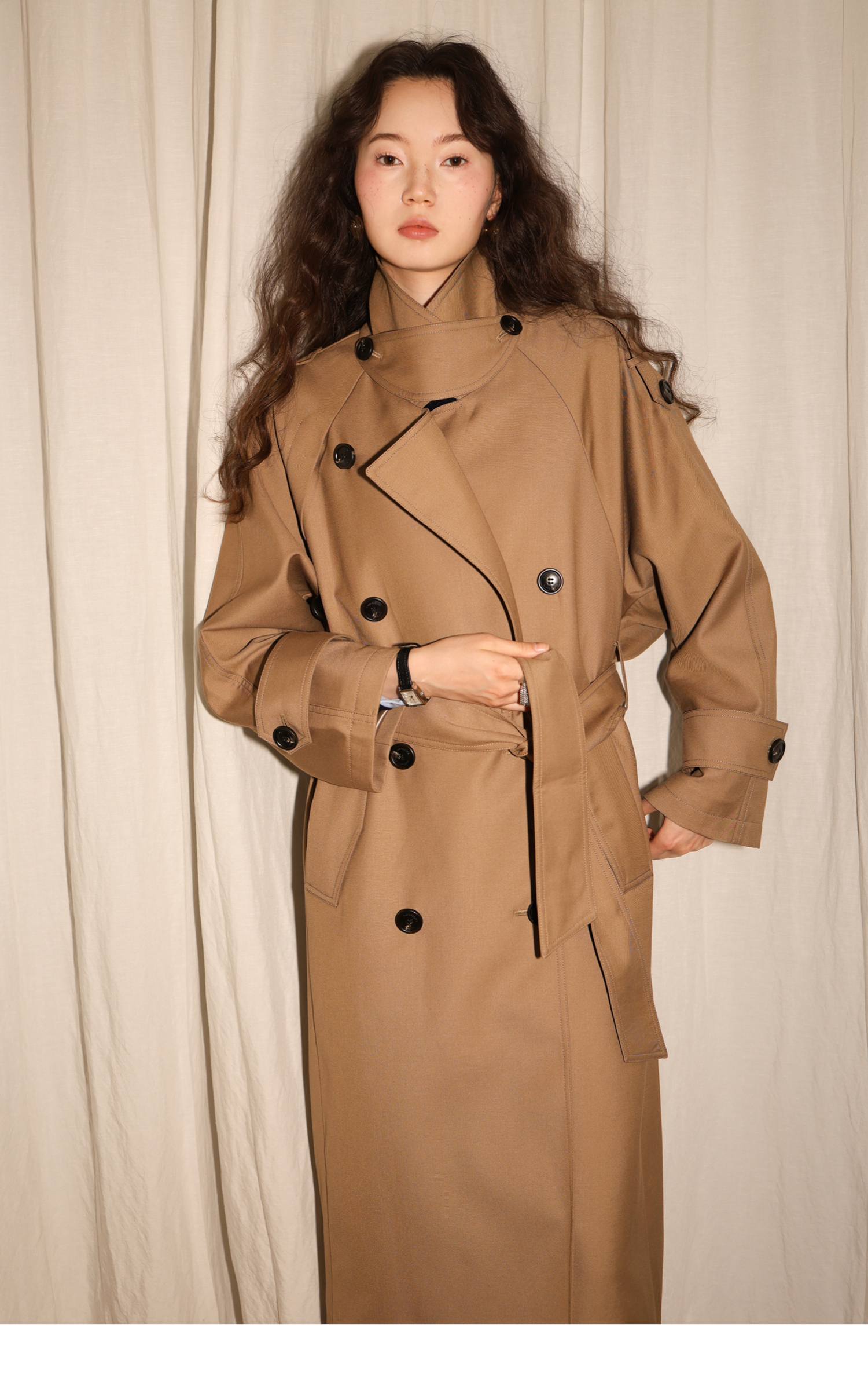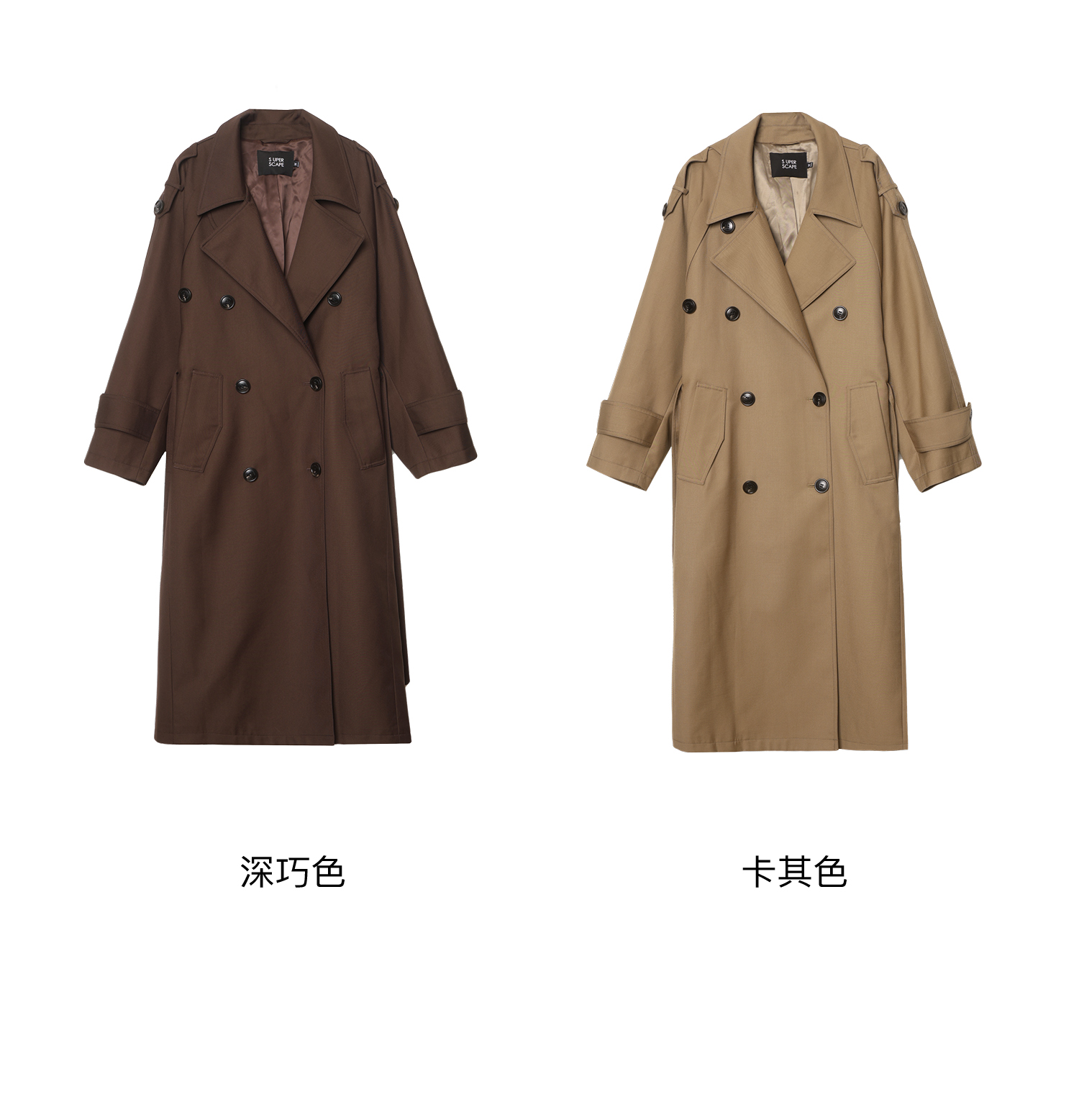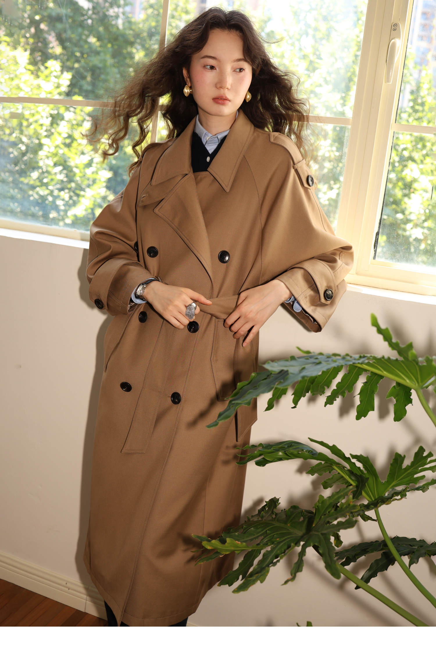 【8/6新品】素舶棉混纺廓形大翻领双排扣长款风衣