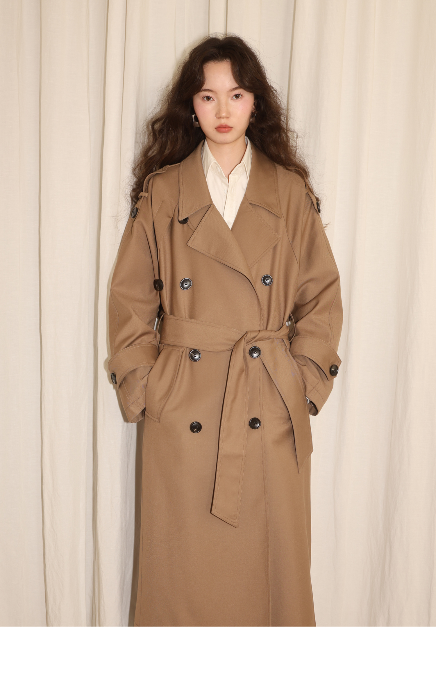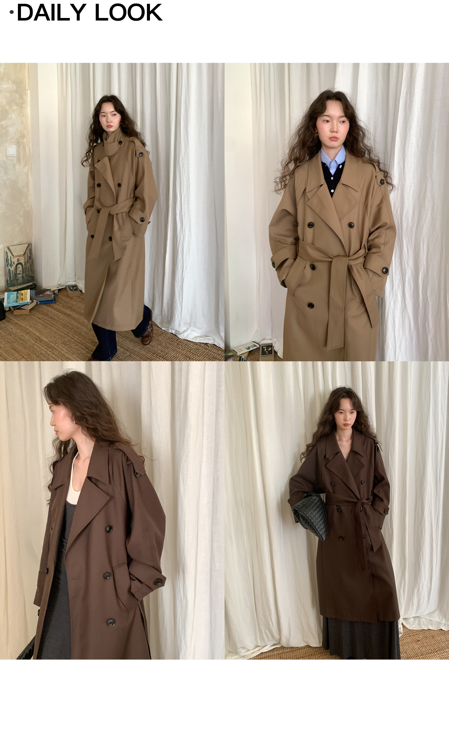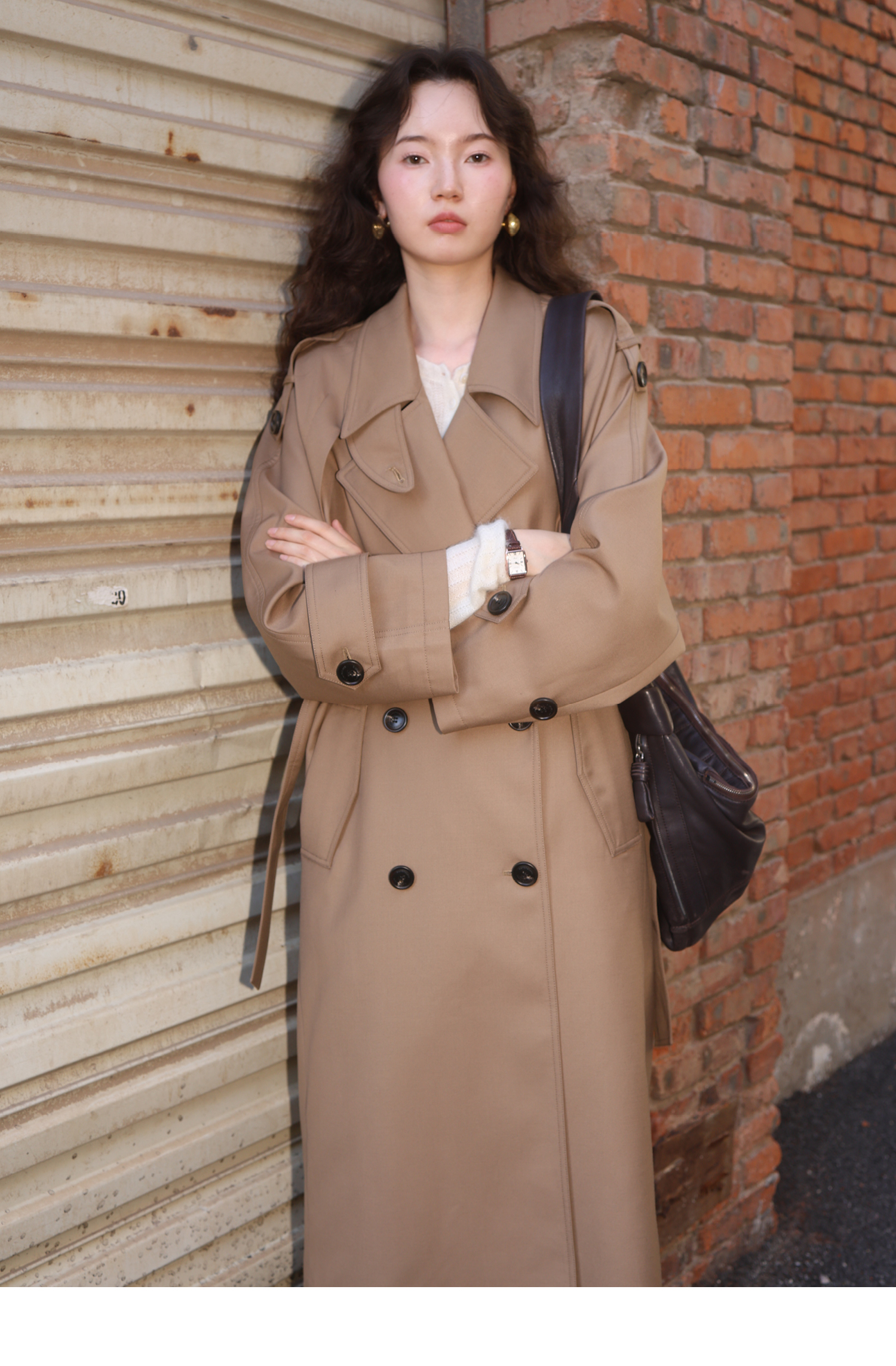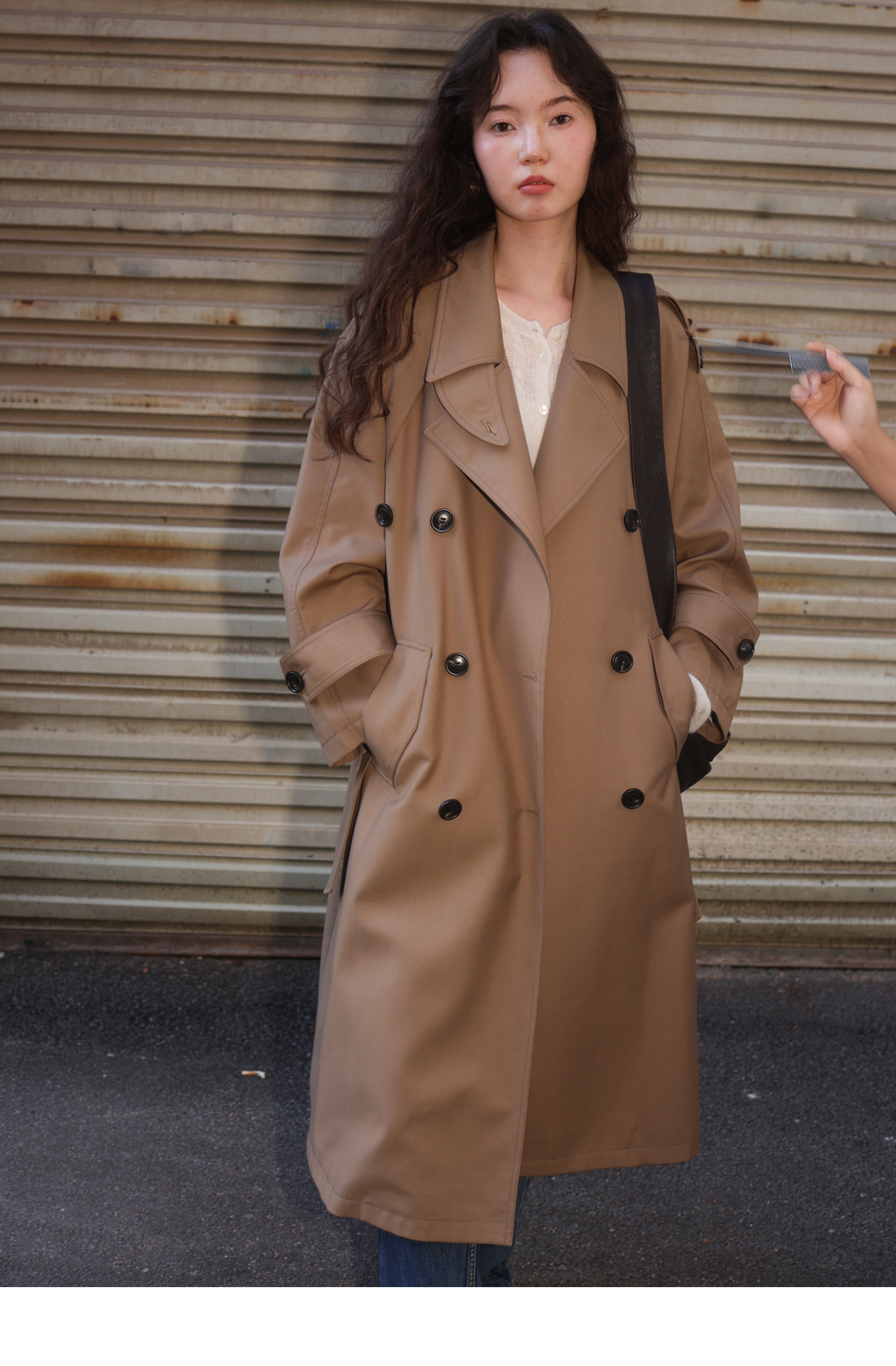 【8/6新品】素舶棉混纺廓形大翻领双排扣长款风衣
