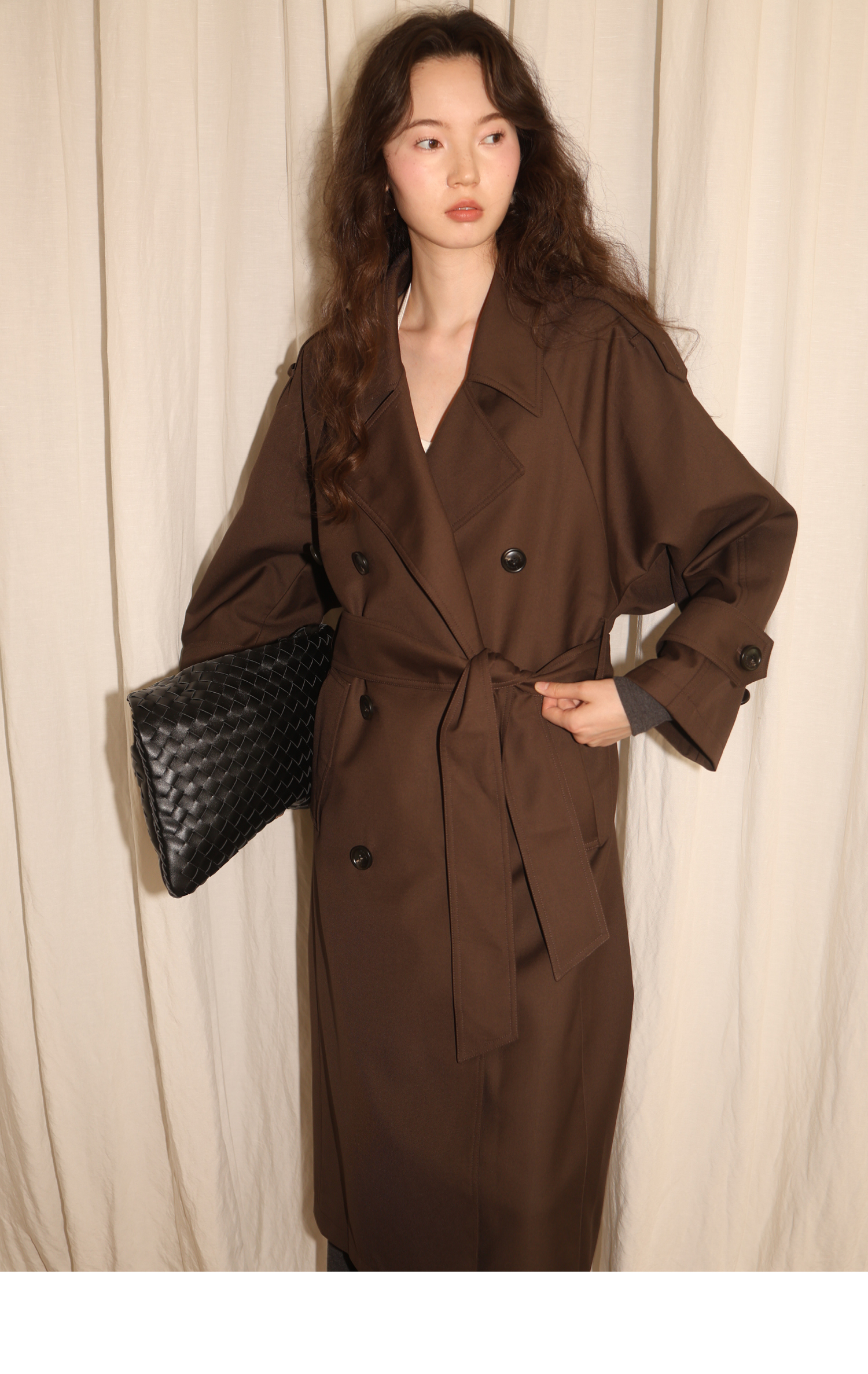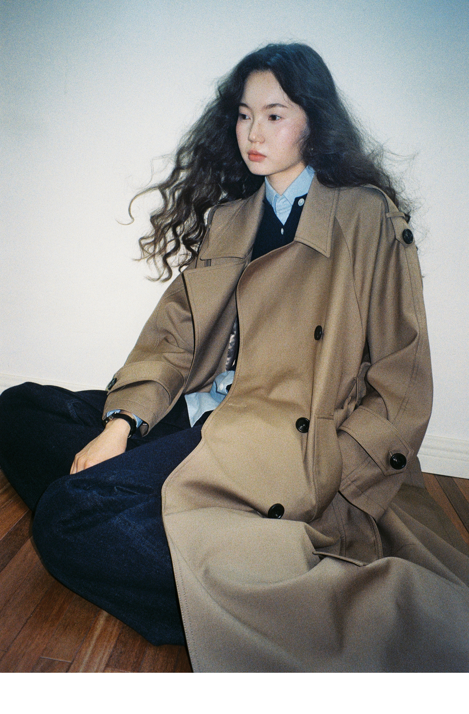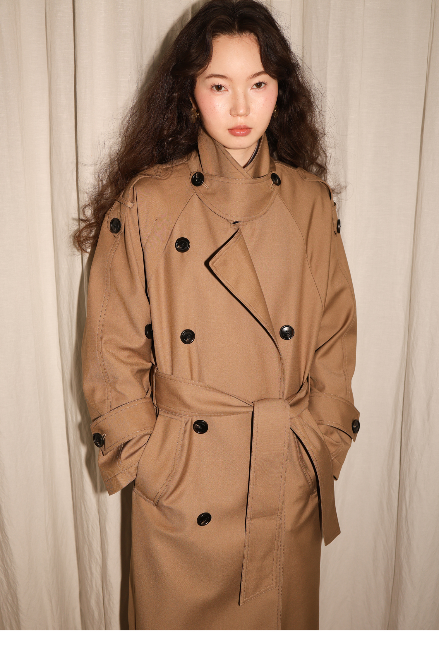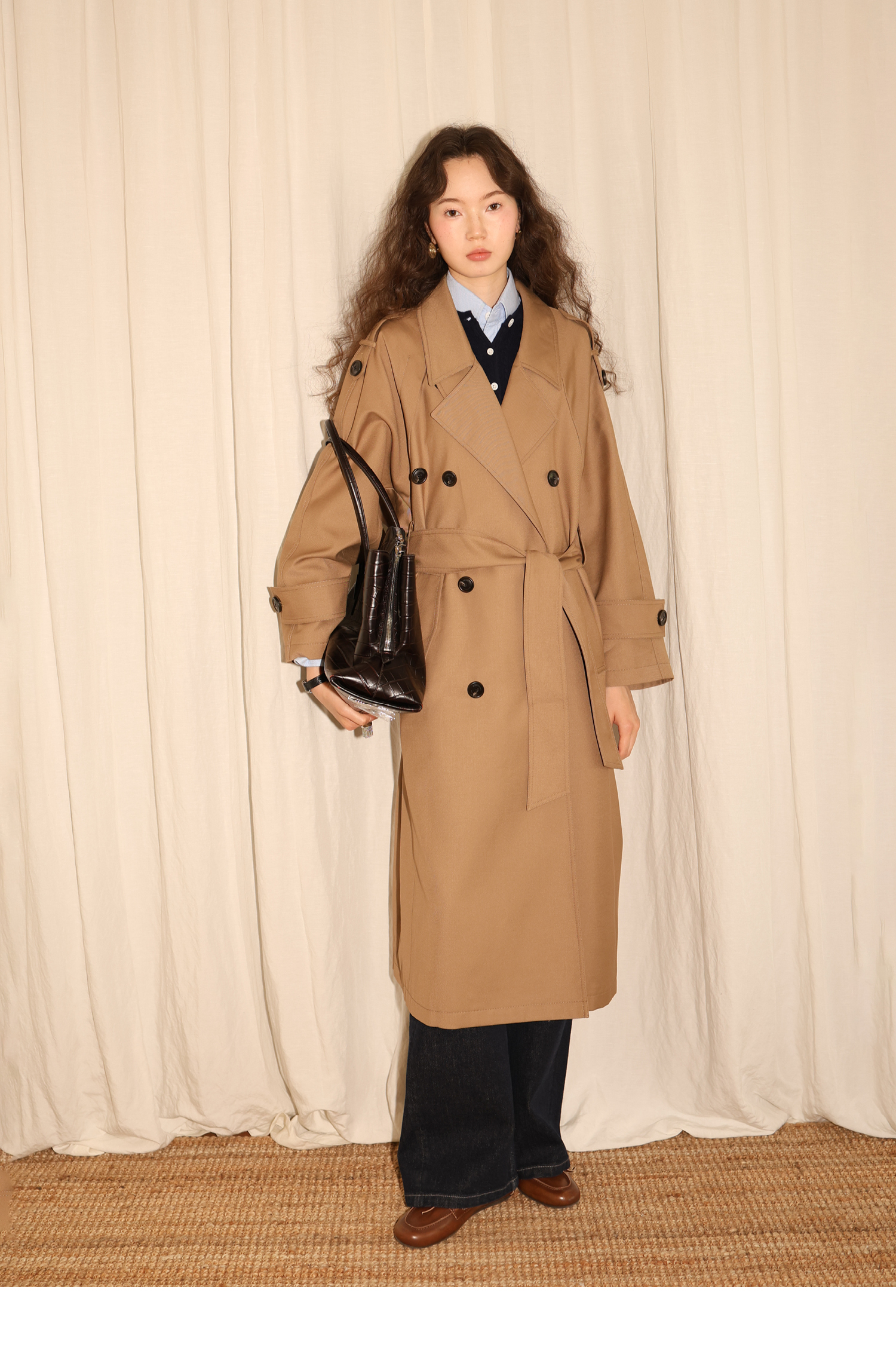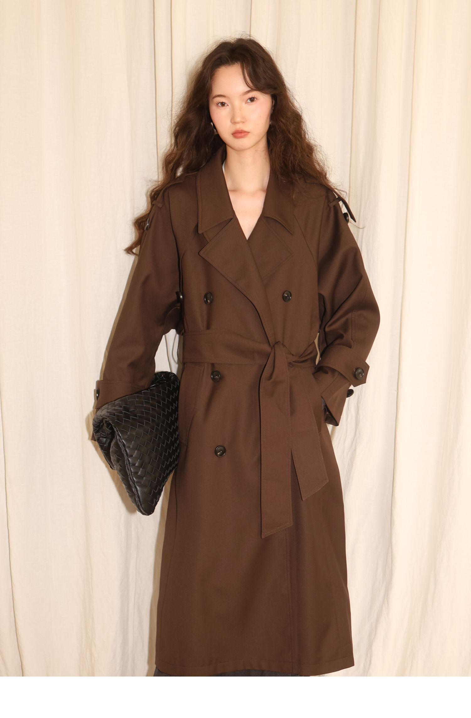 【8/6新品】素舶棉混纺廓形大翻领双排扣长款风衣