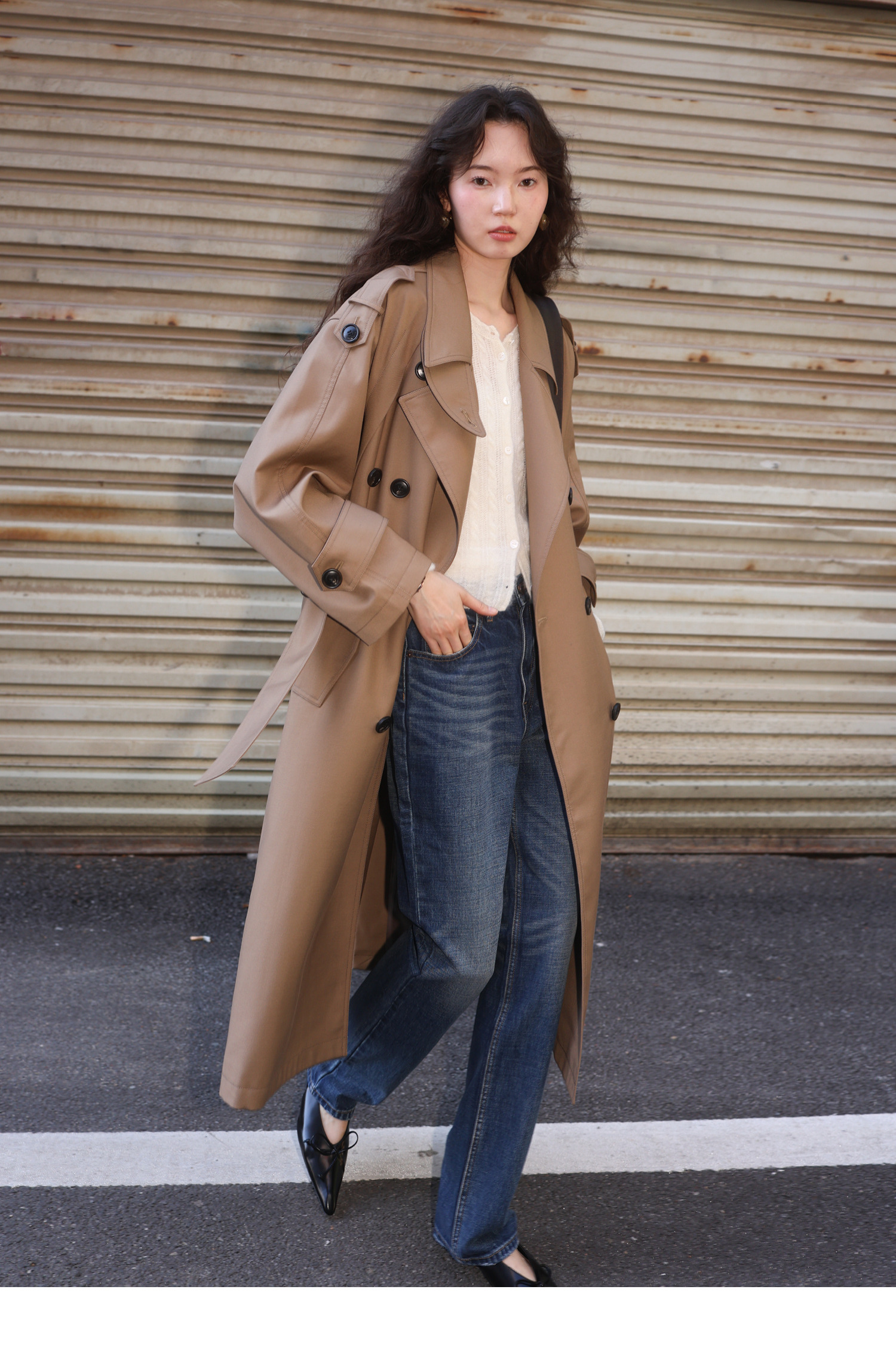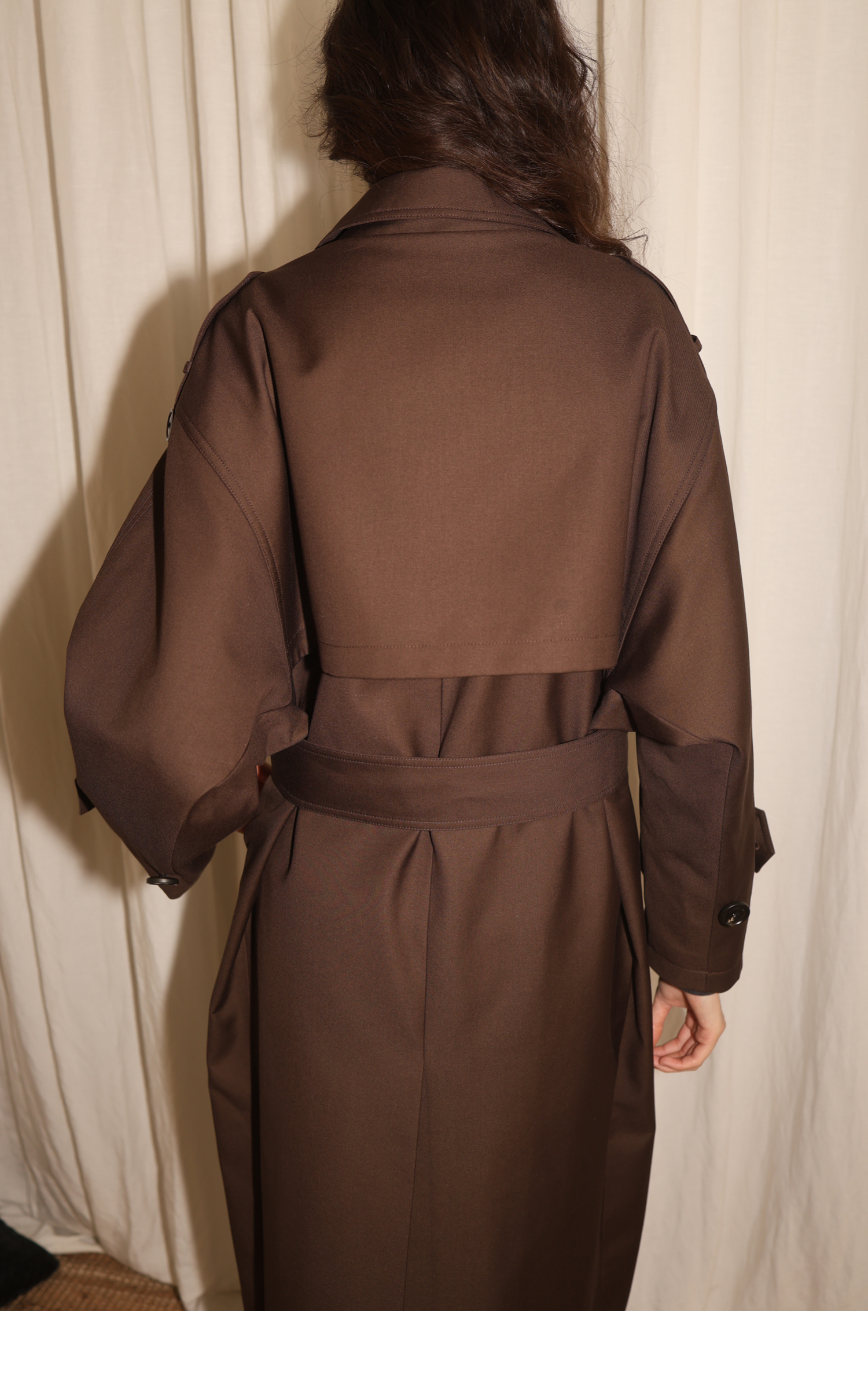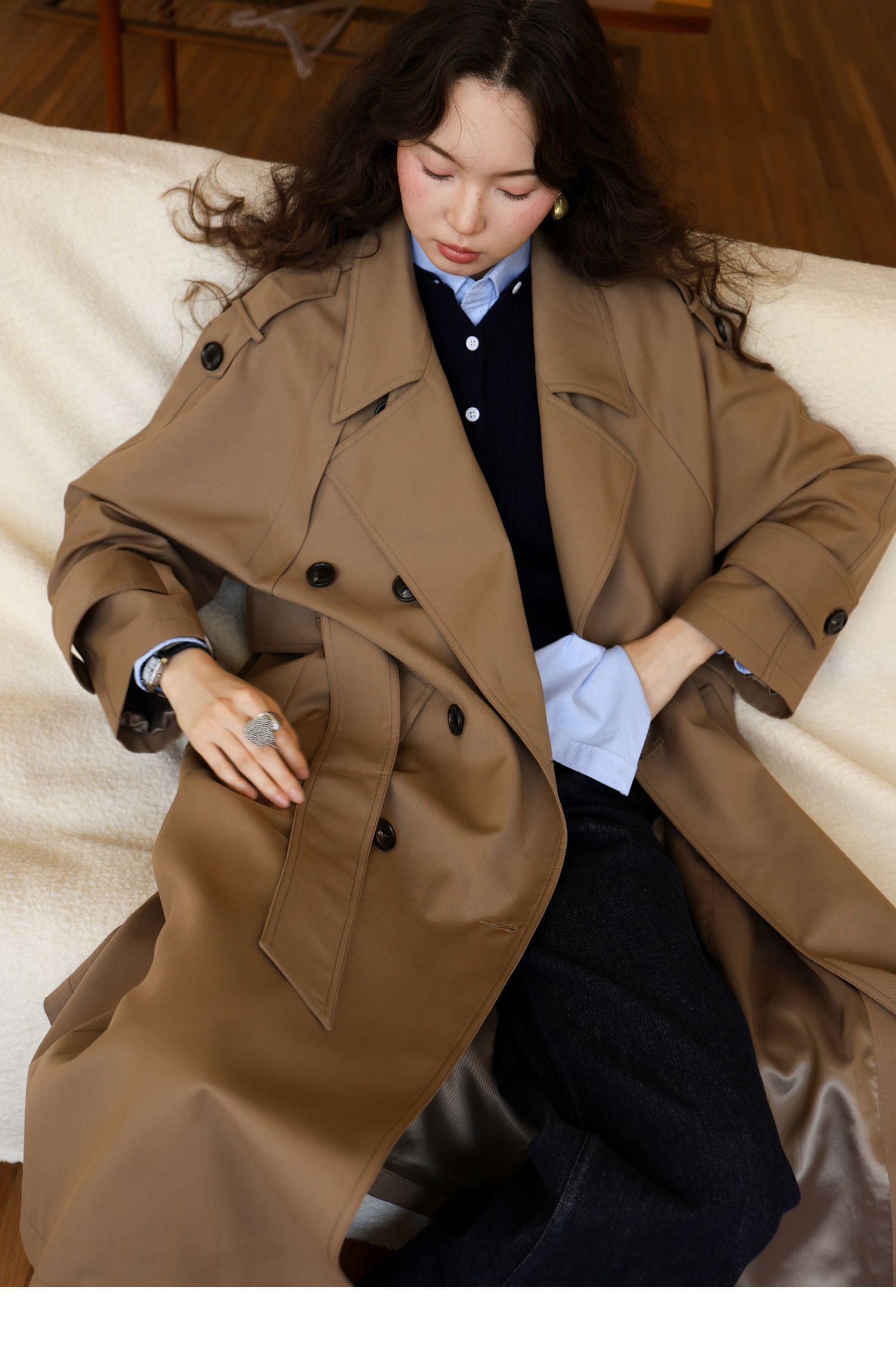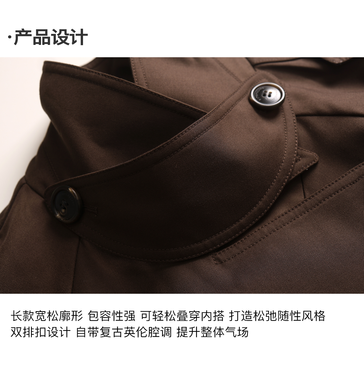 【8/6新品】素舶棉混纺廓形大翻领双排扣长款风衣
