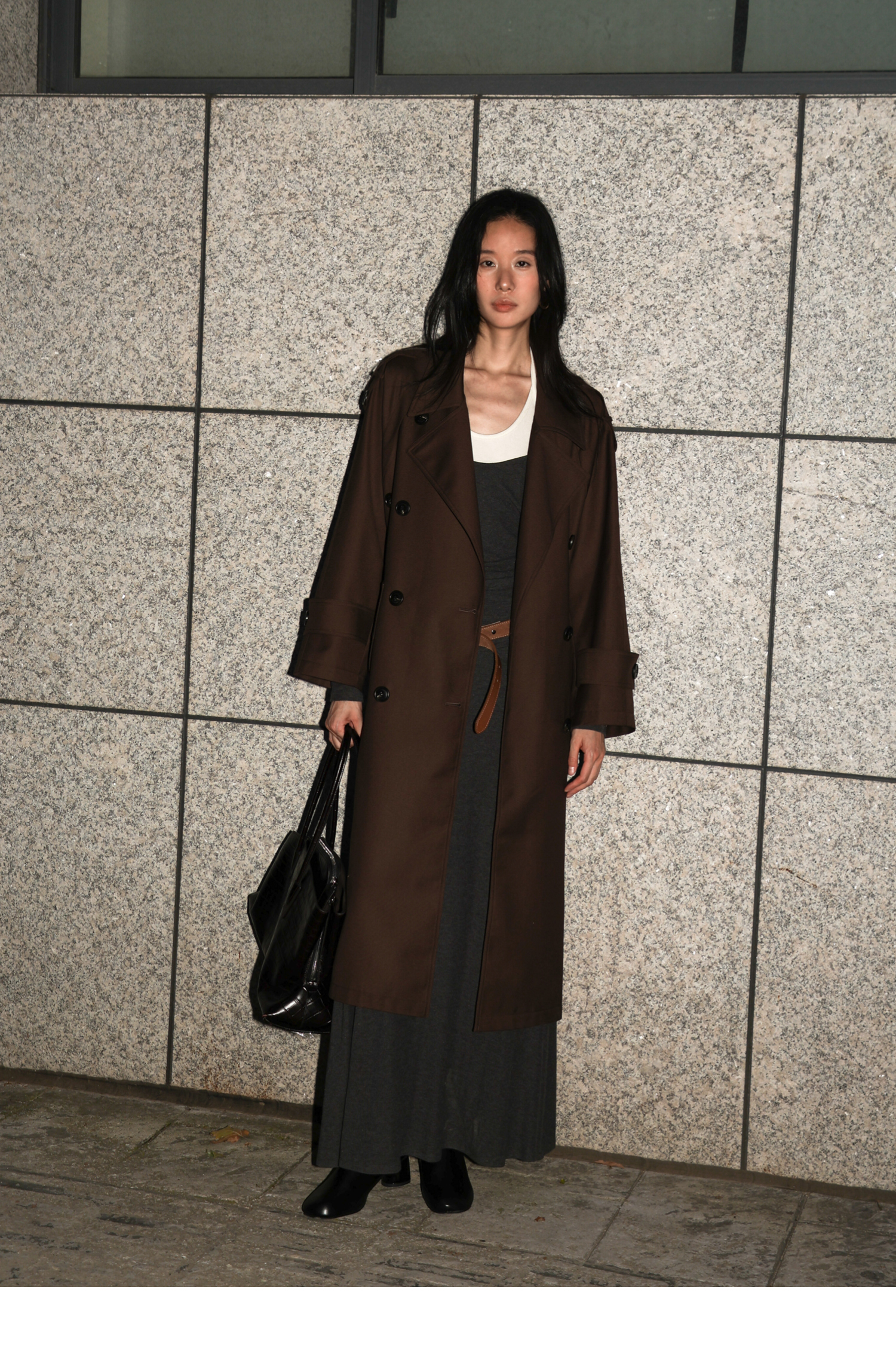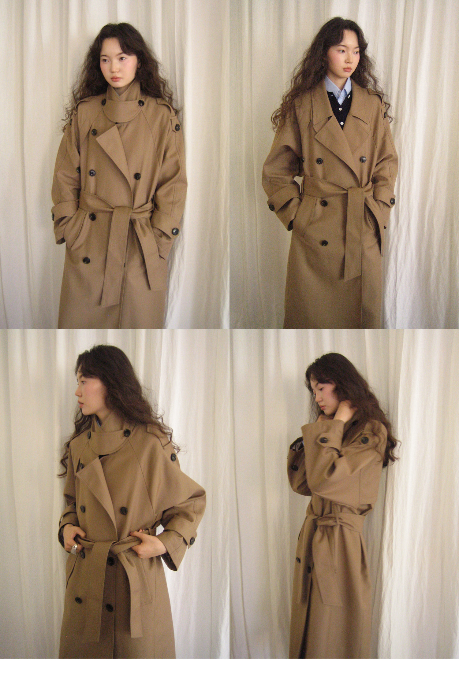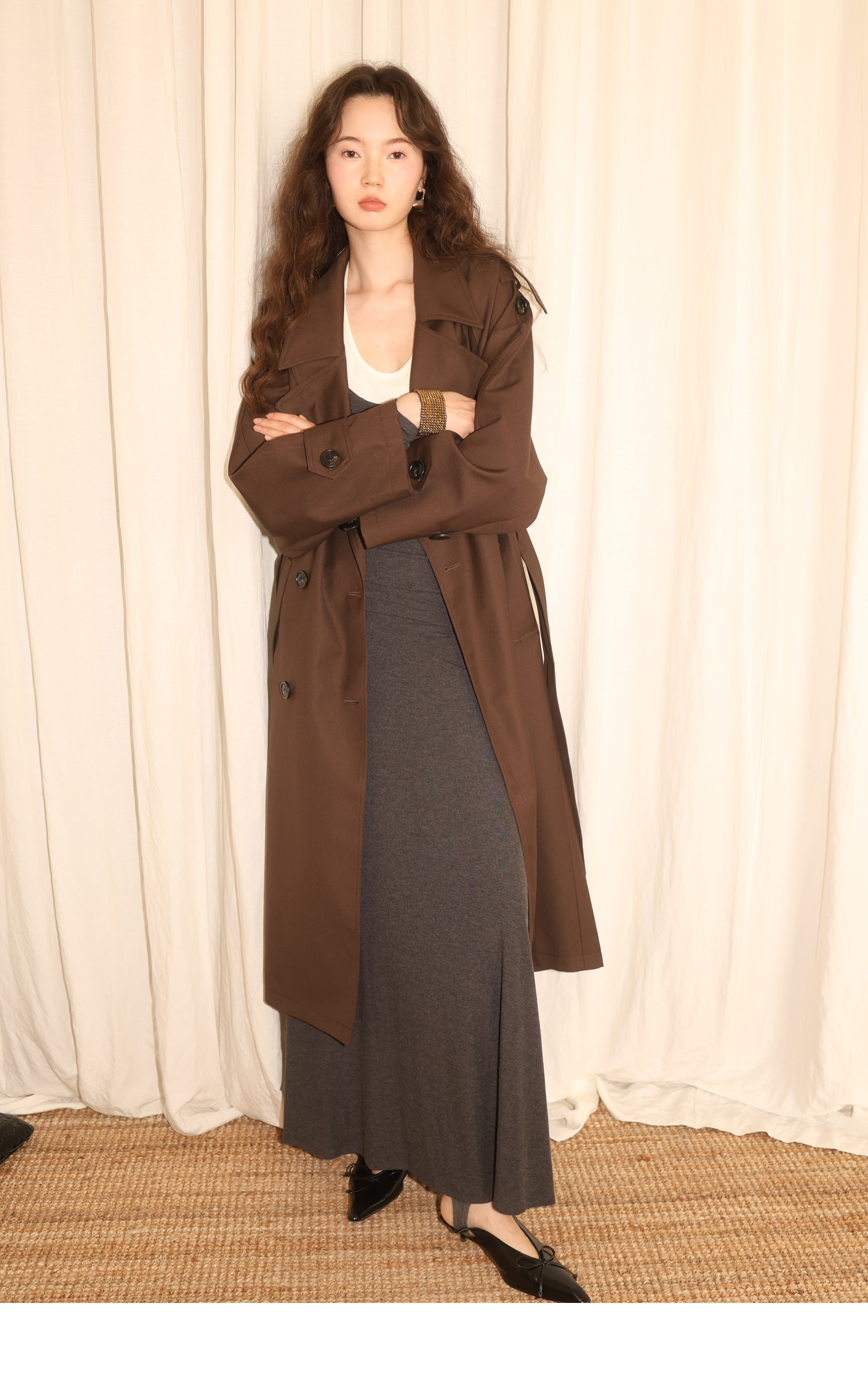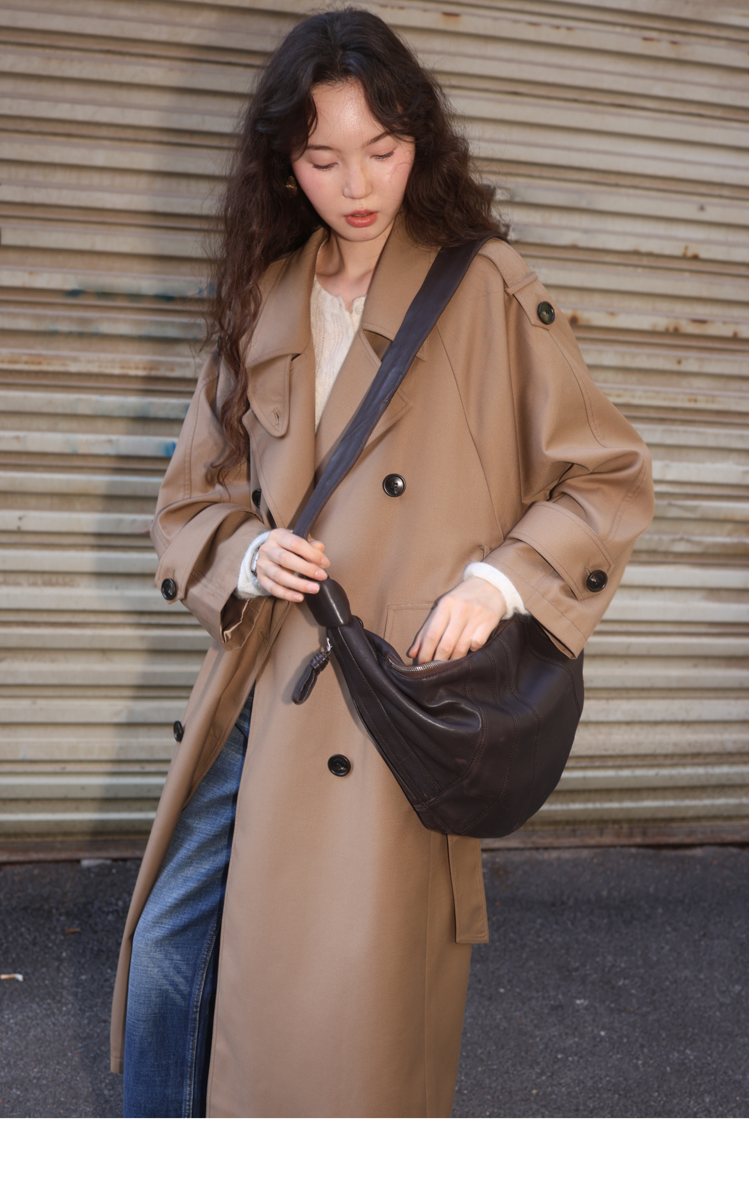 【8/6新品】素舶棉混纺廓形大翻领双排扣长款风衣