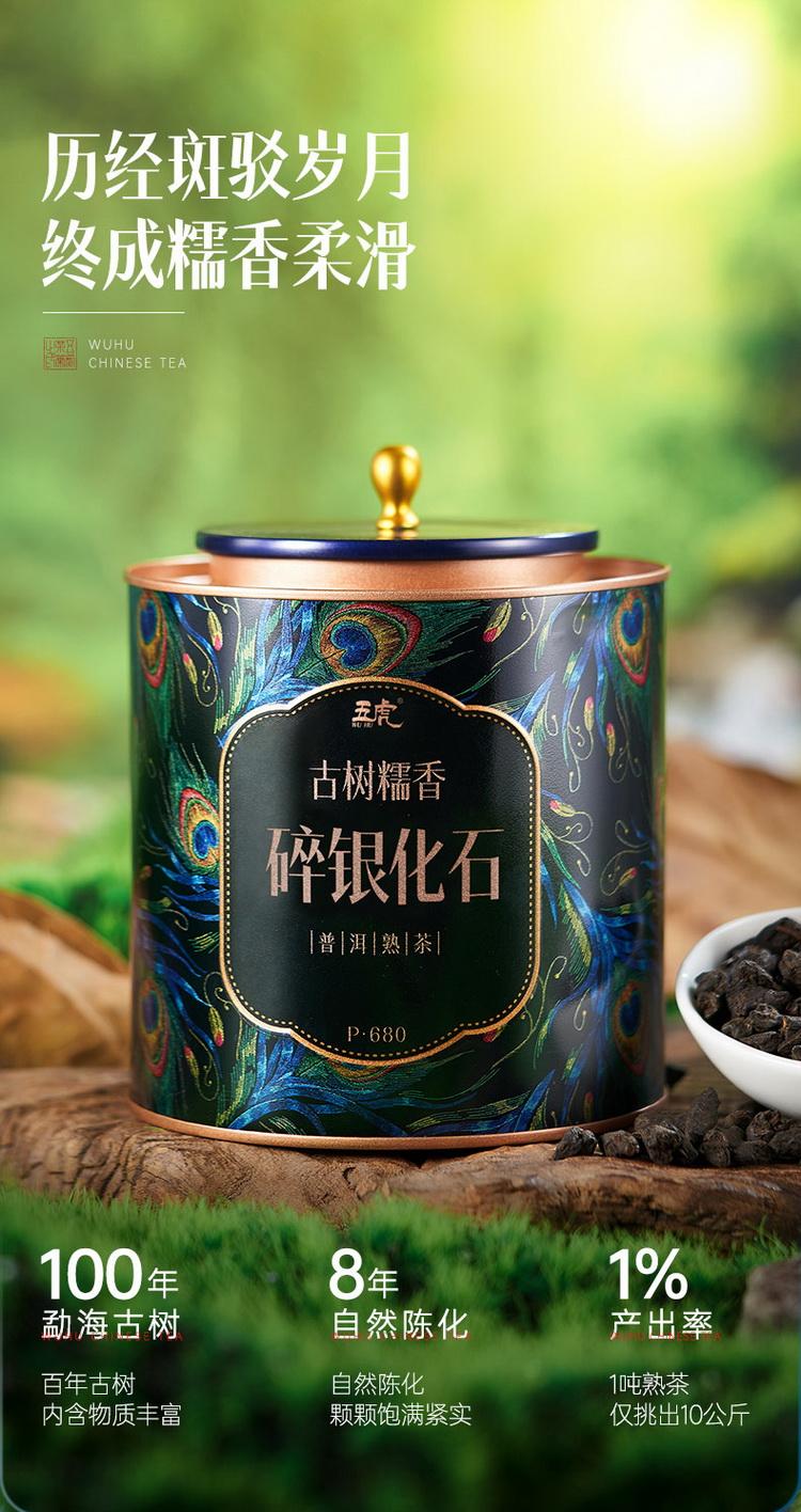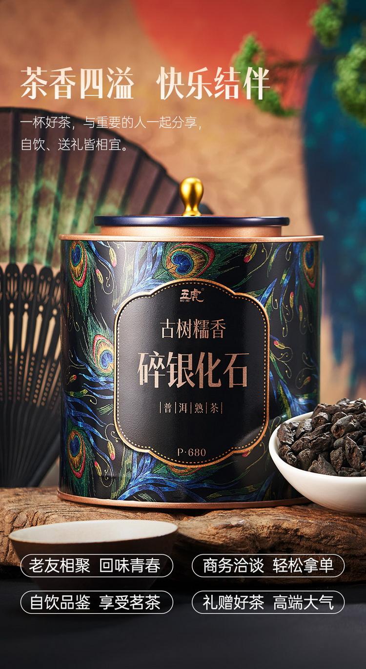 茶叶 碎银子 8年陈化普洱茶 糯米香 普洱 熟茶 茶饮 五虎 250g(买1送1共500g,配手提袋)