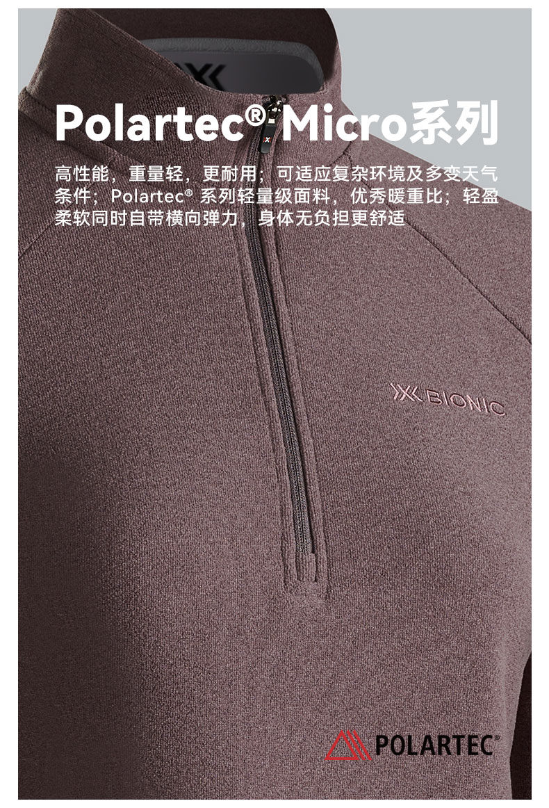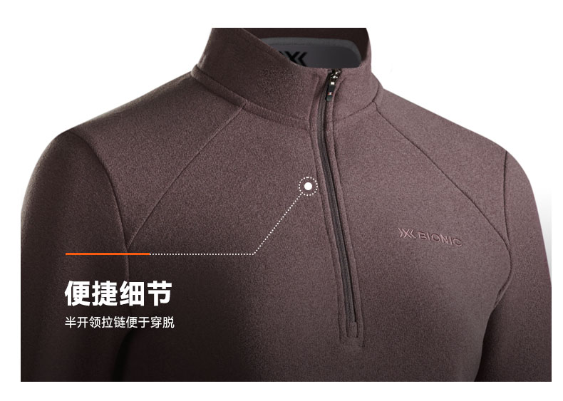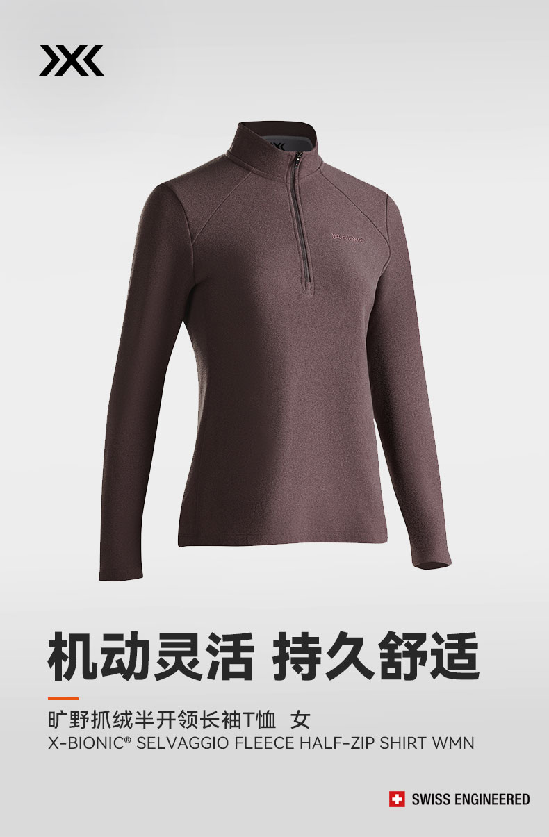 X-BIONIC旷野抓绒半开领长袖T恤女 秋冬双面细绒保暖轻量中间层24726