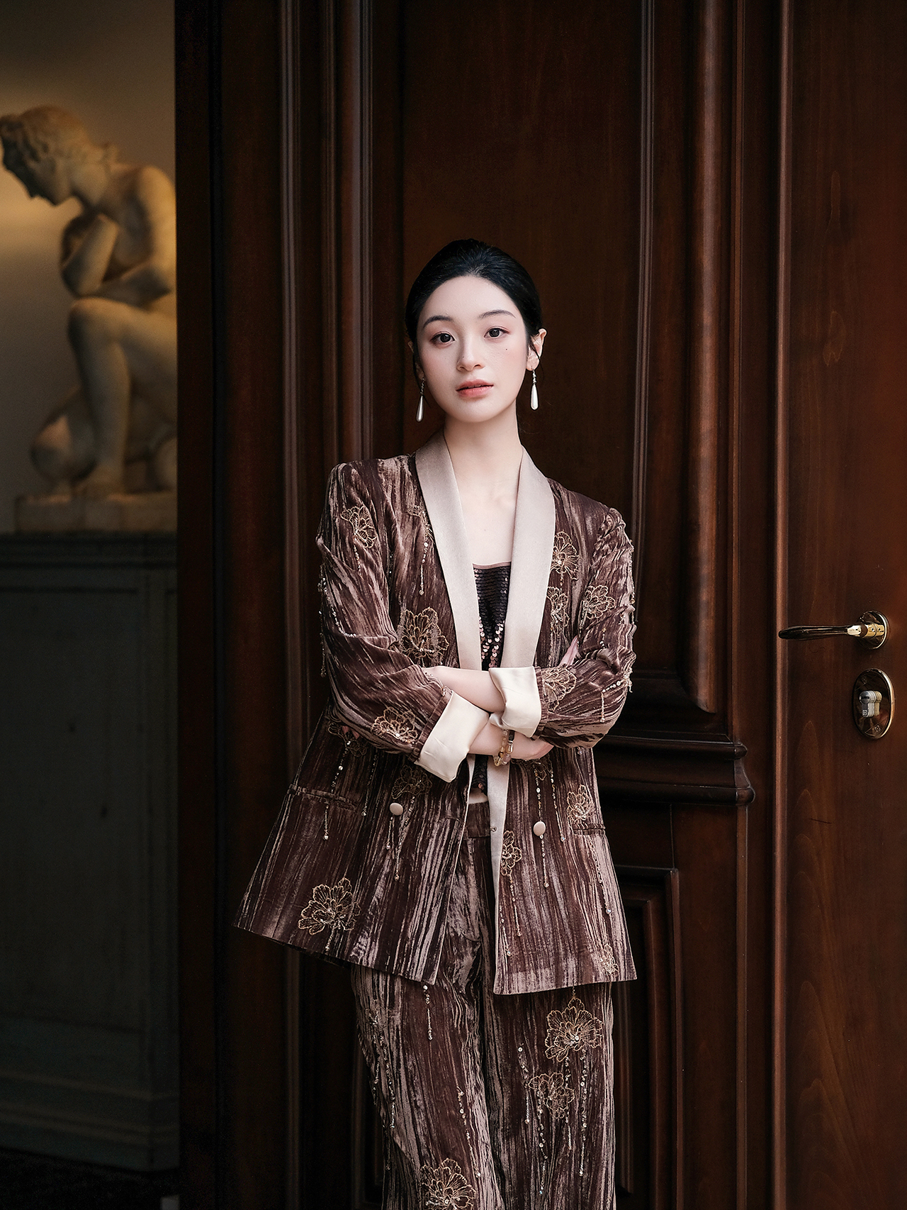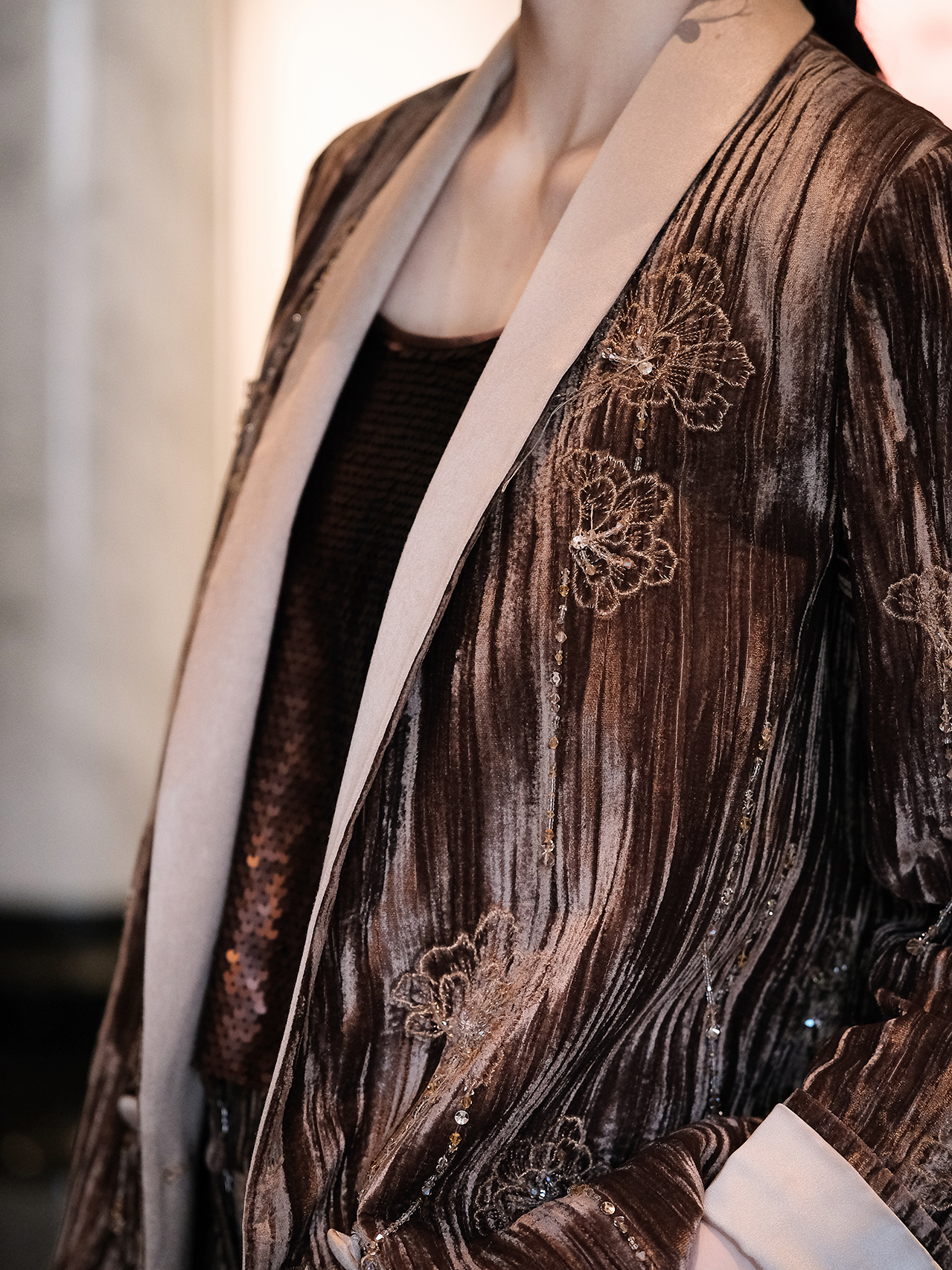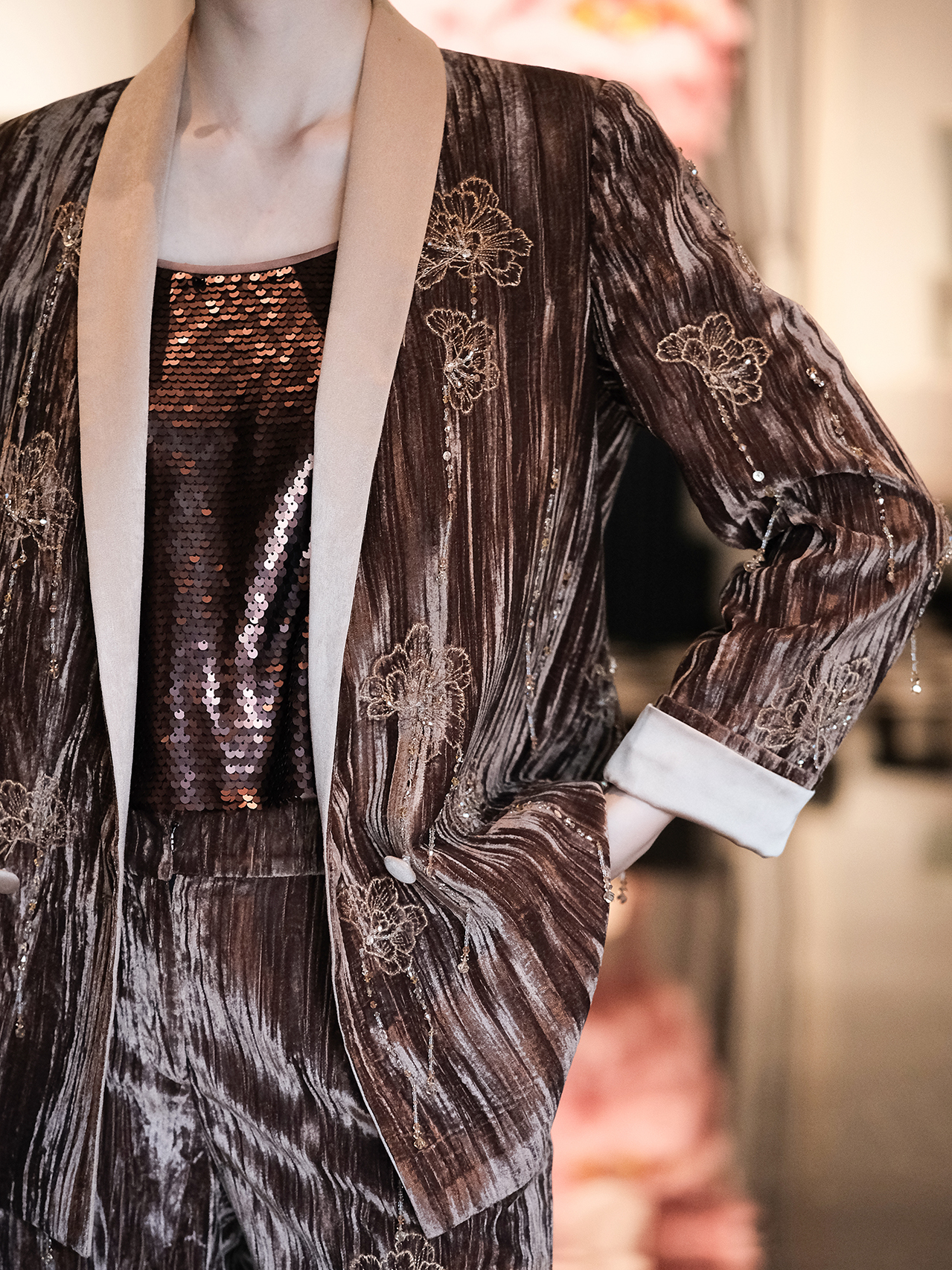 东方境X郭培 | 重工流苏芙蓉花刺绣丝绒西服上衣