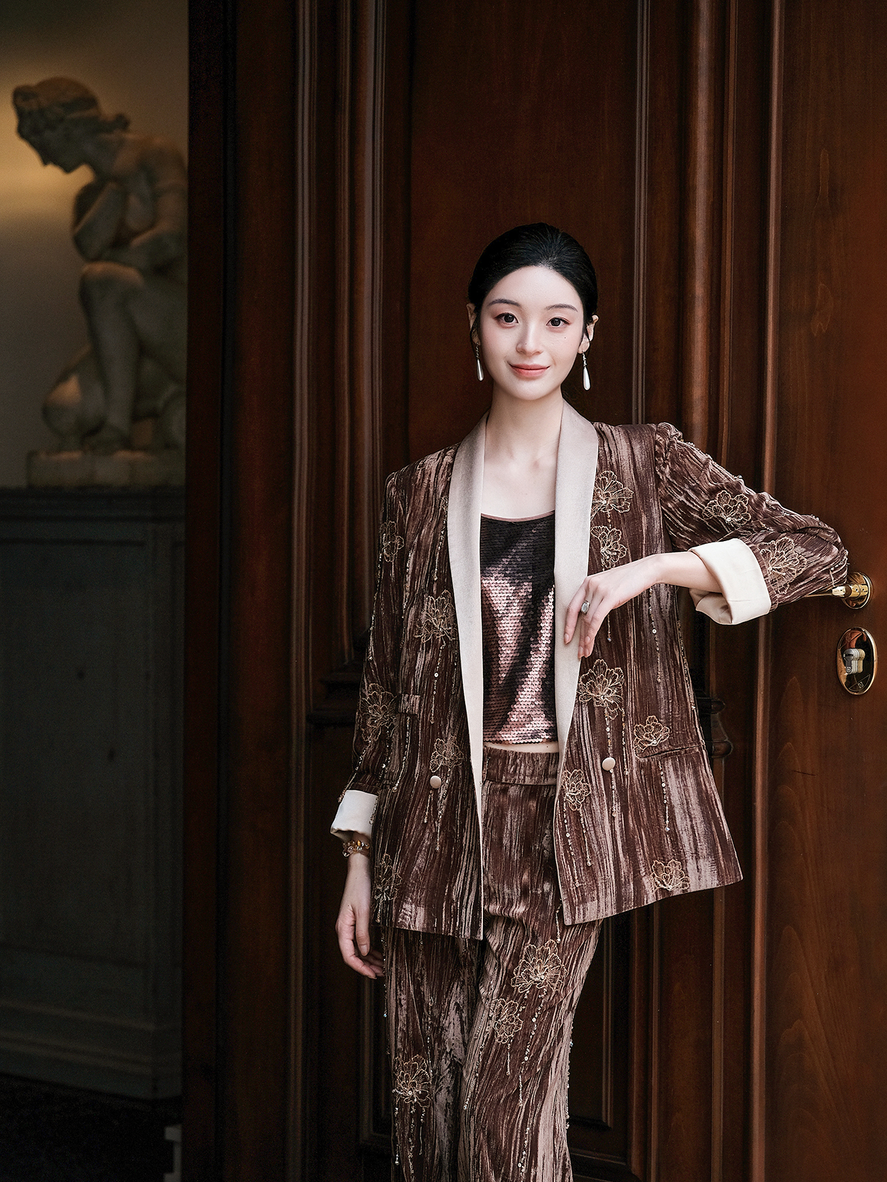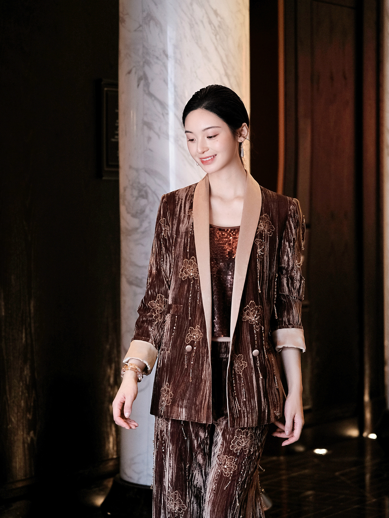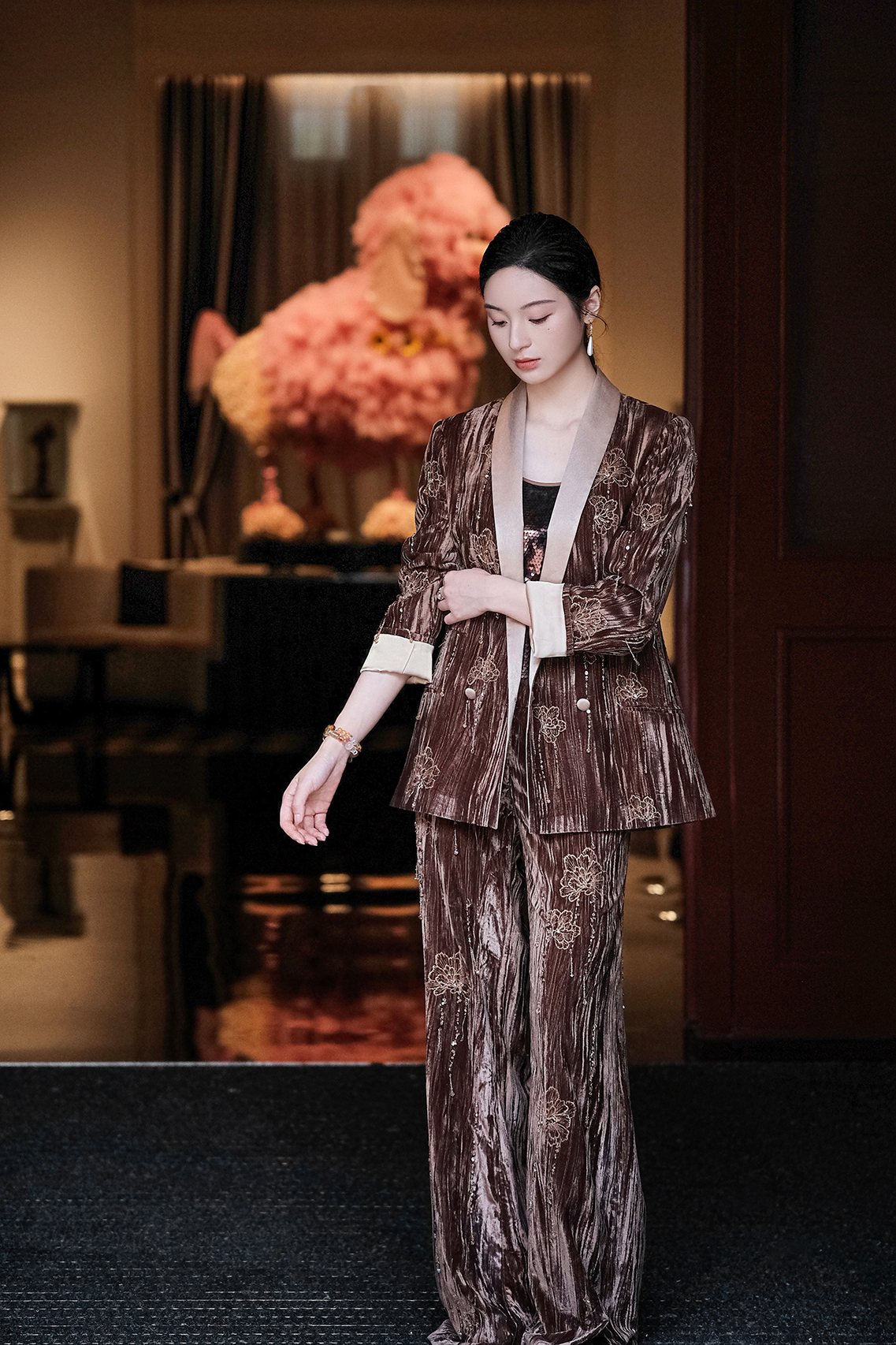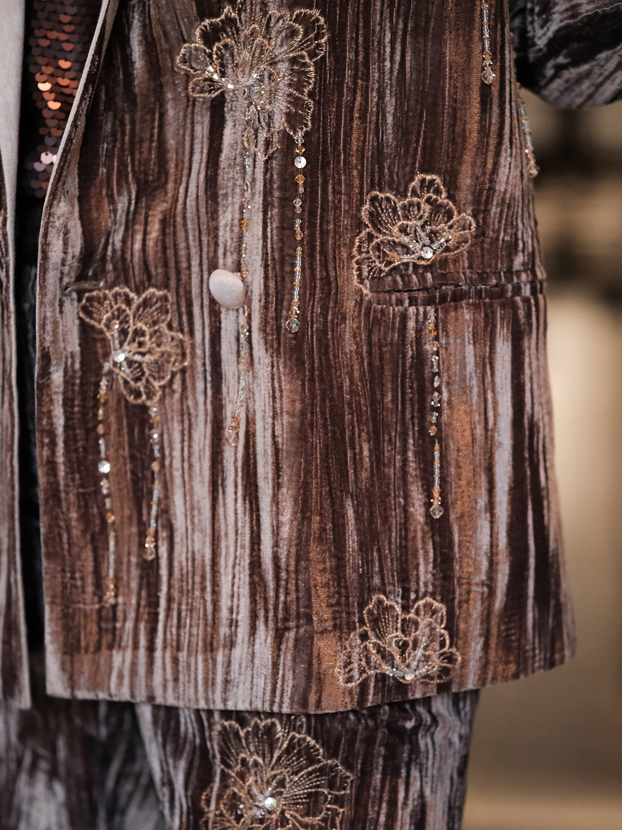 东方境X郭培 | 重工流苏芙蓉花刺绣丝绒西服上衣