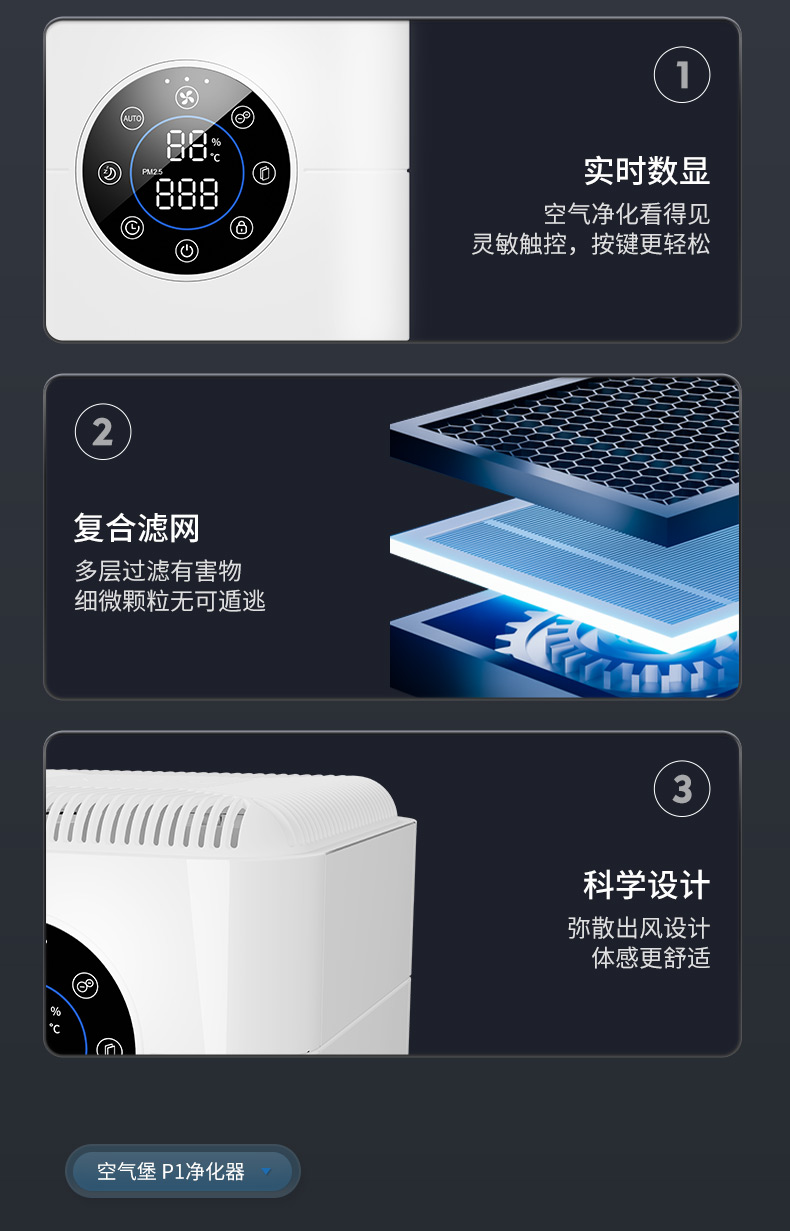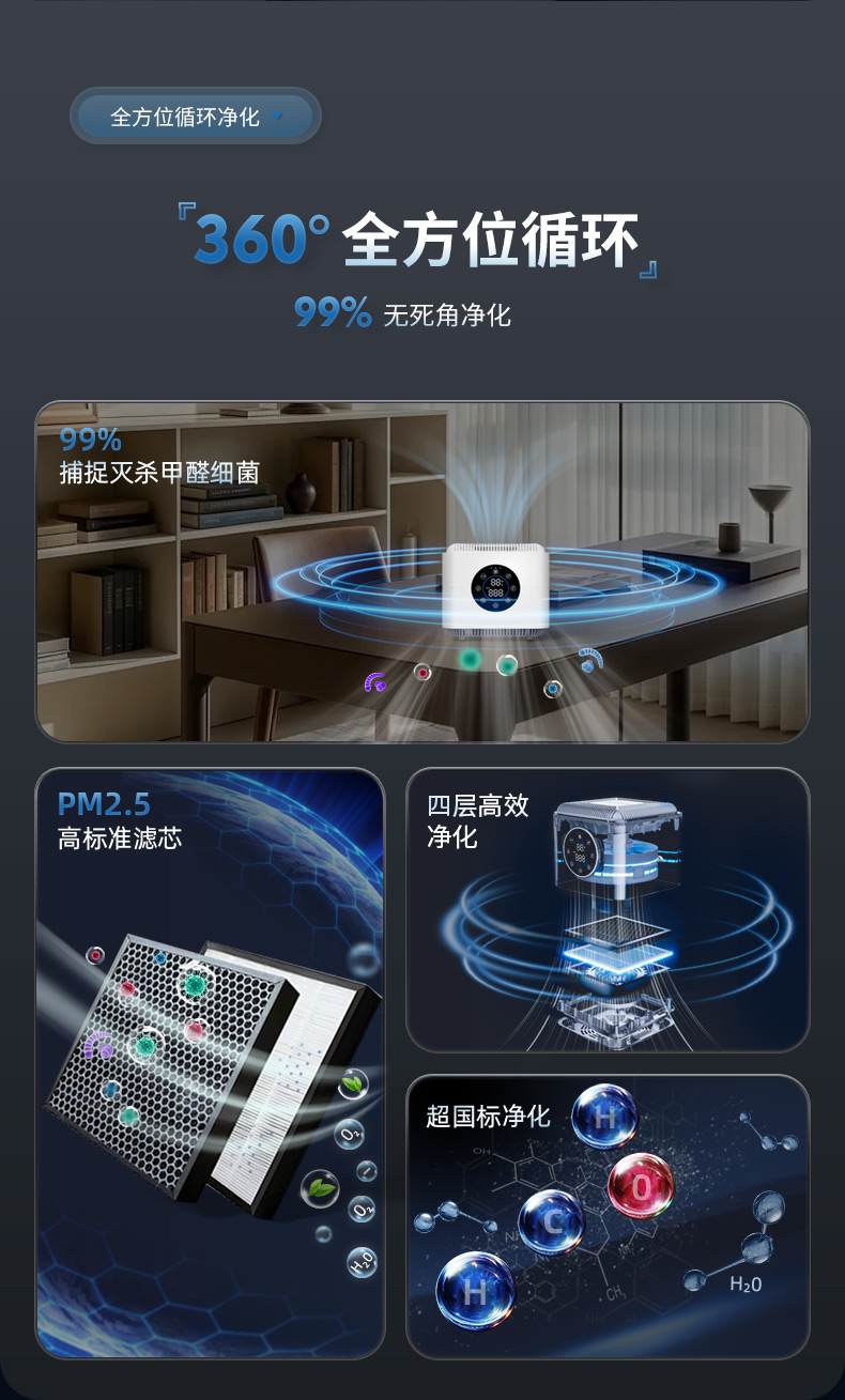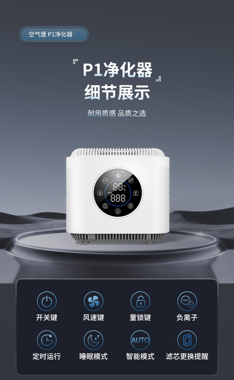 空气堡(AIRBURG)空气净化器除甲醛桌面负离子家用办公室除烟味