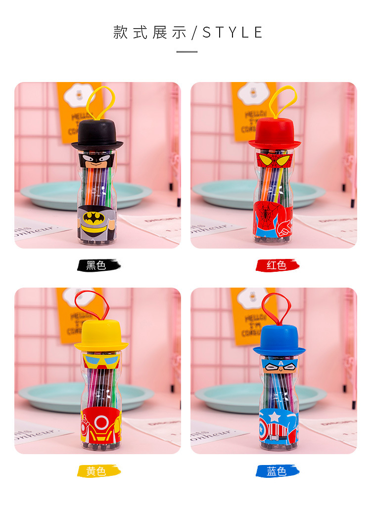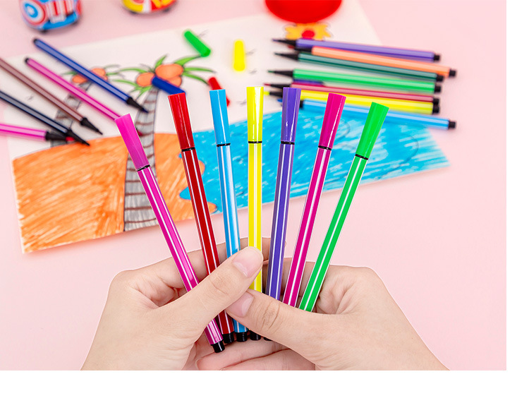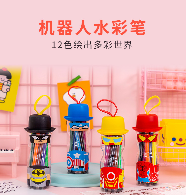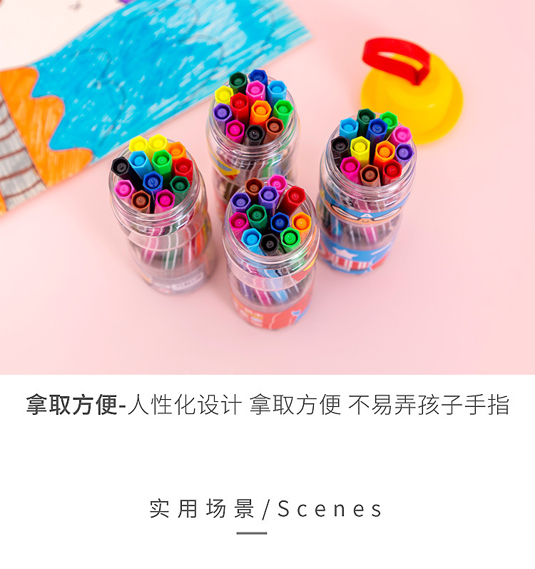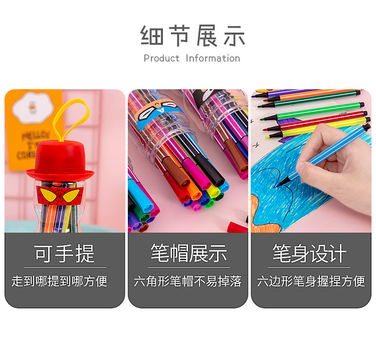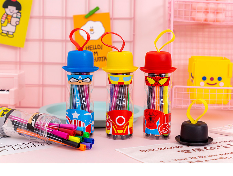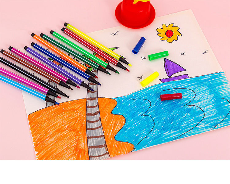【儿童文具】水彩笔套装12色儿童彩色笔可水洗绘画笔桶装
