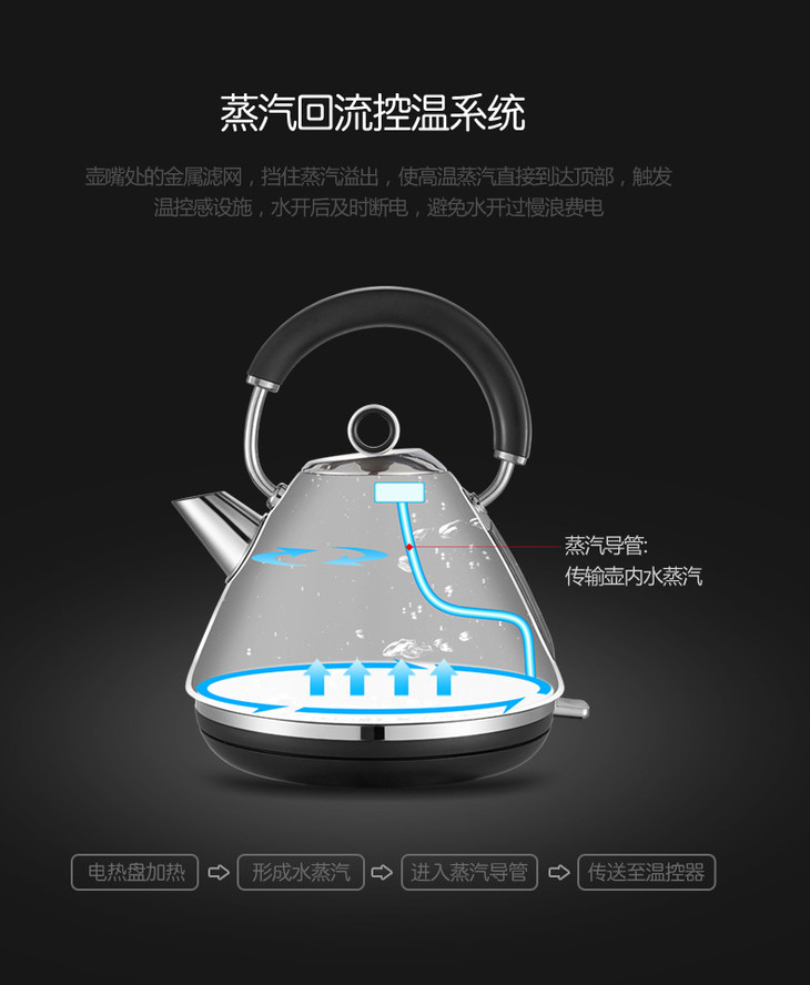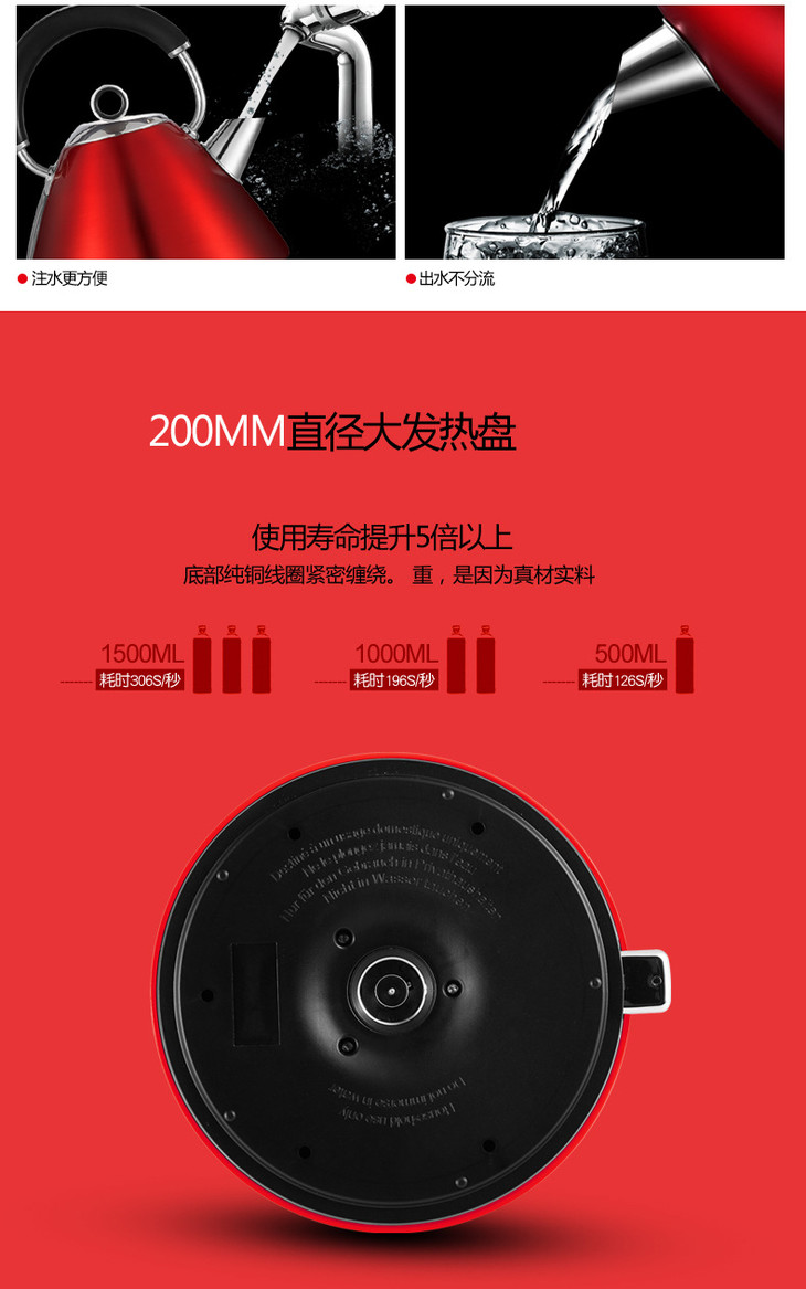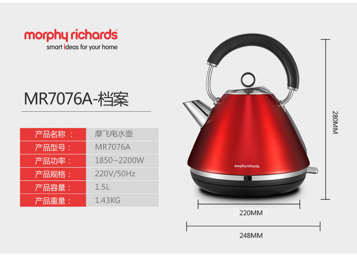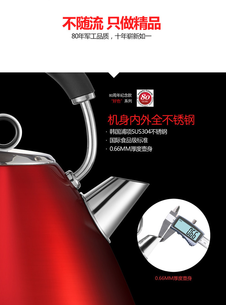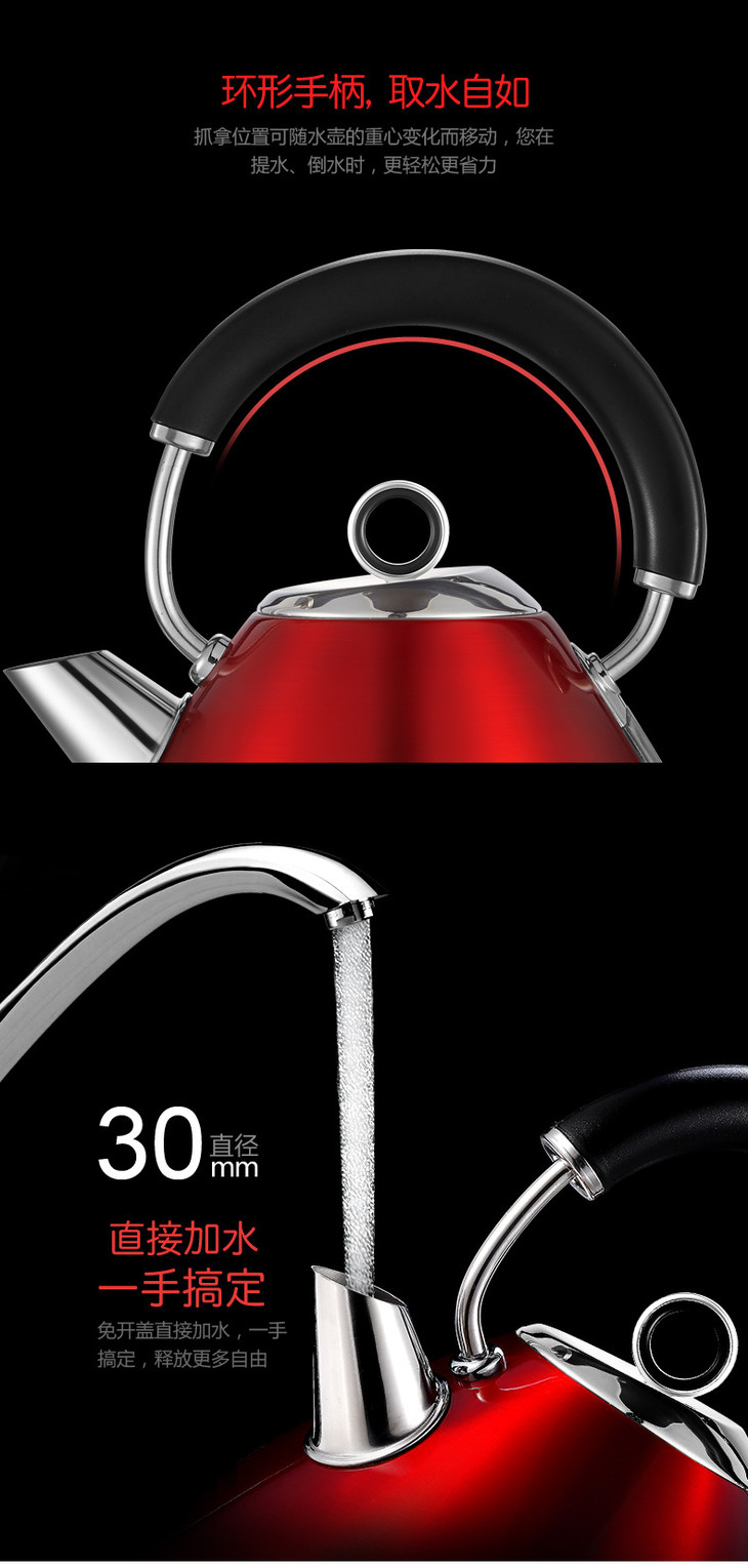 *RICHARDS/摩飞电器 MR7076A 摩飞不锈钢烧水壶刻度abs底座