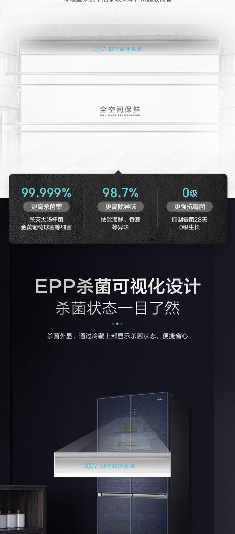 海尔(Haier)600升十字对开门冰箱双变频全空间保鲜 双干湿分储三重杀菌母婴空间 线下同款BCD-600WSGKU1