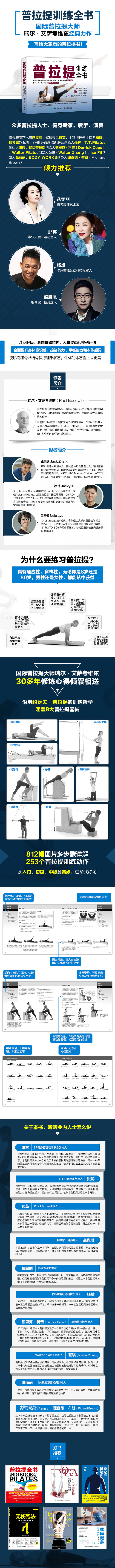 《普拉提训练全书》由在世界普拉提领域享有盛誉的普拉提大师瑞尔·艾萨考维兹创作。本书凝聚了瑞尔30多年的普拉提教学经验,既有普拉提训练的基础理论,包括呼吸、运动解剖学及生理、人体姿态和身体排列等,又有从入门、初级、中级到高 级的253个练习动作和3套训练计划,涵盖8大常见的普拉提器械,适合任何水平的普拉提练习者和教练阅读。