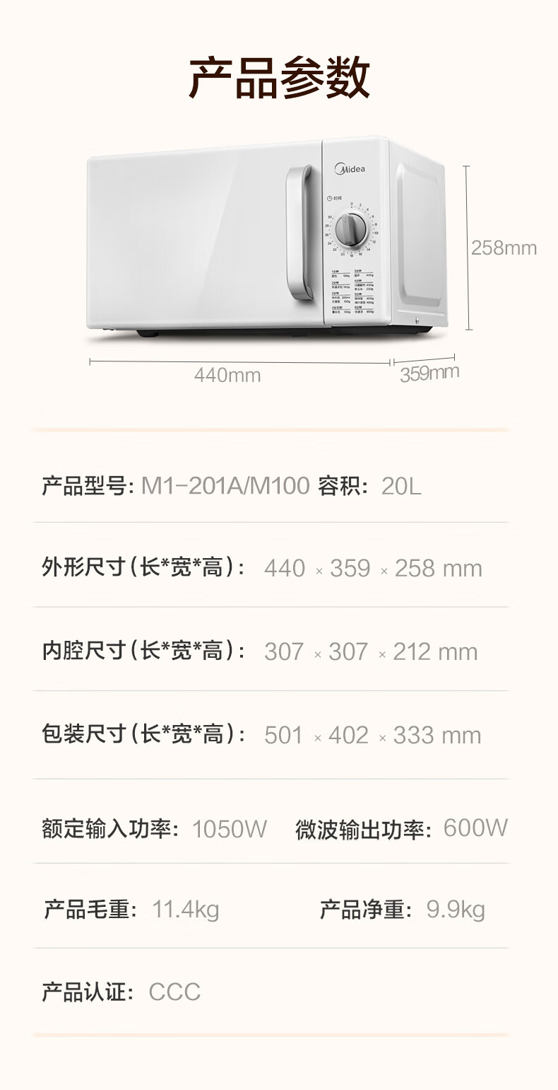 美的(Midea)微波炉家用转盘式快捷加热M100/20L【CZ】