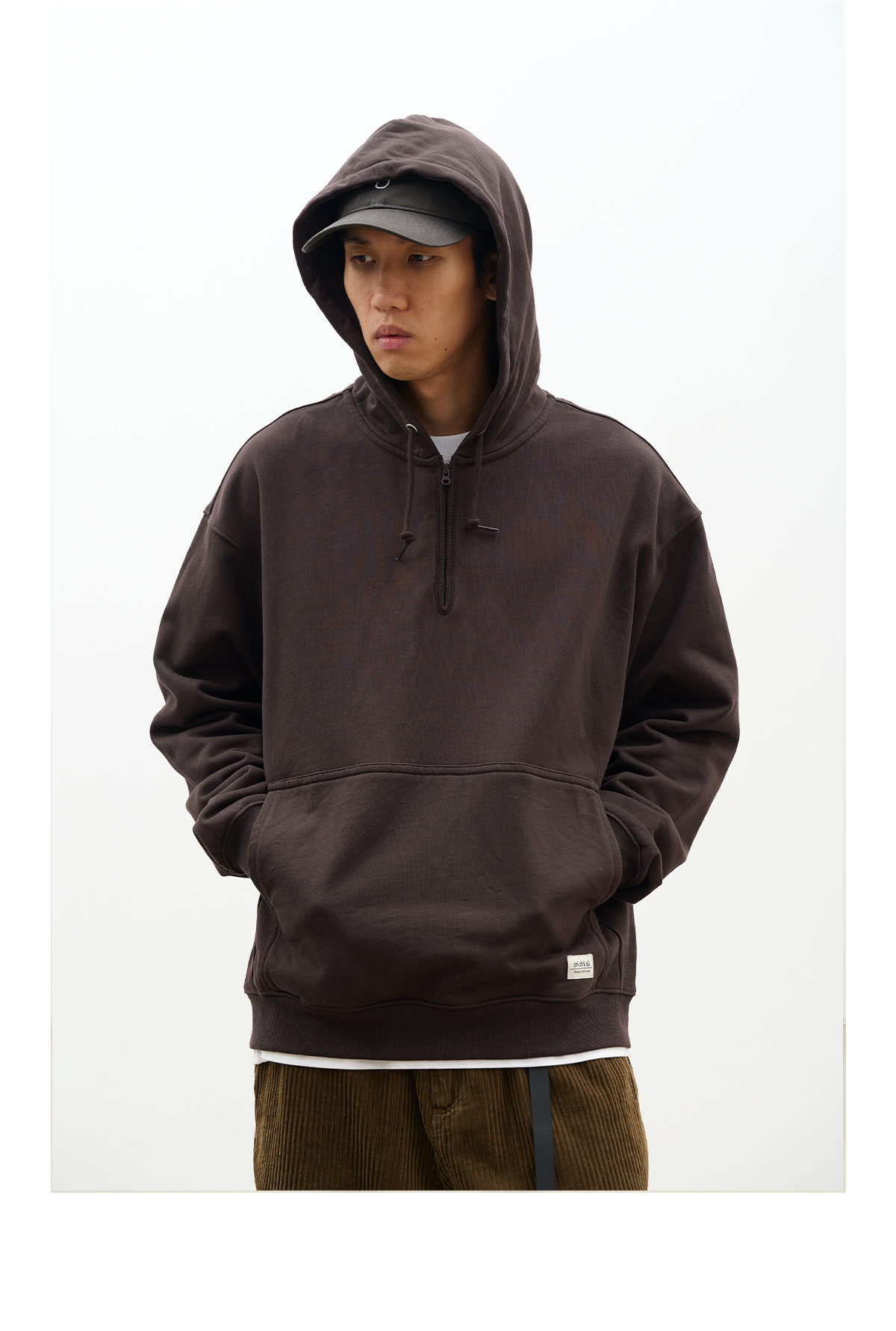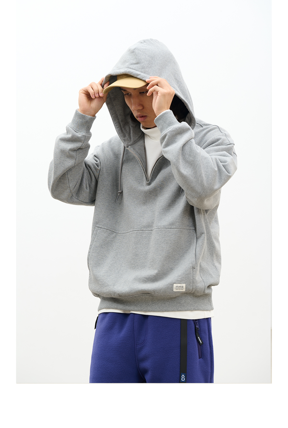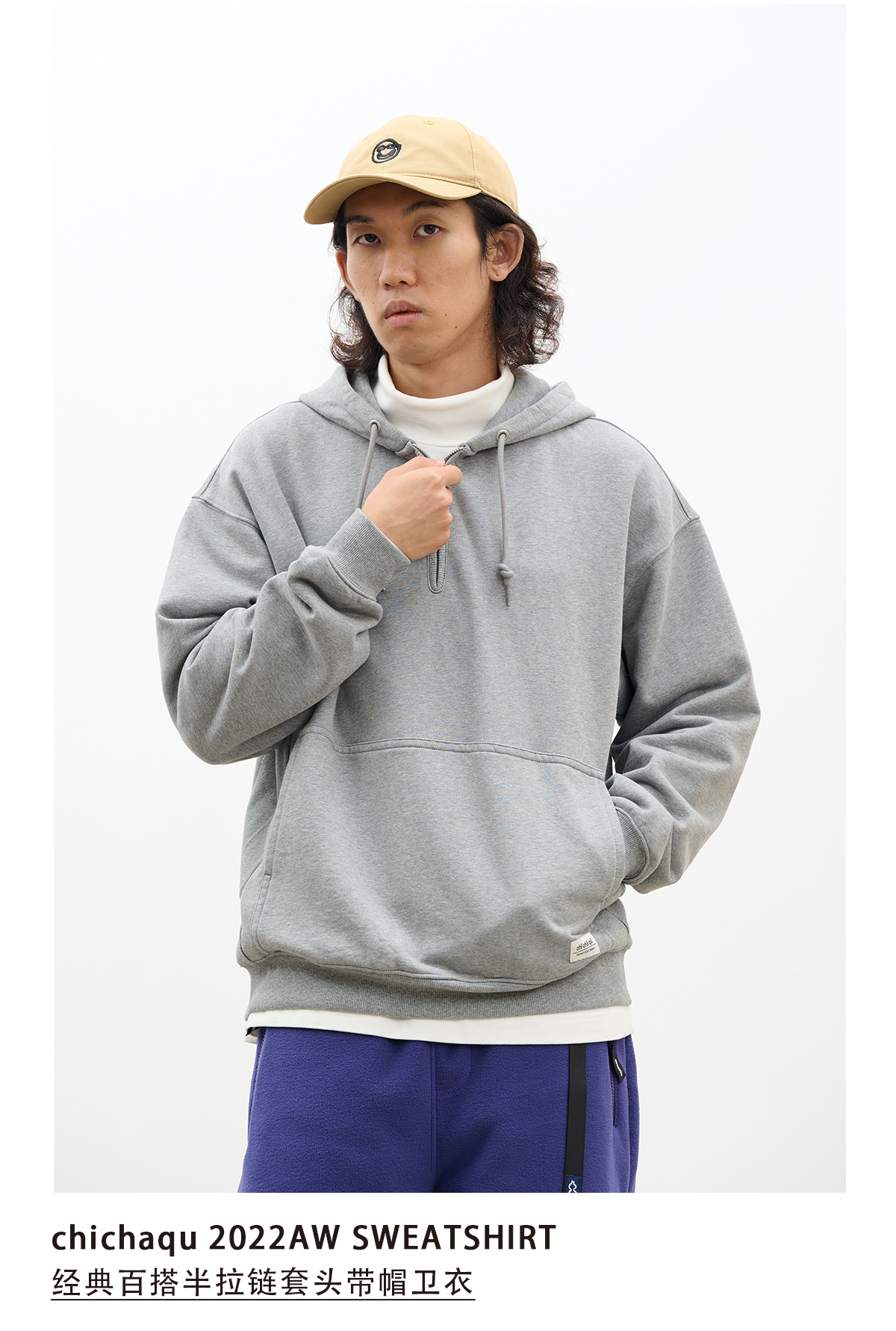 吃茶去chichaqu百搭经典半拉链套头带帽卫衣
