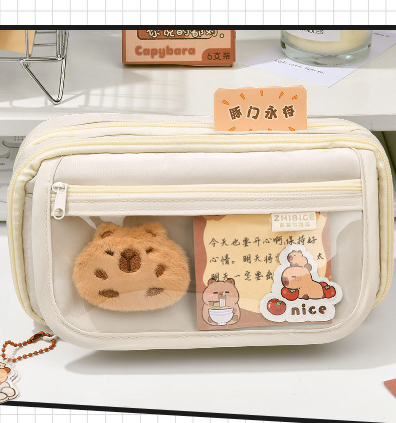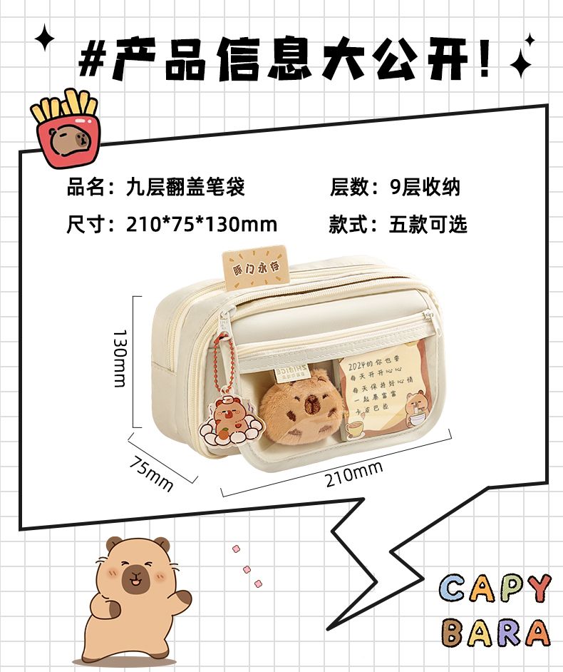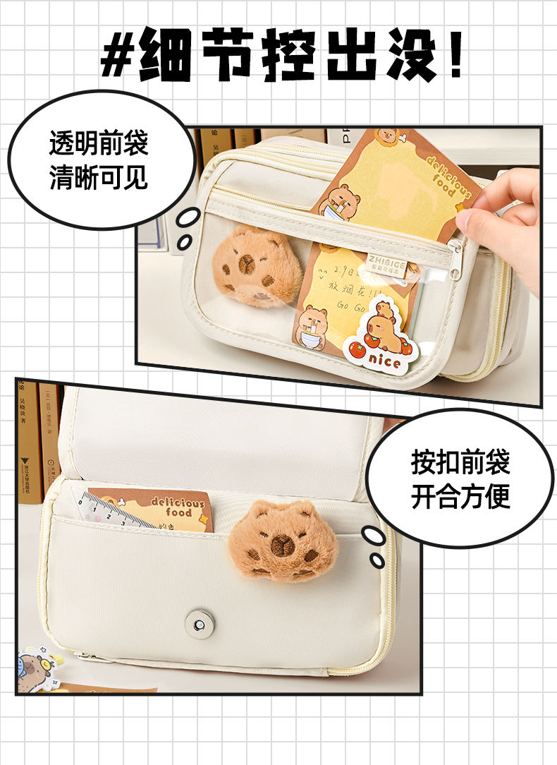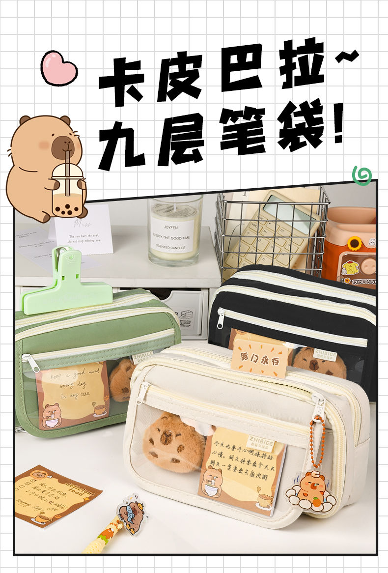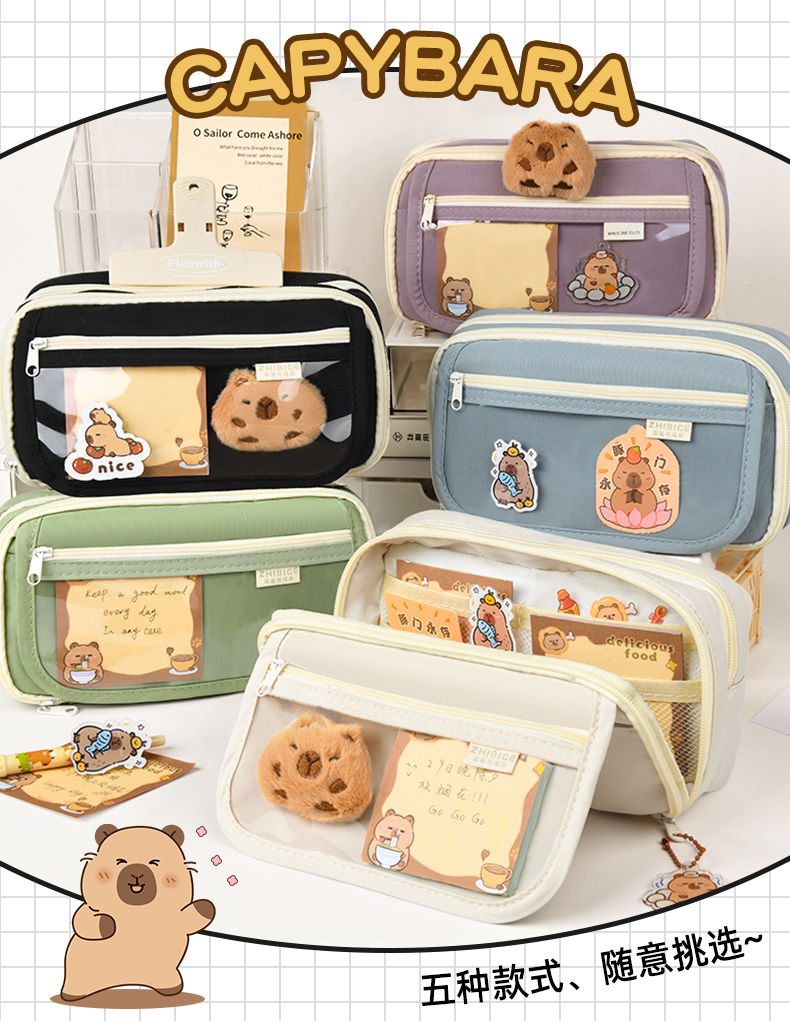 卡皮巴拉笔袋女小学生文具盒初中女孩大容量高颜值铅笔袋
