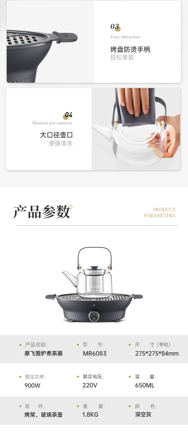 摩飞围炉煮茶器MR6083灰色