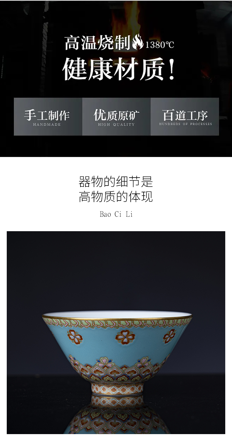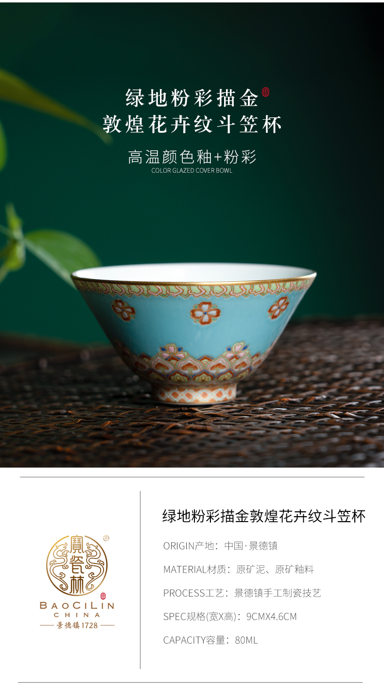 绿地粉彩描金敦煌花卉纹斗笠杯