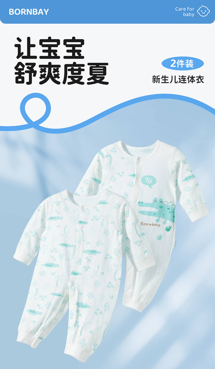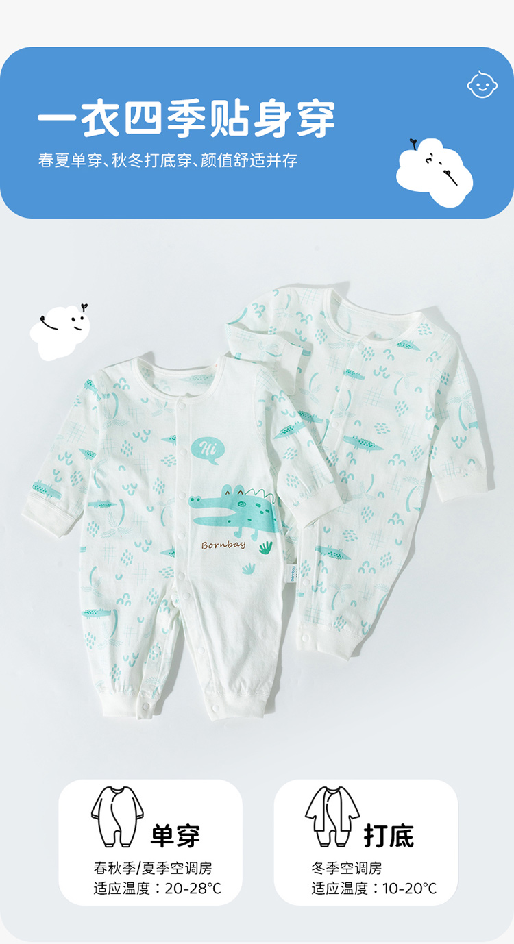 ZB1EL001贝贝怡男女宝宝连体衣春装新生儿纯棉服婴儿哈衣两件装