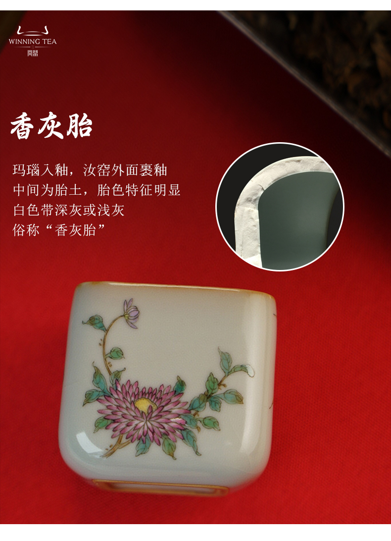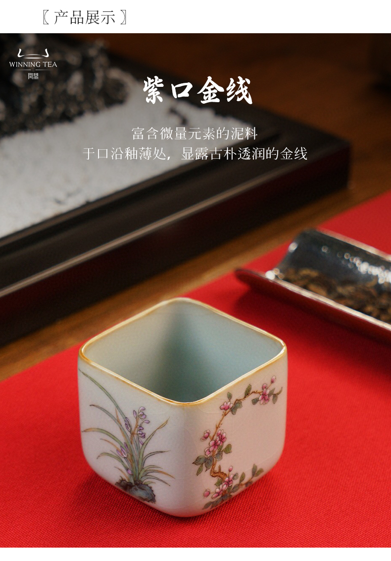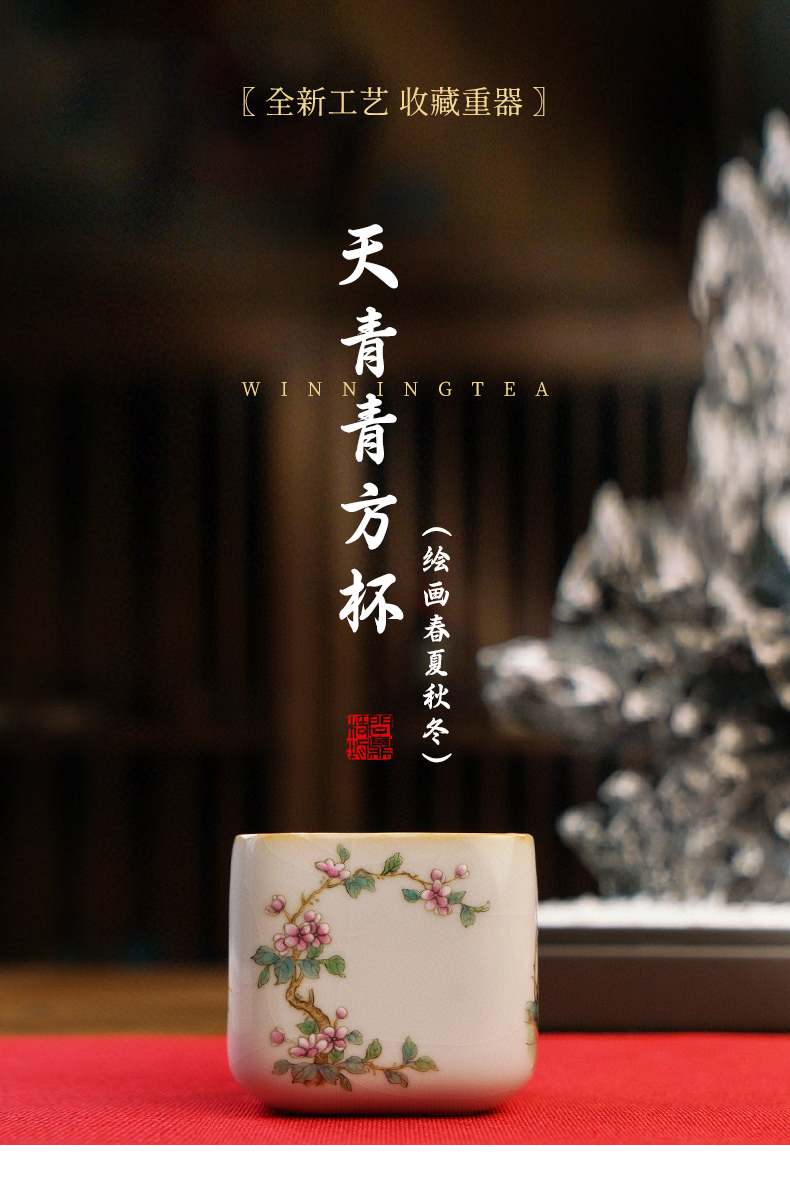 问鼎汝瓷鼎峰系列天青青方杯(春夏秋冬)(缺货)