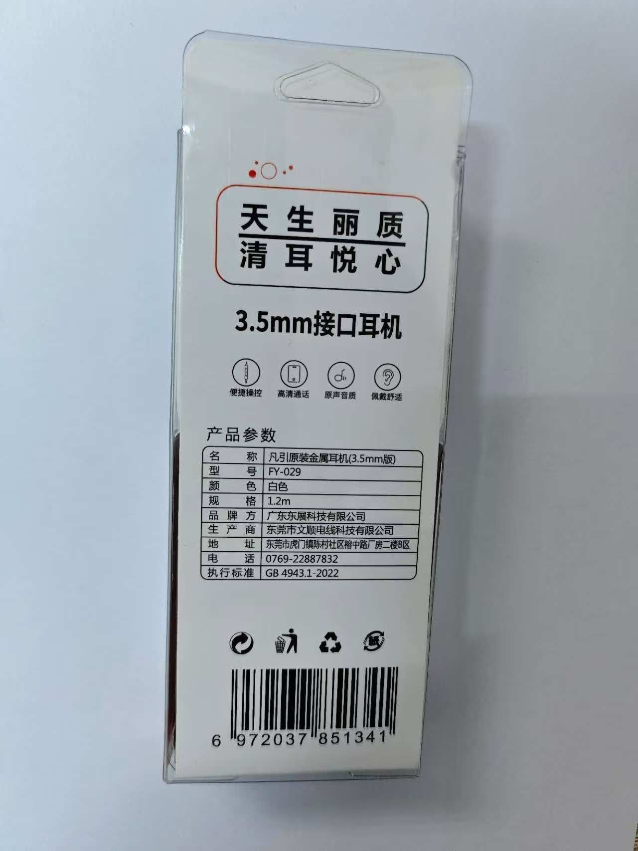 凡引 可调音量耳机(3.5mm接头) 30g/盒