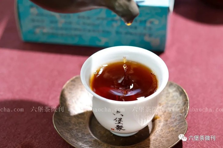 高温沸水冲泡,即可闻到浓郁的茶香:荷香、花香,陈香交织在一起,清雅怡人,仿佛让人置身于大自然中;茶汤红浓明亮,十分干净。闻着、看着都十分舒服。