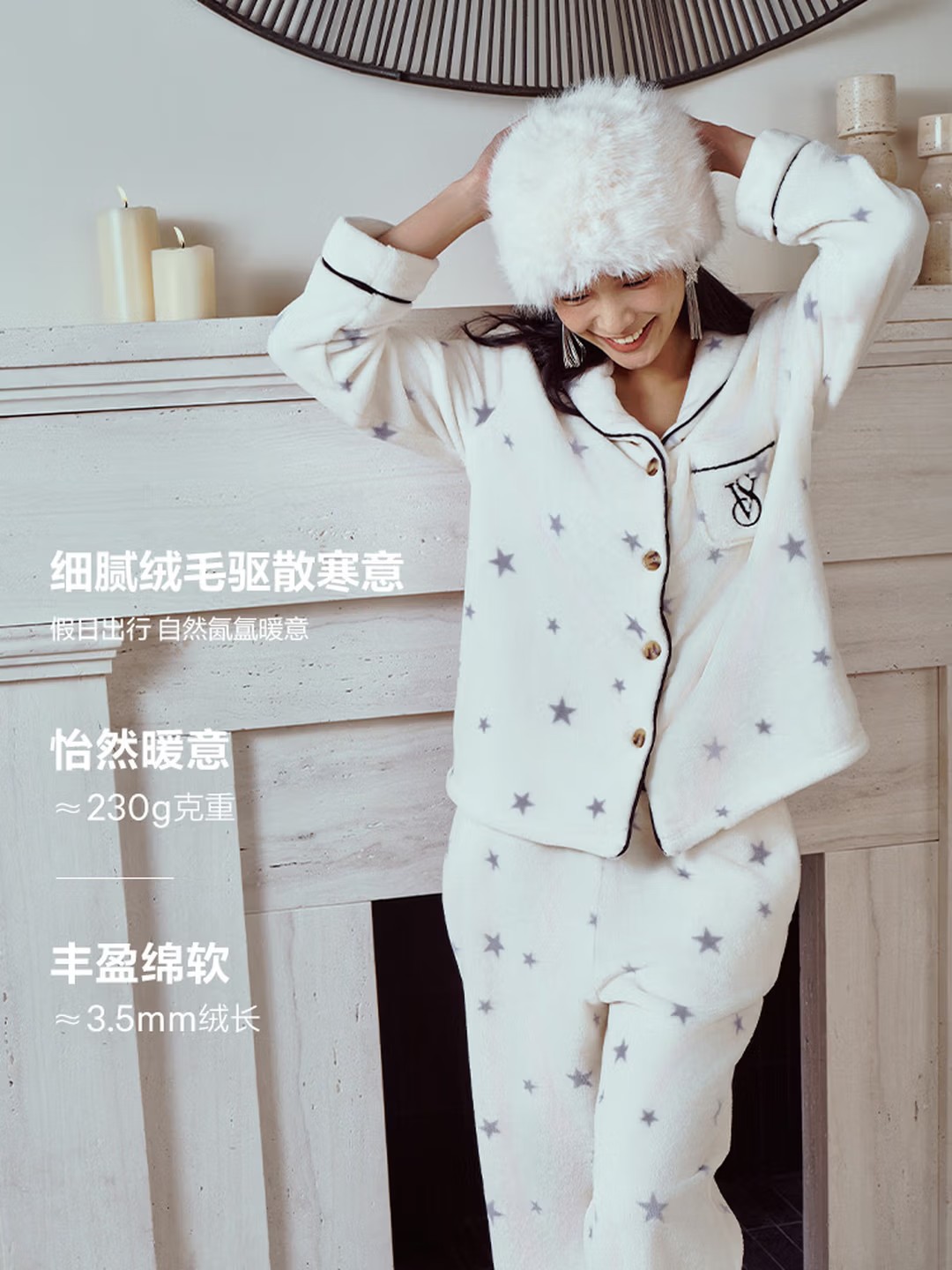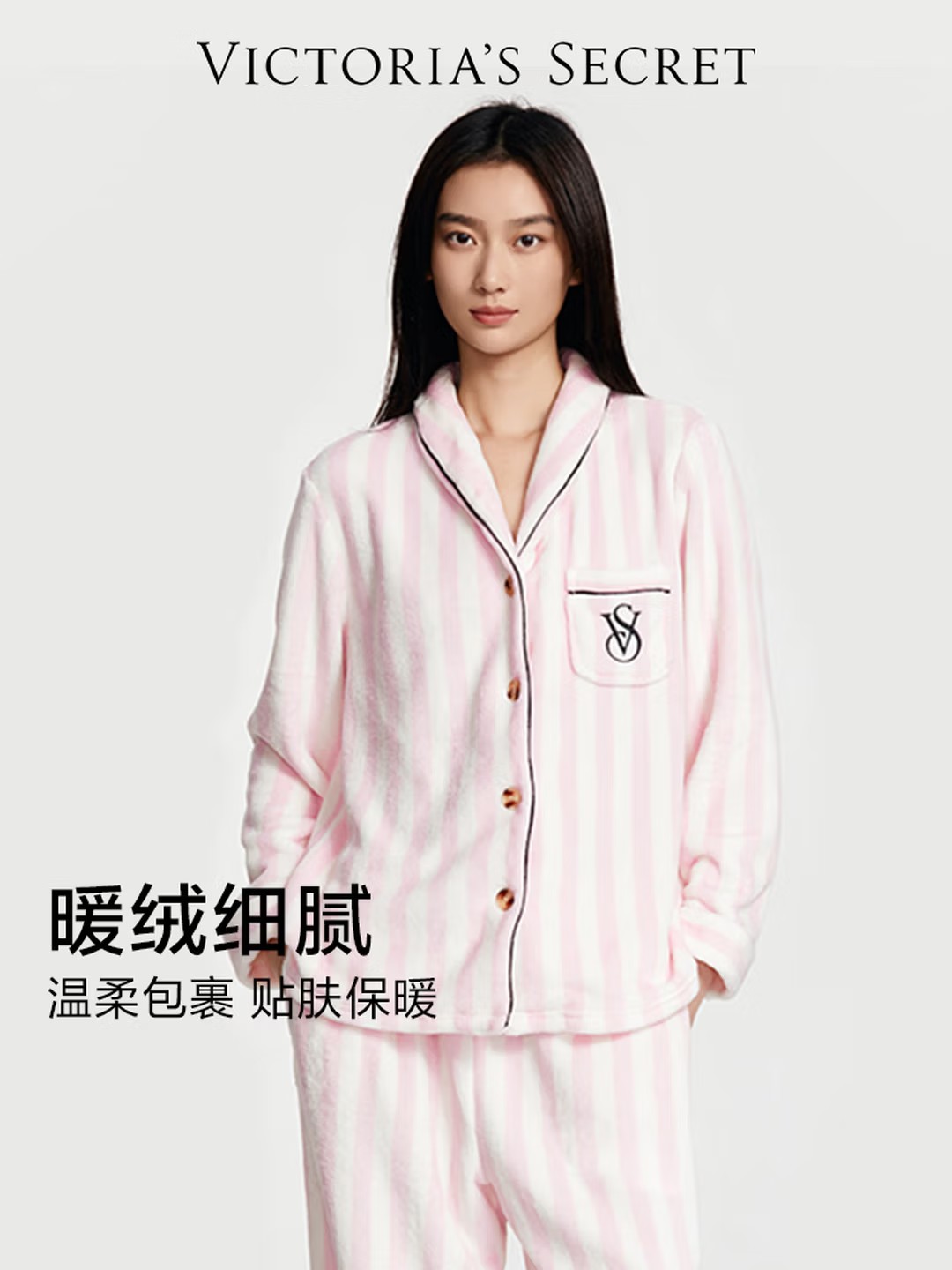 千金少女感,上身真的好好看!!牛角扣法兰绒家居服套装E012558
