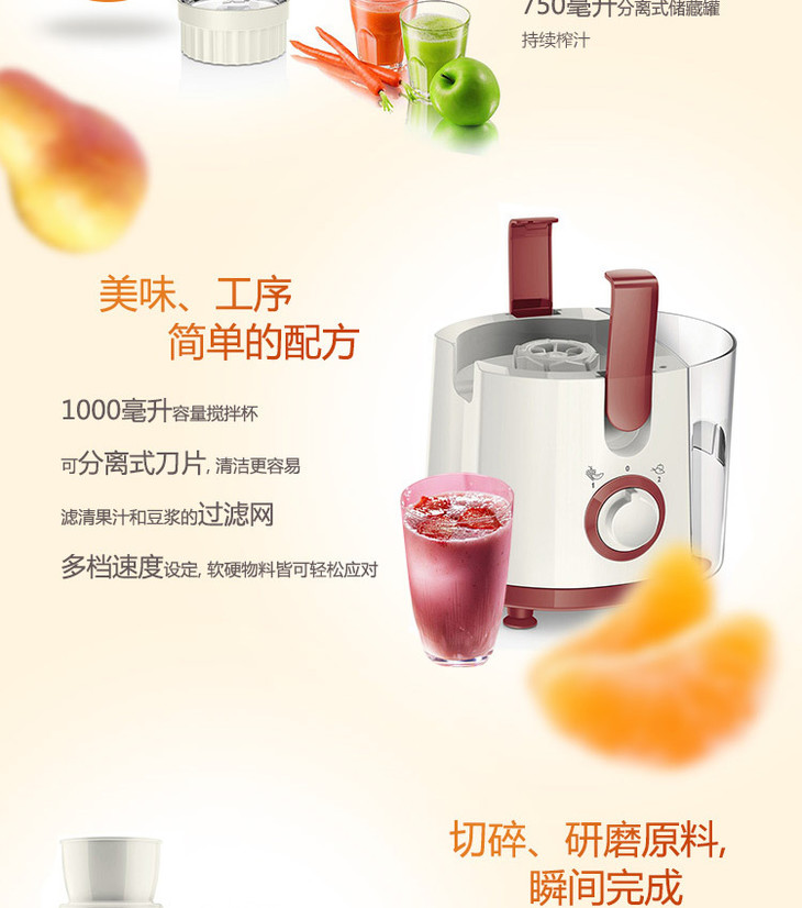 【家用电器】。Philips/飞利浦 HR1848榨汁机多功能电动水果豆浆机