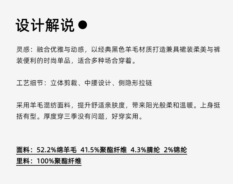 C系列—都市力量—至简新潮—秋冬复古中高腰显瘦羊毛裙裤 2403019