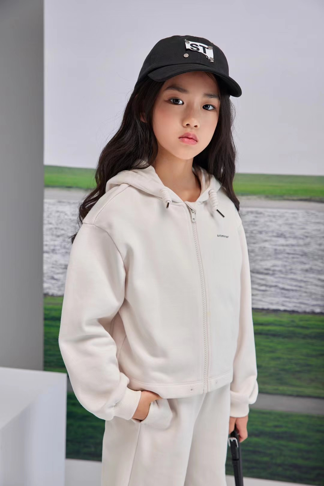 8楼尚T#SUN’T# 浅杏短款休闲拉链卫衣