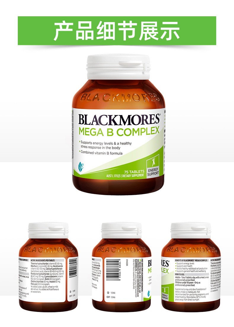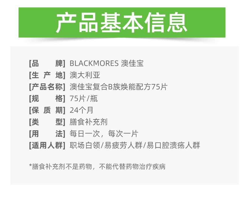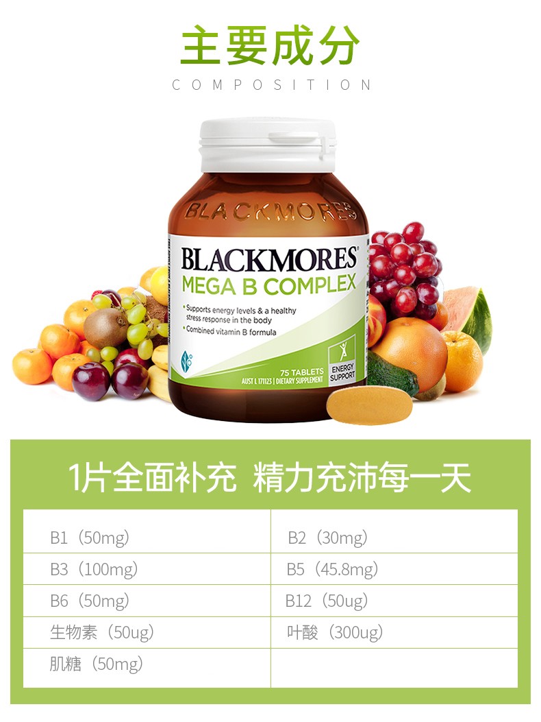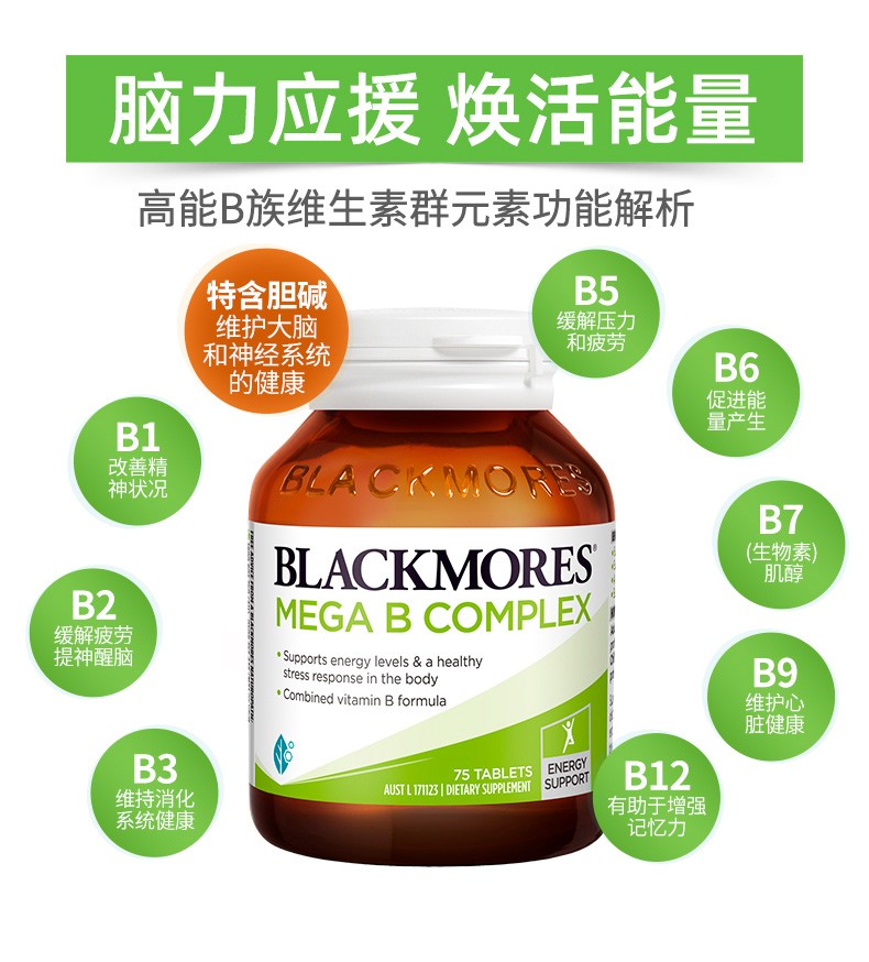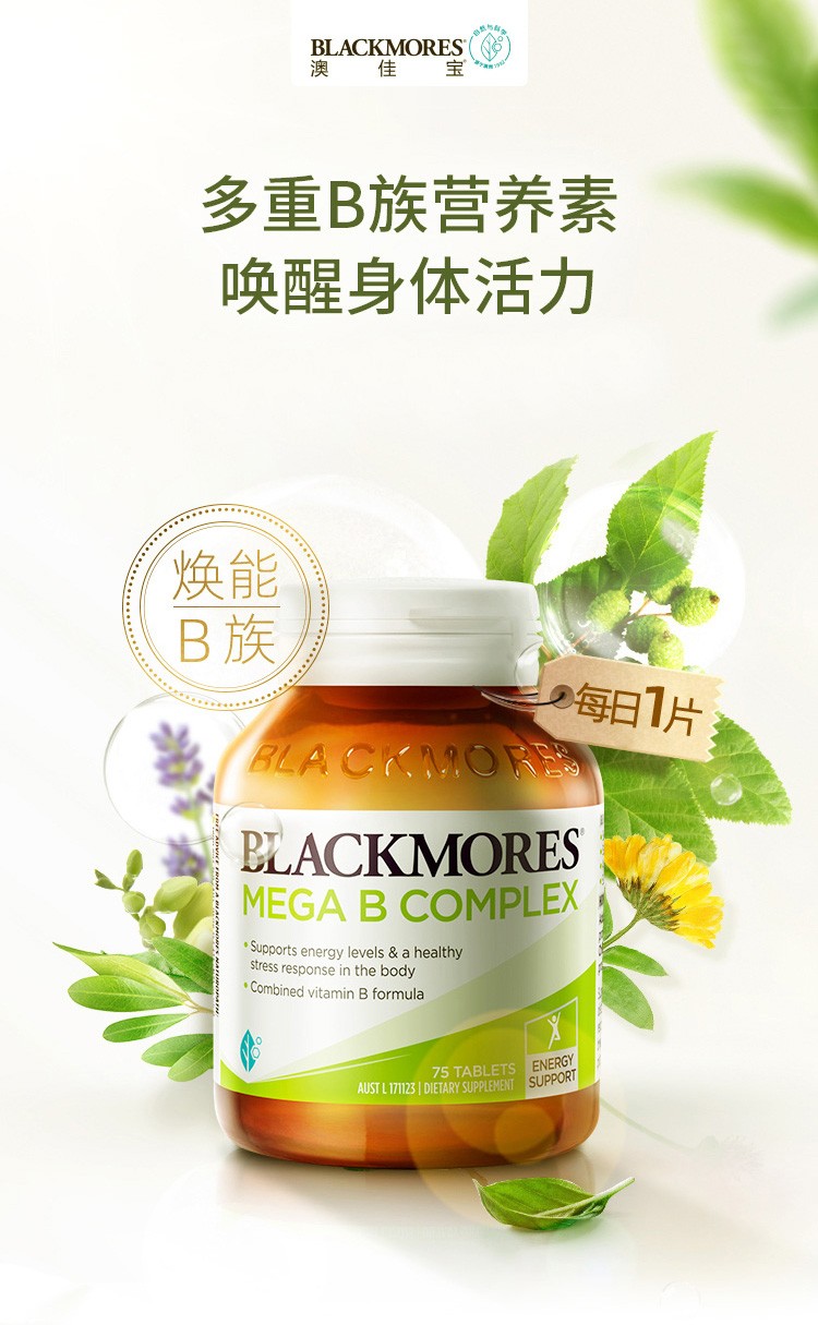 【保税仓/香港直邮】澳洲进口澳佳宝Blackmores高能复合维生素B族75粒