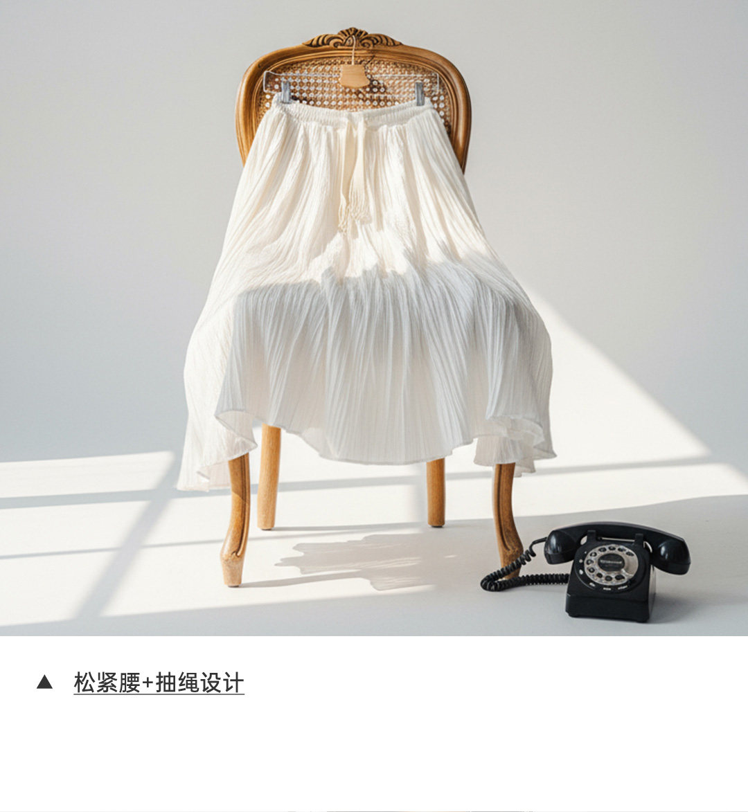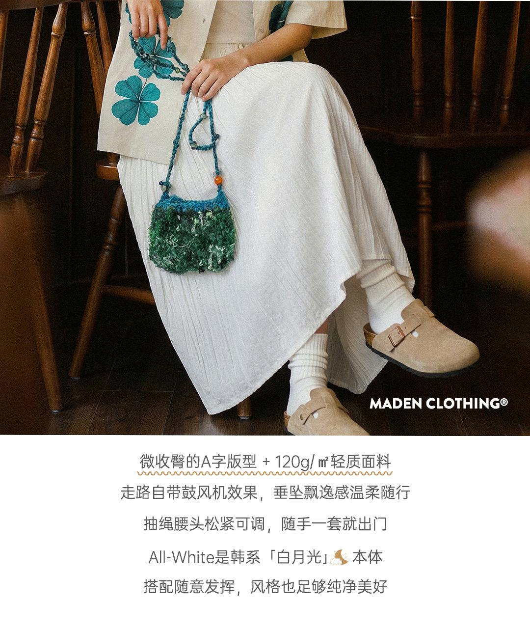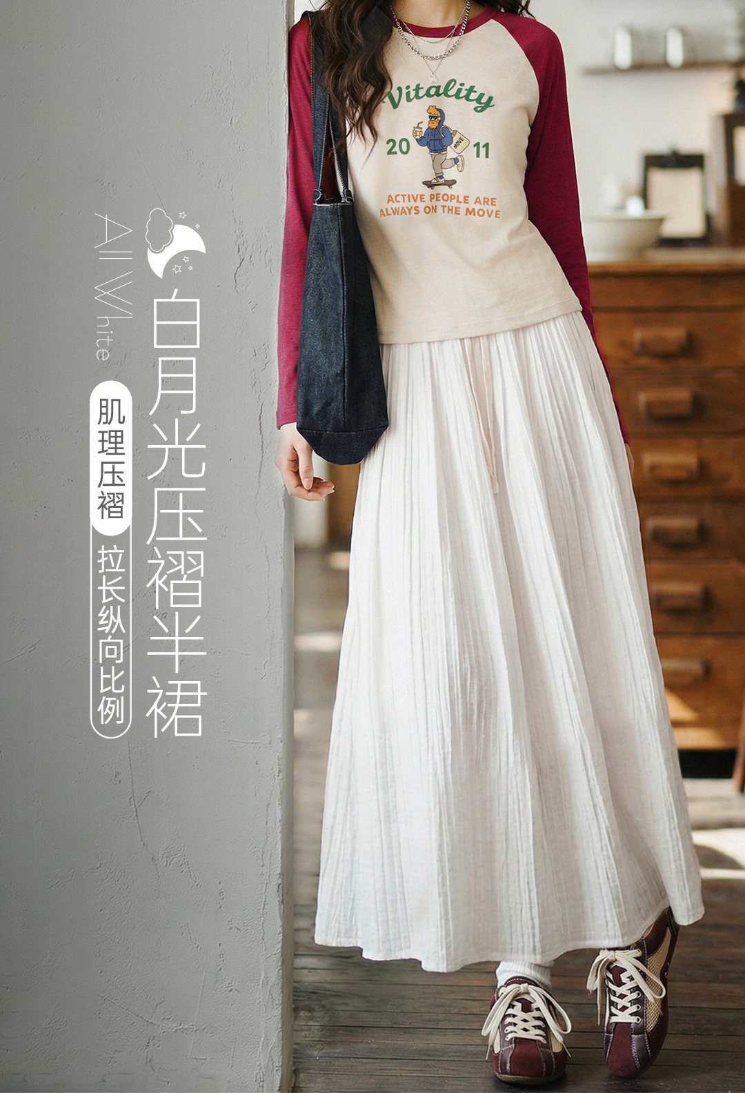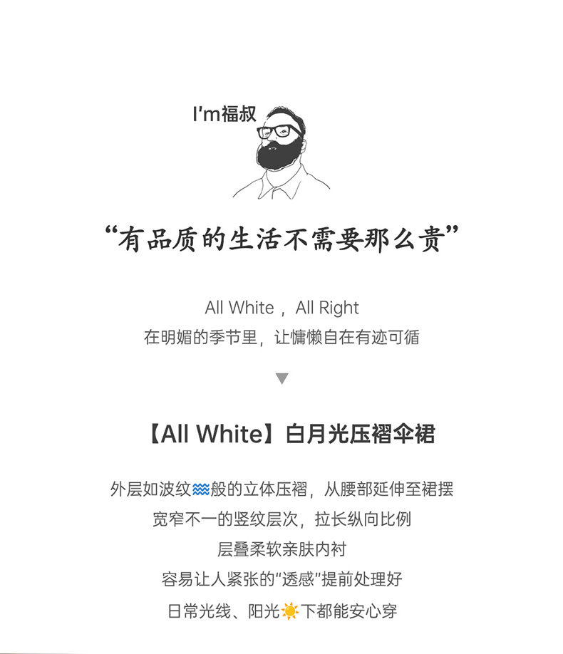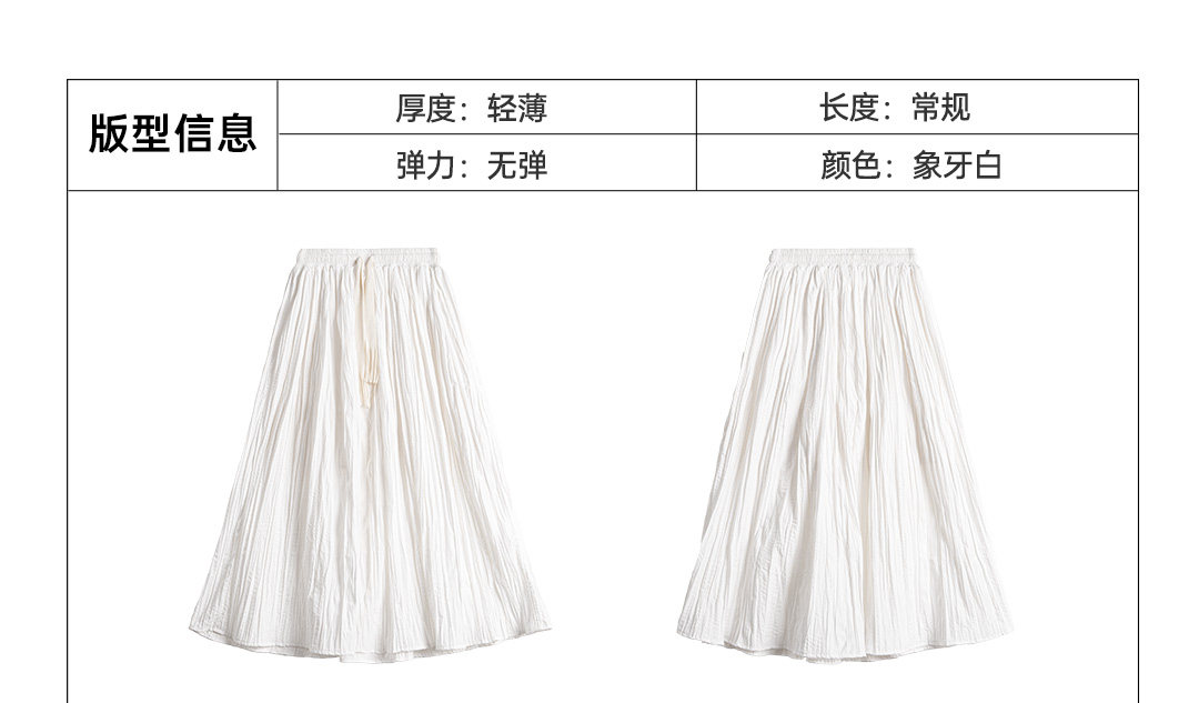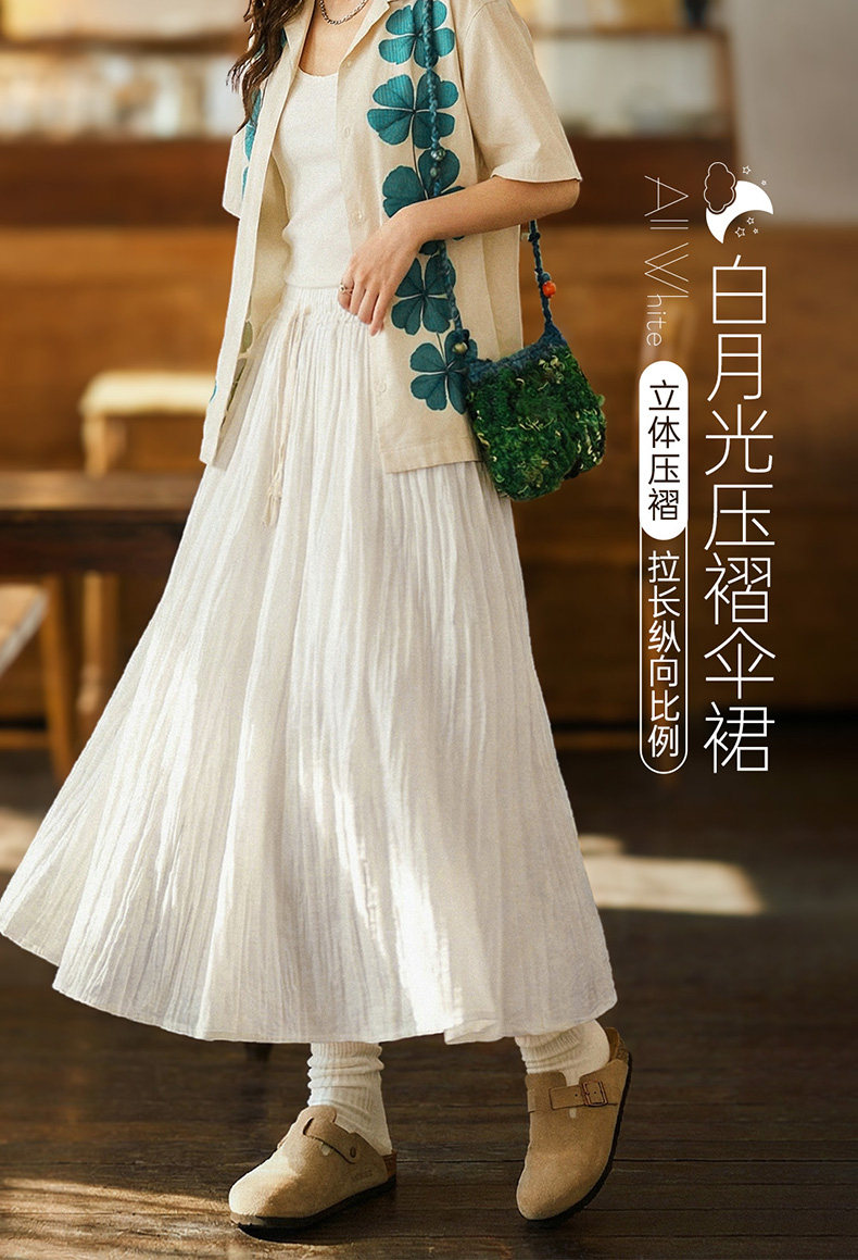 马登白色长款A字纱裙子压百褶皱肌理垂坠感高腰显瘦半身中伞裙女