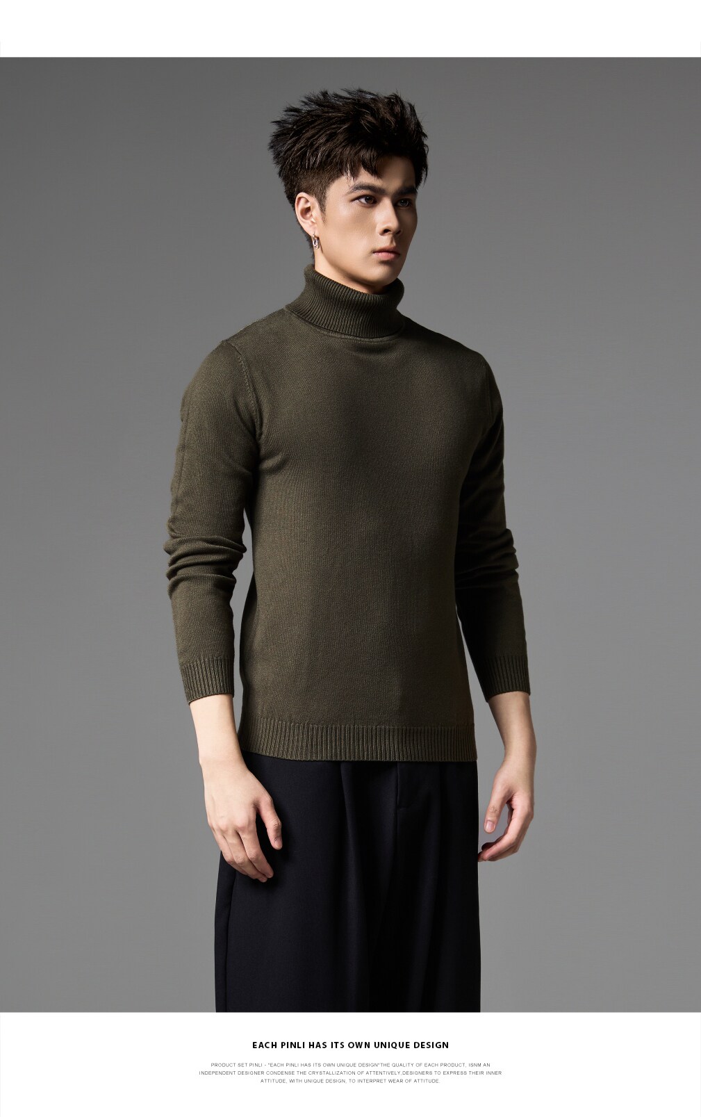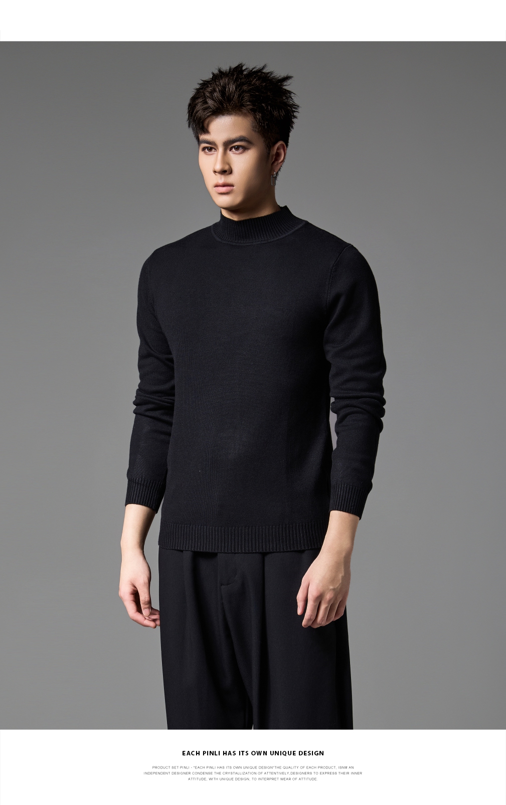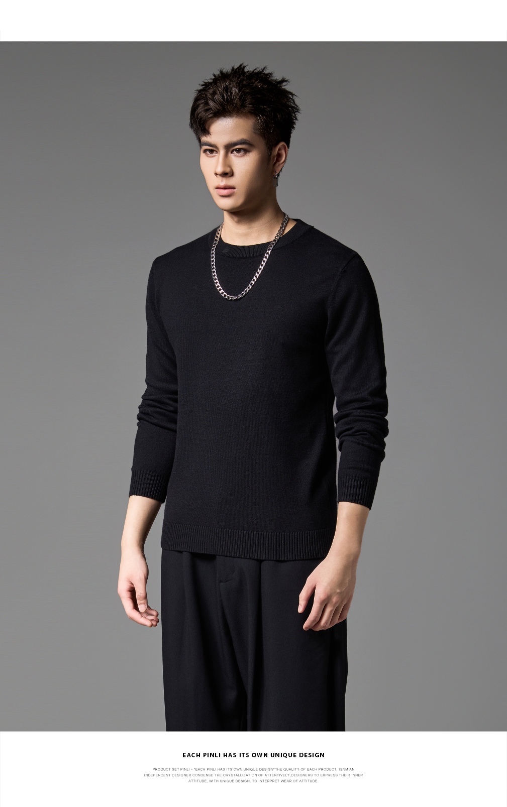 PINLI品立2024秋季新款男士纯色百搭针织衫打底毛衣保暖上衣内衣GD243310428